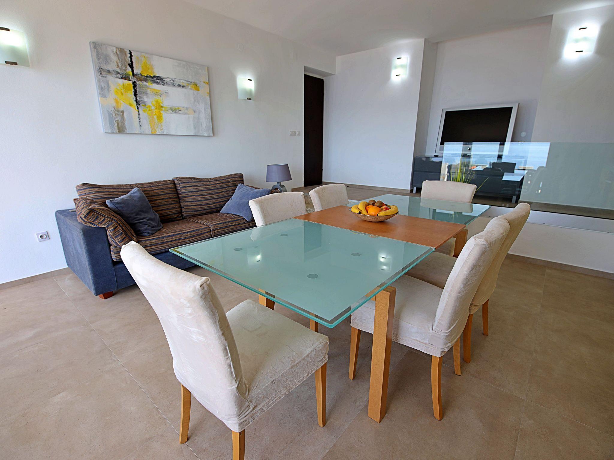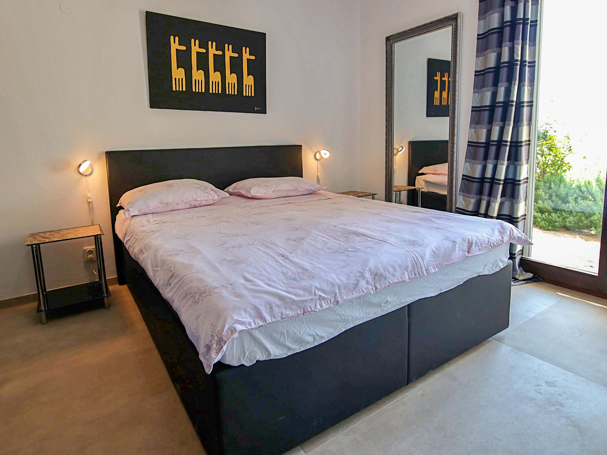 3-room apartment 65 m2, on the ground floor. Living/dining room with satellite TV and air conditioning. Exit to the terrace. 1 double bedroom with air conditioning. Exit to the terrace. 1 room with 2 beds and air conditioning. Exit to the terrace. Kitchen (4 hot plates, oven, dishwasher). Shower/bidet/WC, sep. WC. Large terrace partly roofed, south facing position. Terrace furniture. Marvellous view of the sea and the swimming pool. Facilities: washing machine, hair dryer. Internet (WiFi, free).