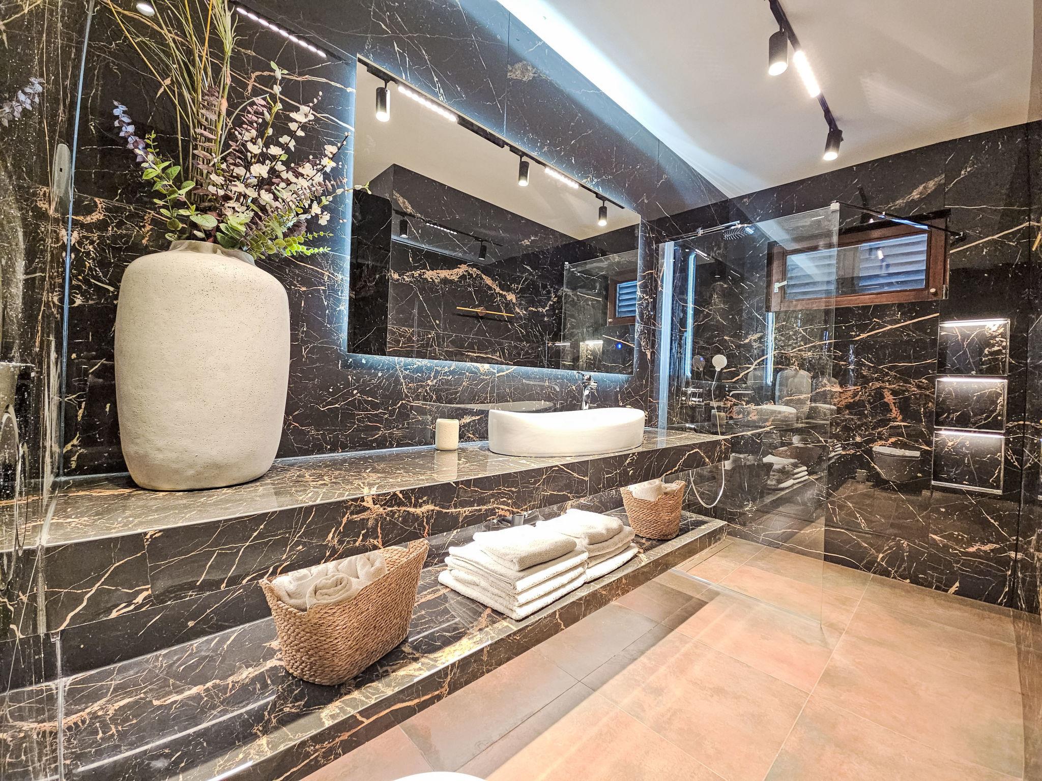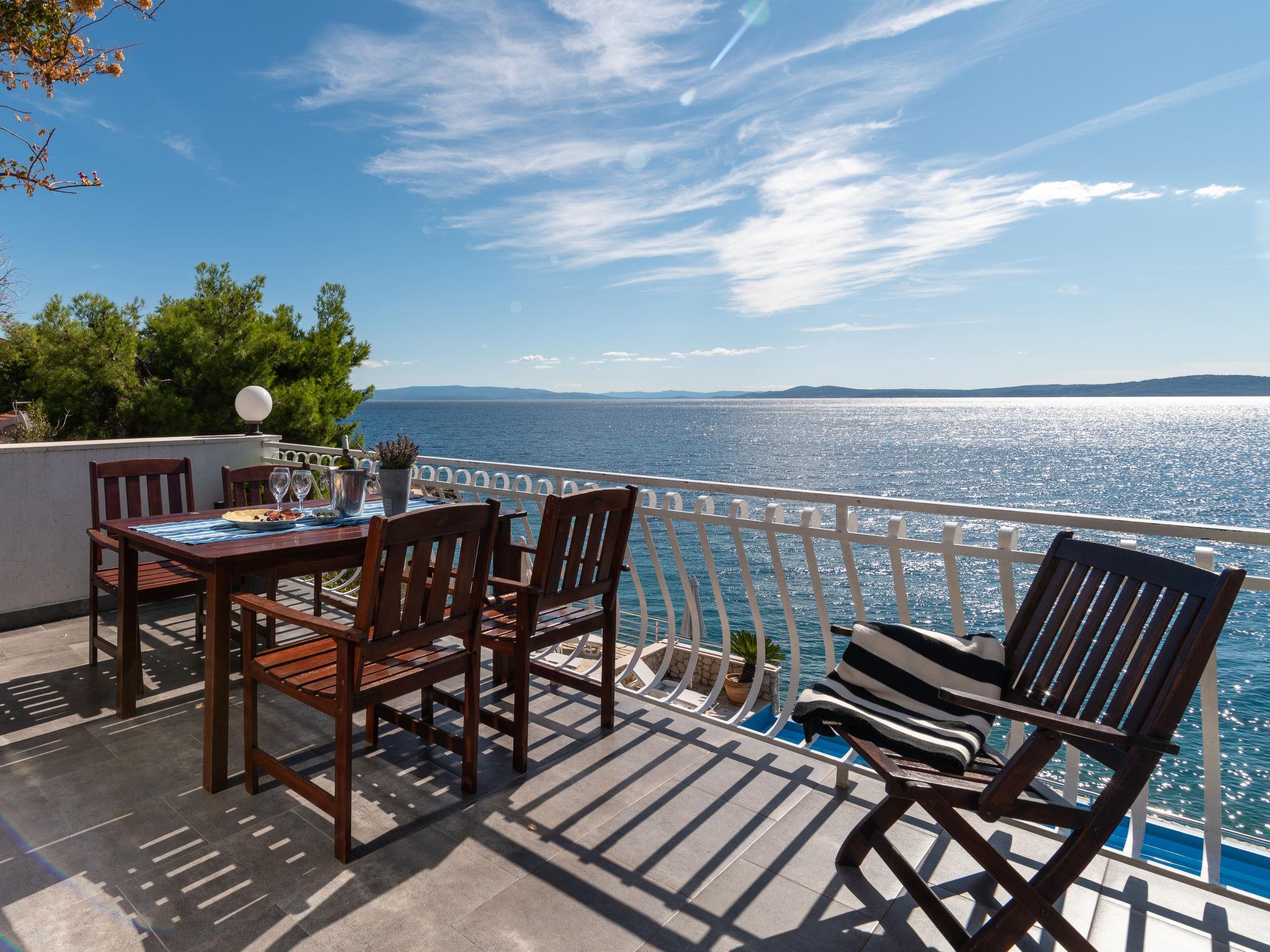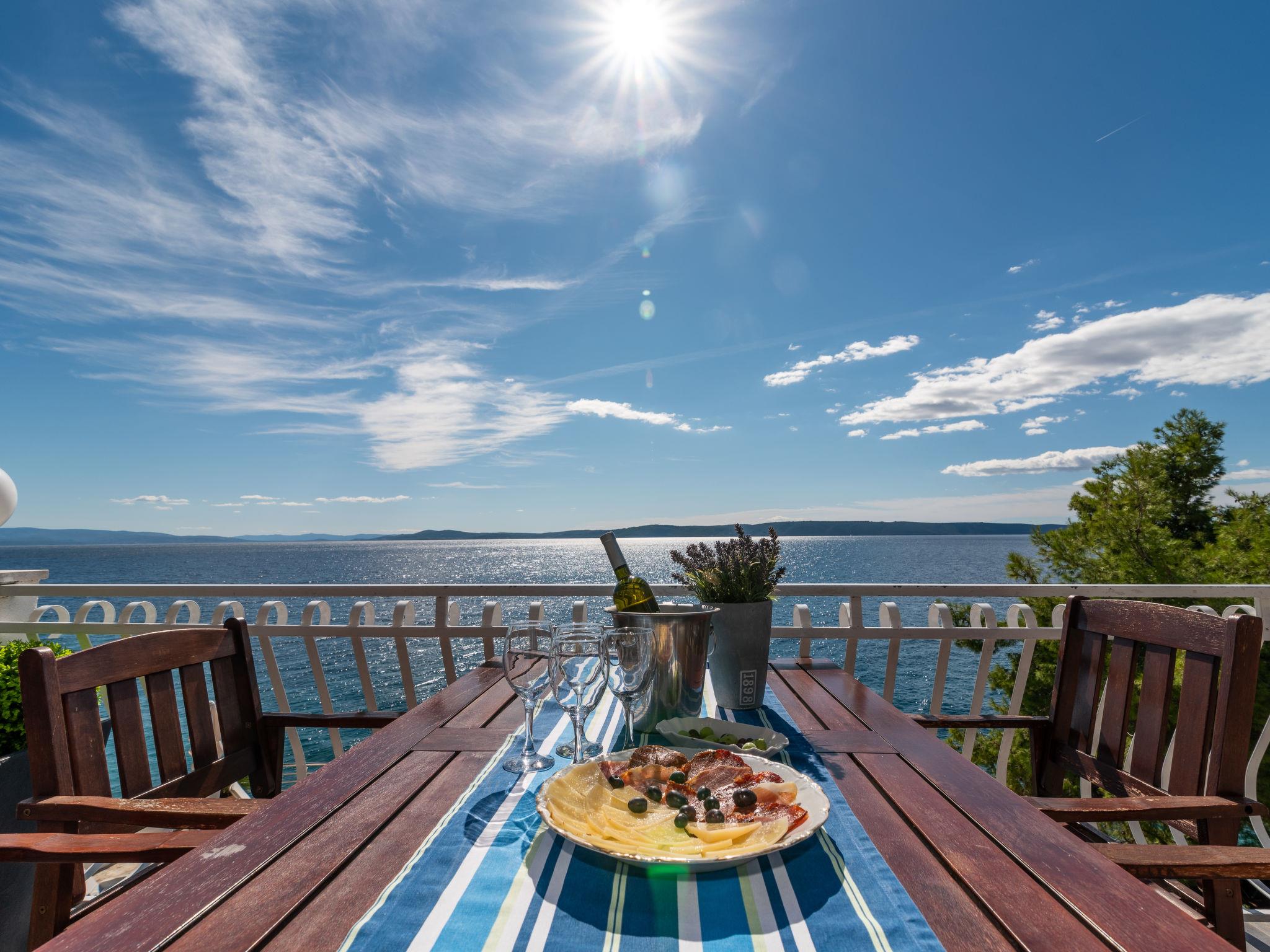 Okrug Gornji (Ciovo), 6 km from Trogir: Beautiful, cosy apartment house "Villa Pinia". Outside the resort, 1.5 km from the centre of Okrug Gornji, in a quiet, sunny, elevated position, 20 m from the sea, 20 m from the beach, in the countryside. For shared use: garden with plants, swimming pool angular (11 x 4 m, depth 120 - 140 cm, seasonal availability: 25.Apr. - 12.Sep.) with salt water and internal staircase. Outdoor shower, patio, barbecue. In the house: internet access, washing machine. Steep motor access to the house. Parking at the house on the premises. Shop 250 m, restaurant 1.5 km, bus stop 1.9 km, pebble beach 100 m, rocky beach 20 m. Please note: Additional accommodations can be booked.