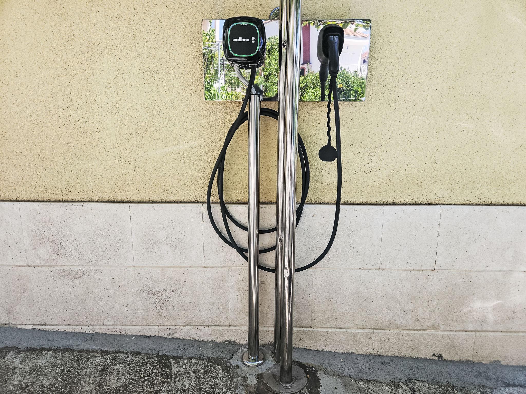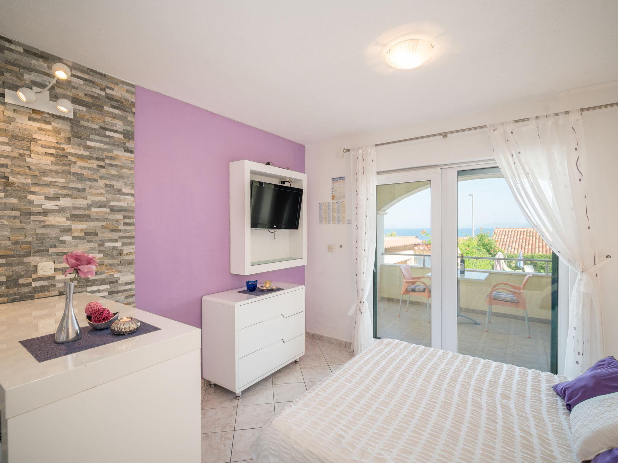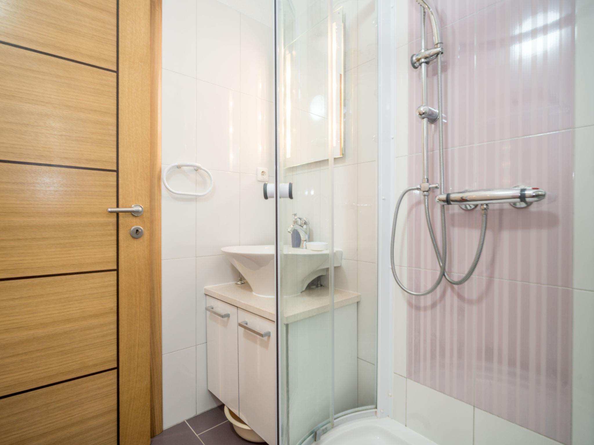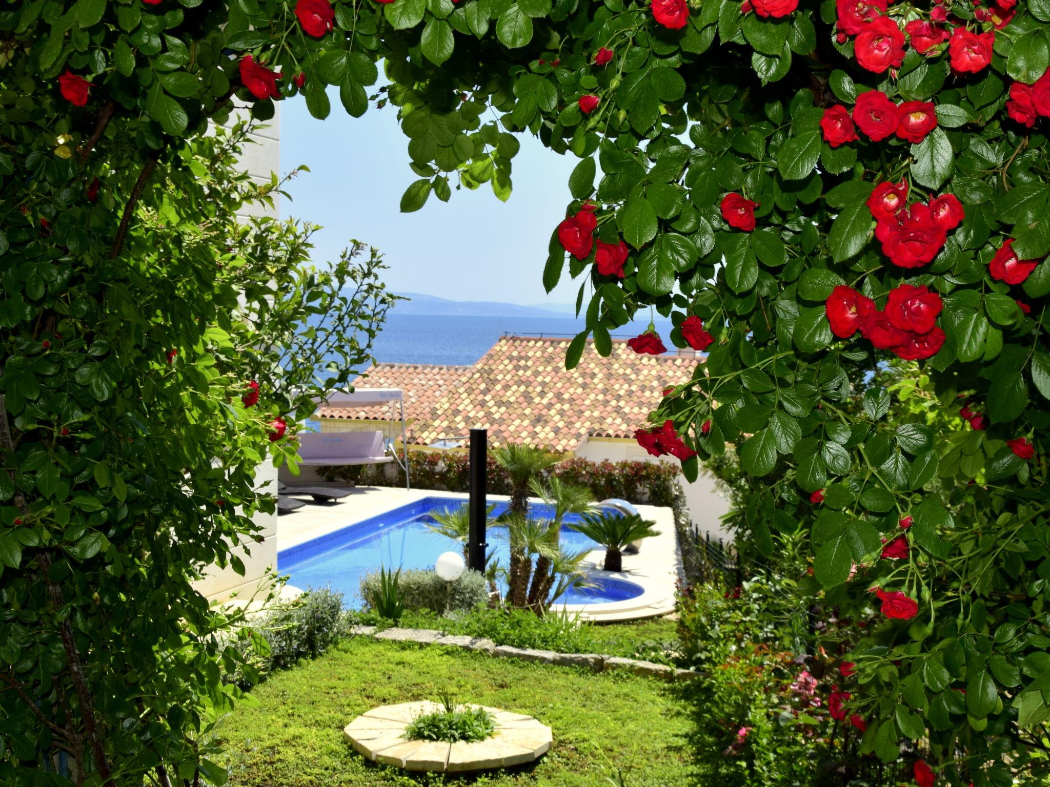 Okrug Gornji (Ciovo), 6 km from Trogir: Beautiful apartment house "Villa Andjelka". 1 km from the centre of Okrug Gornji, in a quiet, sunny, elevated position, 50 m from the sea, 50 m from the beach. For shared use: property, swimming pool heated (38 m2, depth 130 - 160 cm, seasonal availability: 25.Apr. - 03.Oct.) with internal staircase. WC in the pool area, outdoor shower, poolhouse with fridge, terrace, garden furniture, barbecue. In the house: internet access, sauna (extra). Washing machine, tumble dryer. Towel change 2 times per week. Parking at the house on the premises. E-charging station. Shop 200 m, restaurant 1 km, café 1 km, bus stop 1.7 km, pebble beach 500 m, rocky beach 50 m. Please note: Additional accommodations can be booked. Swimming pool with counterflow, geysir and hydromassage. For shared use: outdoor kitchen (fridge, ice maker, coffee machine, dishwasher).