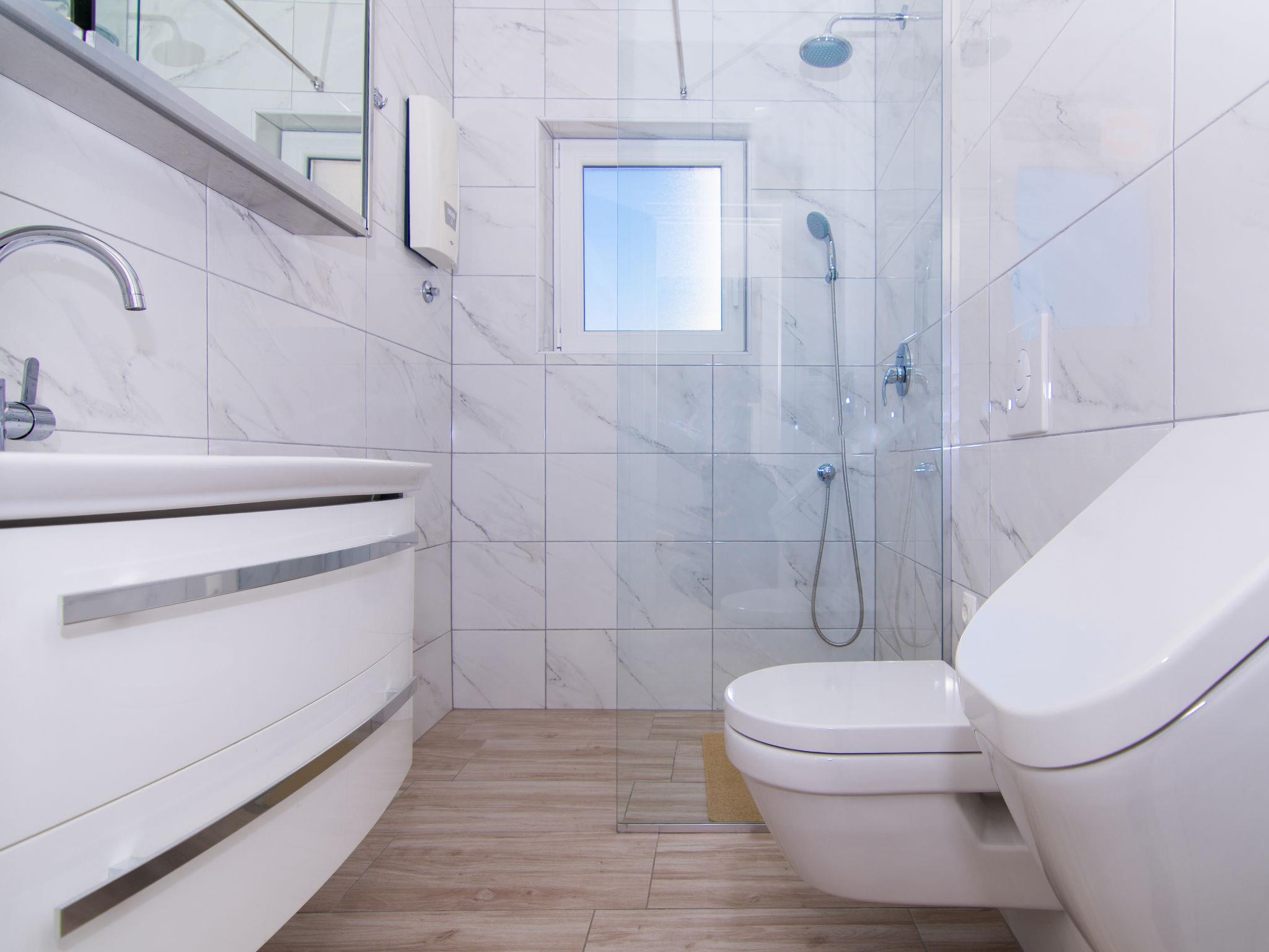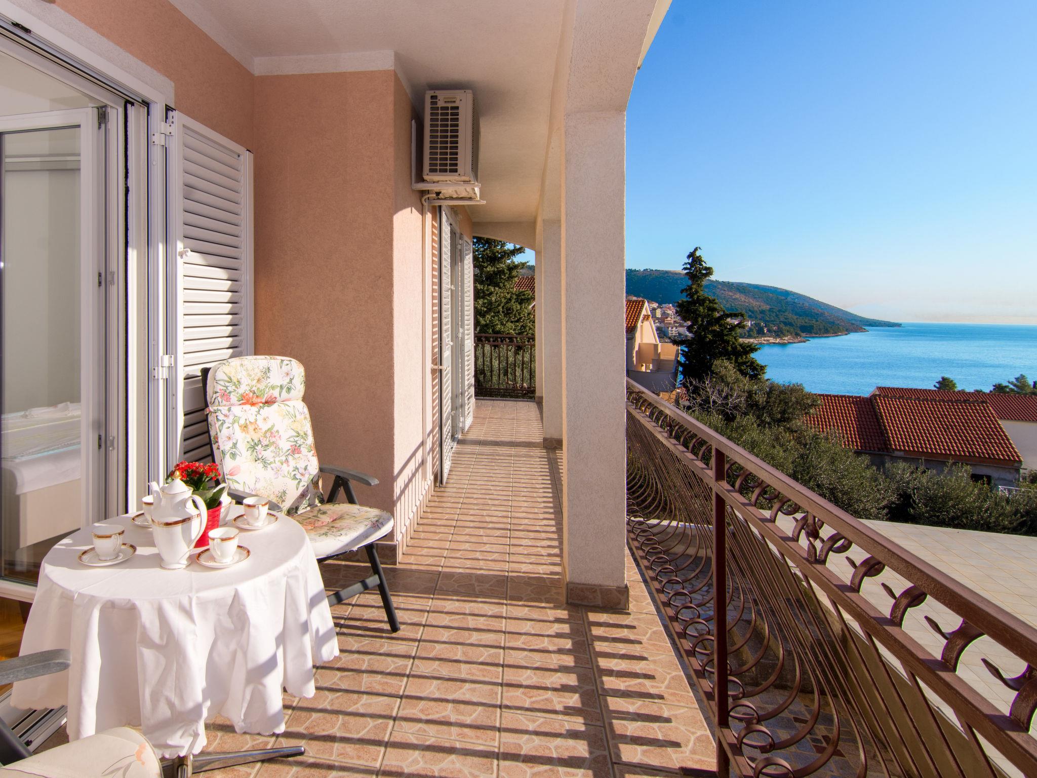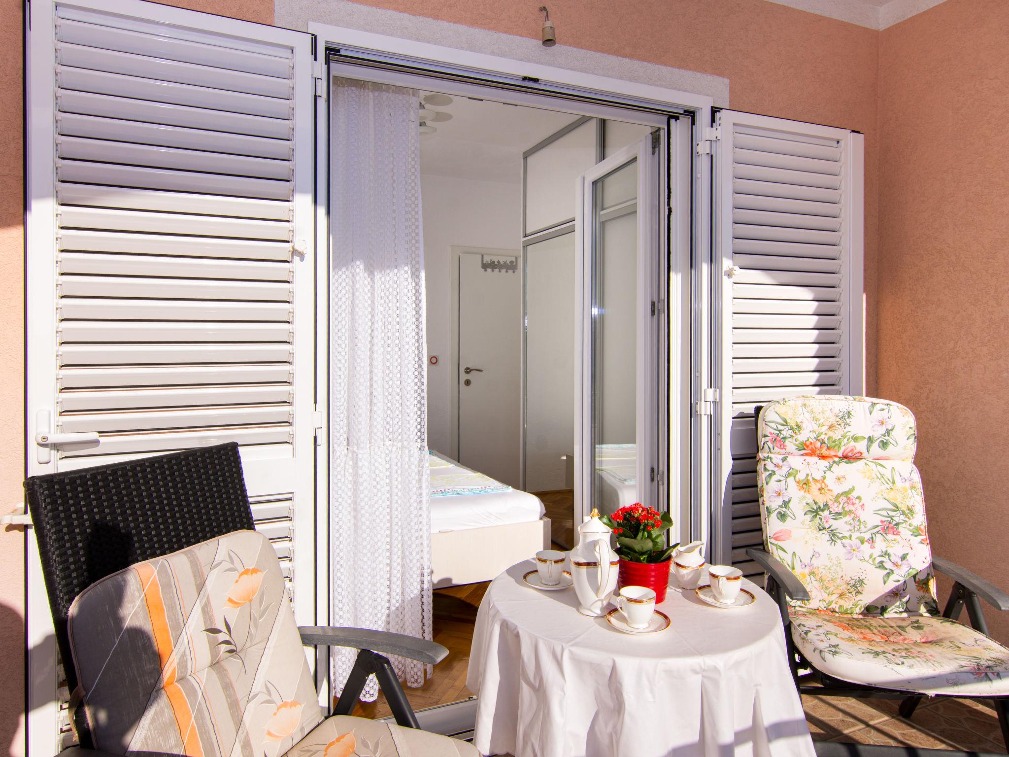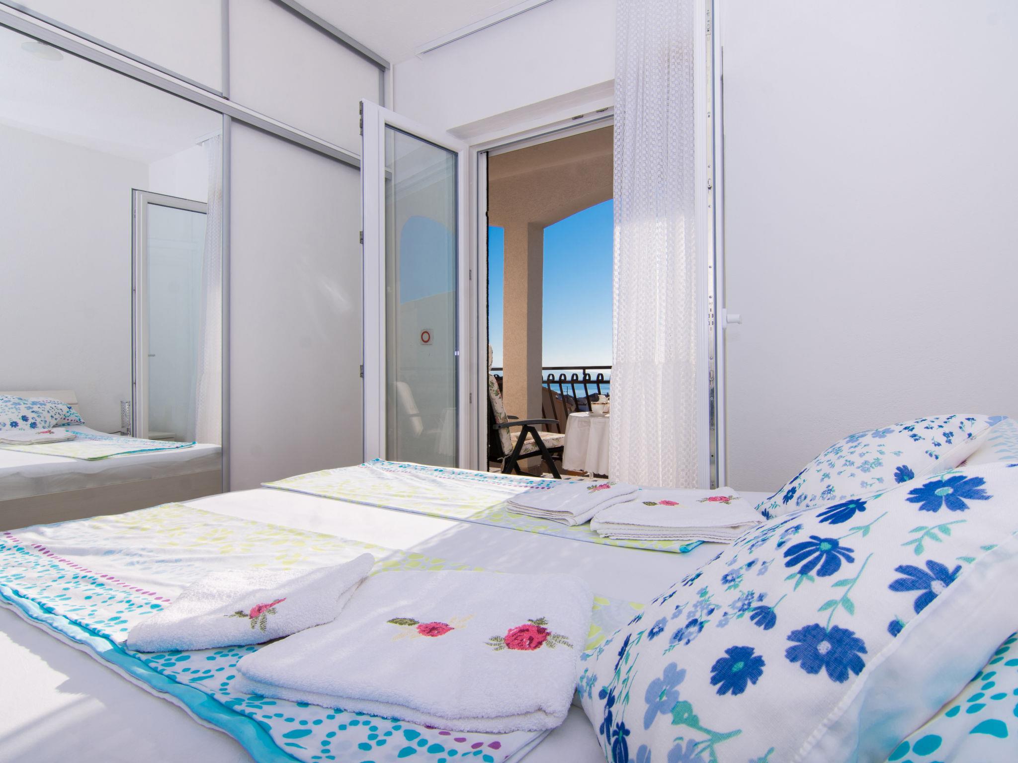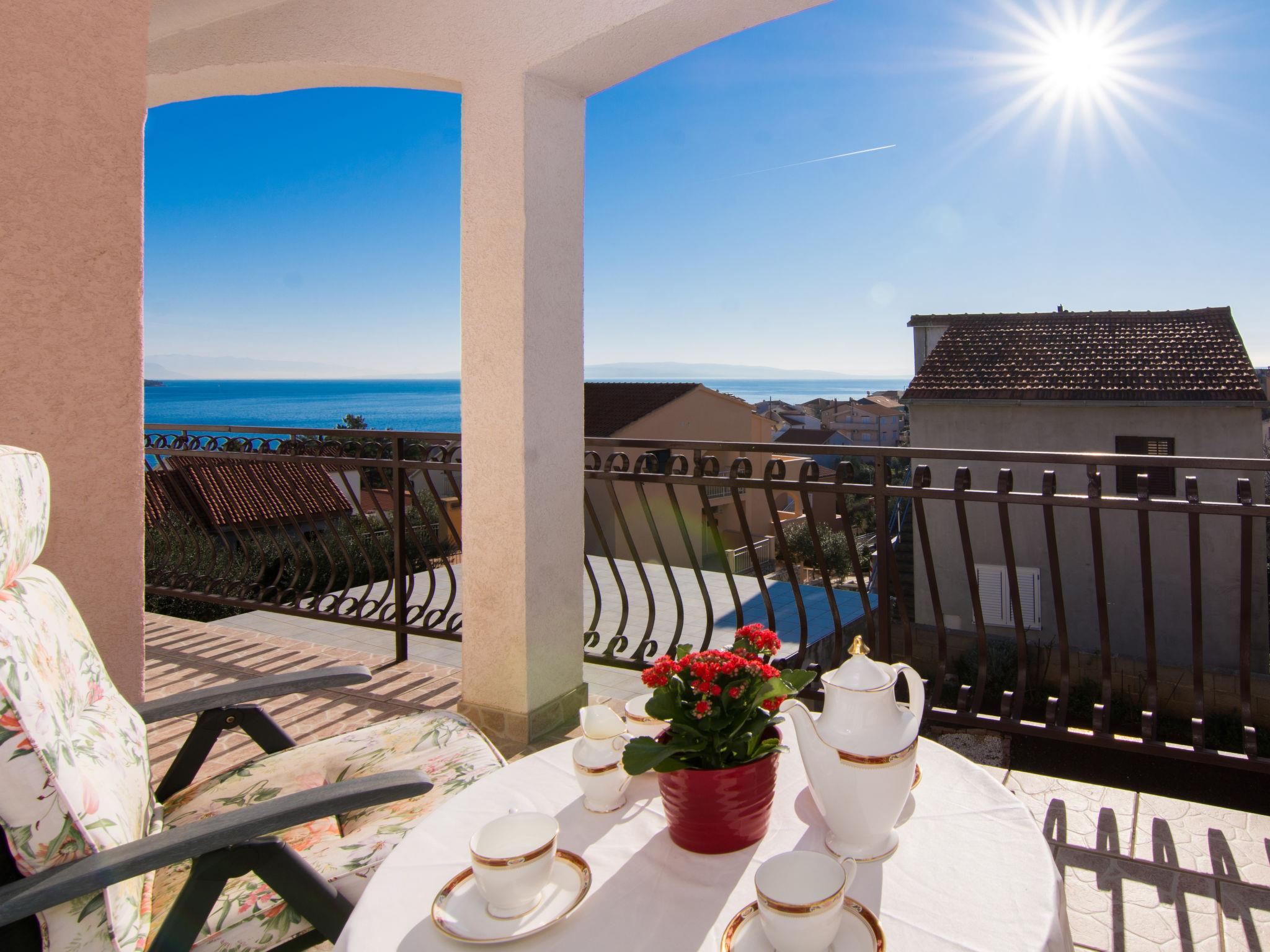 3-room apartment 80 m2 on 1st floor. Living/dining room with satellite TV and air conditioning. Exit to the balcony. 1 room with 1 double bed (2 x 80 cm, length 200 cm). 1 room with 1 double bed (2 x 80 cm, length 200 cm), satellite TV. Exit to the balcony. Open kitchen (oven, dishwasher, 4 induction hot plates, toaster, kettle, microwave, freezer, electric coffee machine, cooking island). Exit to the balcony. Shower/WC. Floor heating. Balcony 19 m2. Balcony furniture. Beautiful view of the sea. Facilities: mosquito net, hair dryer. Internet (WiFi, free). Please note: smoke alarm.