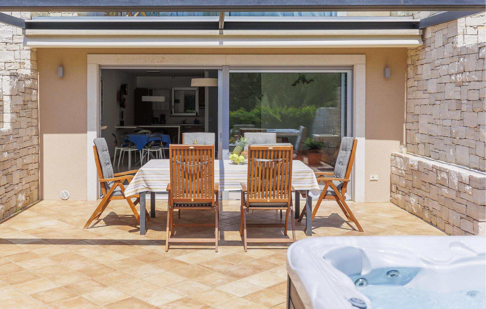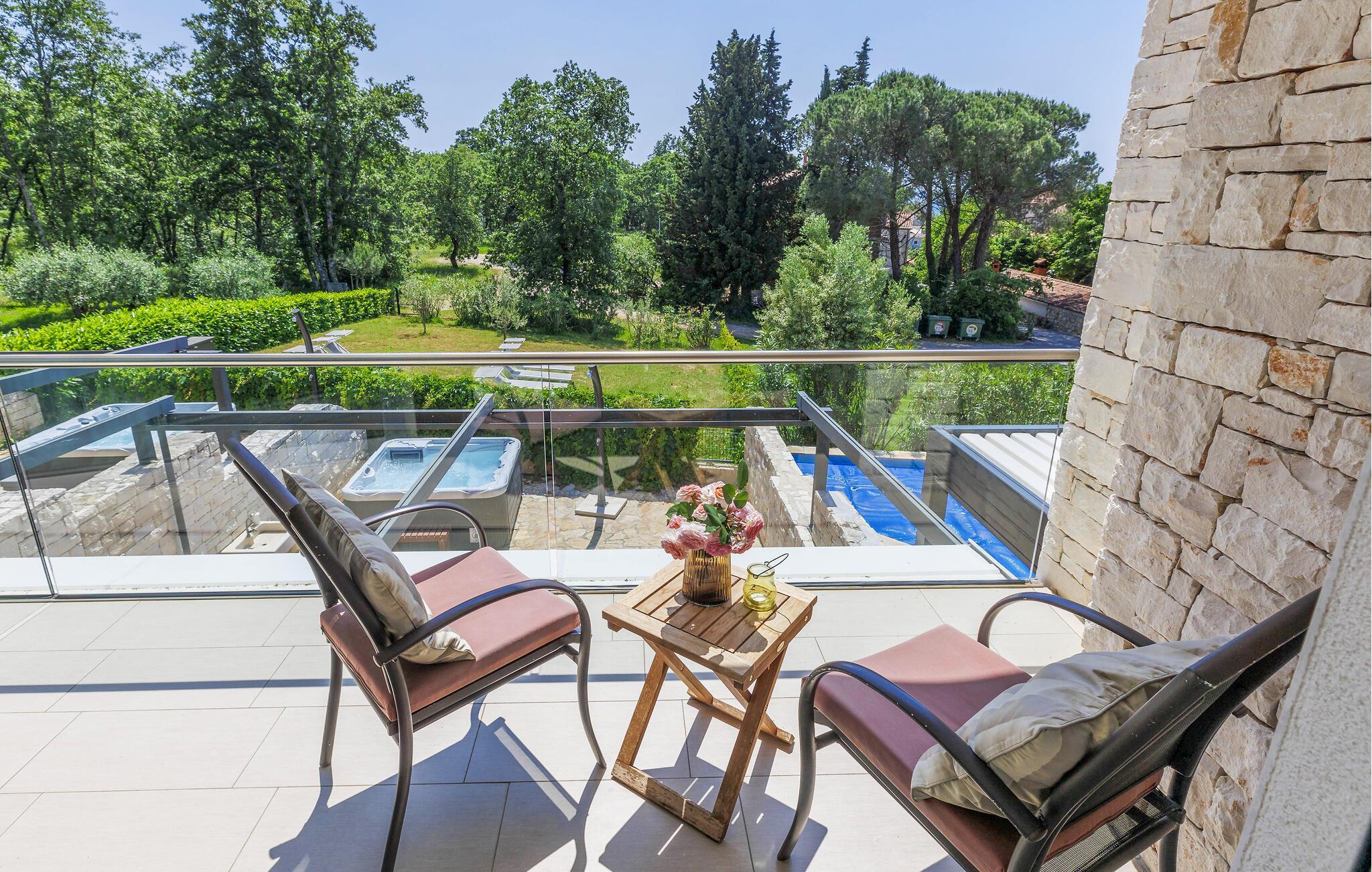 På morgonen kan du öppna dörren till terrassen och njuta av den hisnande utsikten över det glittrande blå vattnet. Fräscha upp dig i bubbelpoolen och koppla sedan av med en svalkande drink på en solstol i den gröna trädgården. Samla familj eller vänner runt grillen på kvällen och njut av ett avkopplande slut på dagen.