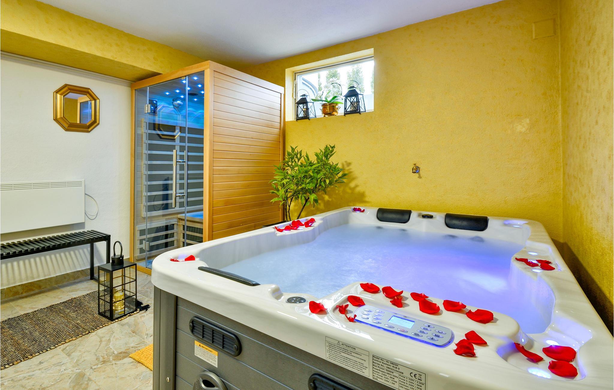 Utanför finns en klätterställning, en gunga och leksaker för barnen. Koppla av i bekväma trädgårdsmöbler vid grillen och njut av din semester till fullo. Om du vill ha ännu mer njutning kan du koppla av i mini-wellnessområdet, som har en bubbelpool och bastu inomhus. Den ligger i källaren och är ansluten till bottenvåningen via en extern trappa.
