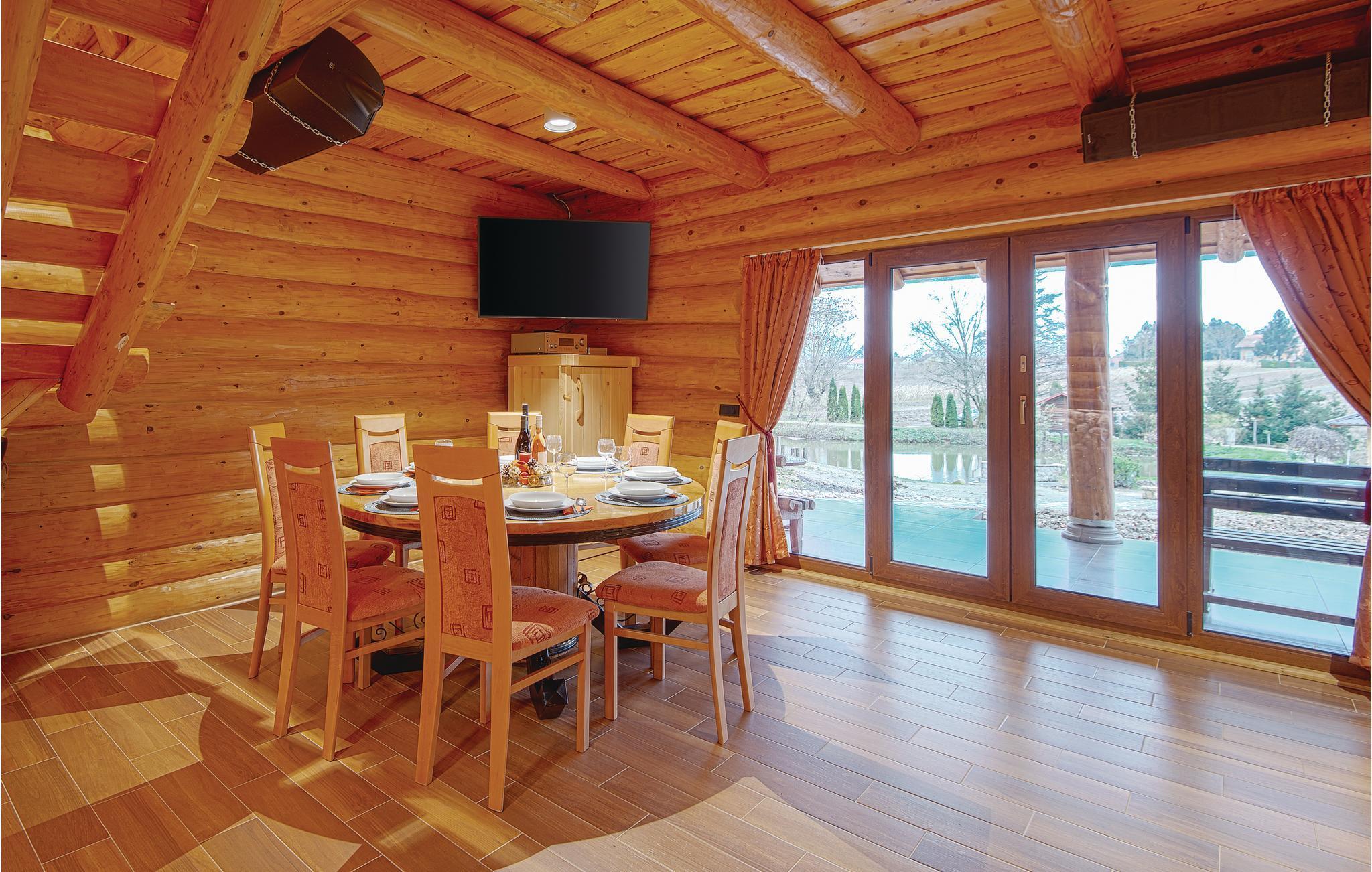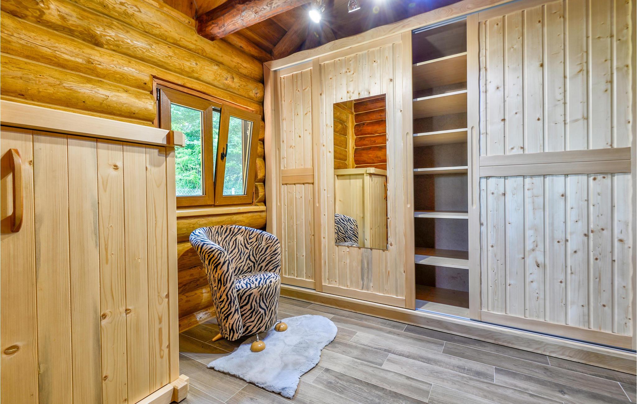 Detta romantiska semesterhus består av två våningar, med en inre trappa som leder till sovrummen. Det finns en sjö på fastigheten där du kan fiska, och lite längre bort finns en liten bäck med en bro över den. Friska upp dig i den vackra poolen, där terrassen inbjuder till solbad och avkoppling. Själva semesterhuset är rikt på underhållning och sportmöjligheter. Den minsta takhöjden är ca 50 cm. En oasfalterad väg leder dig de sista ca 100 m till huset.