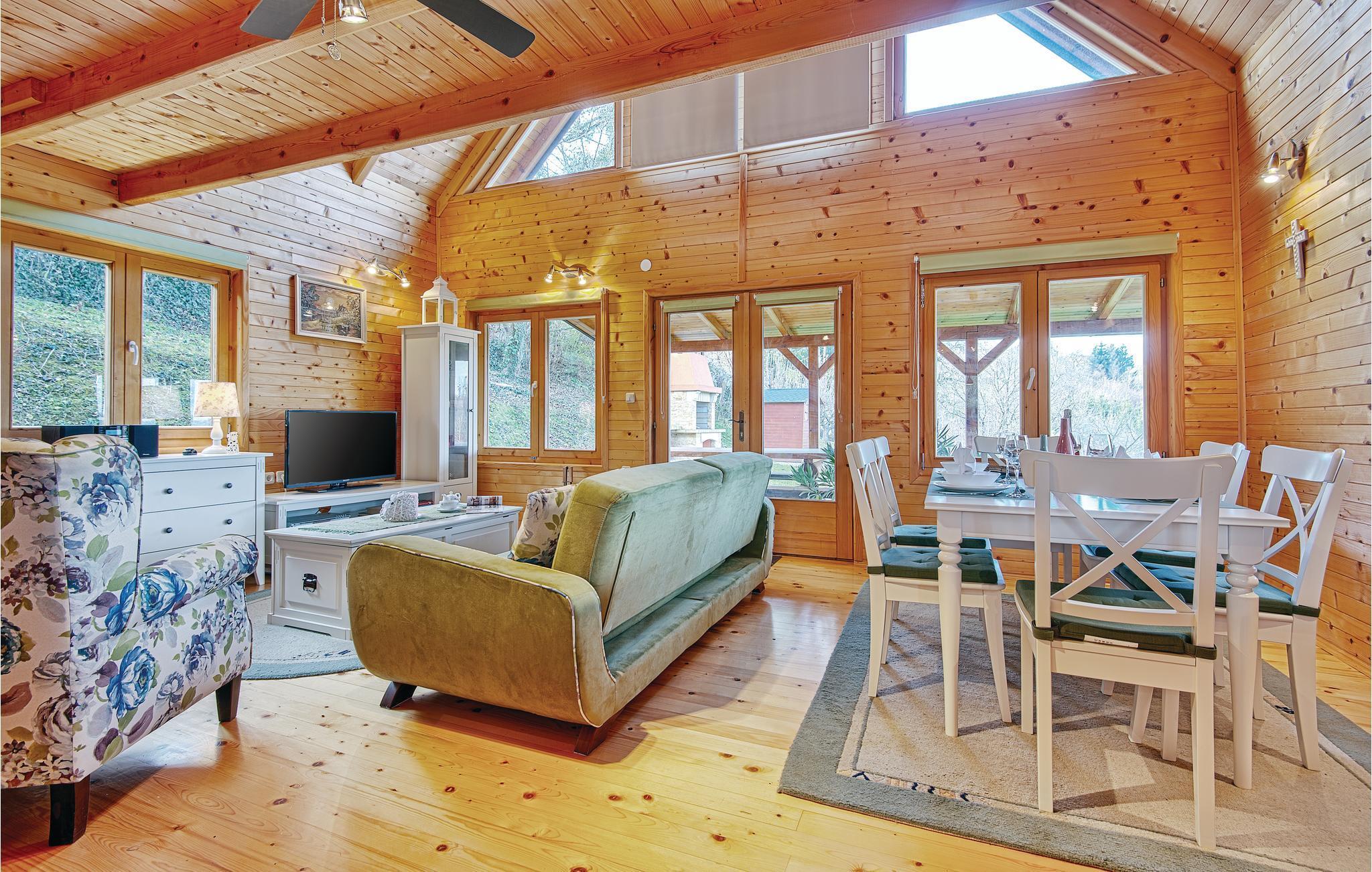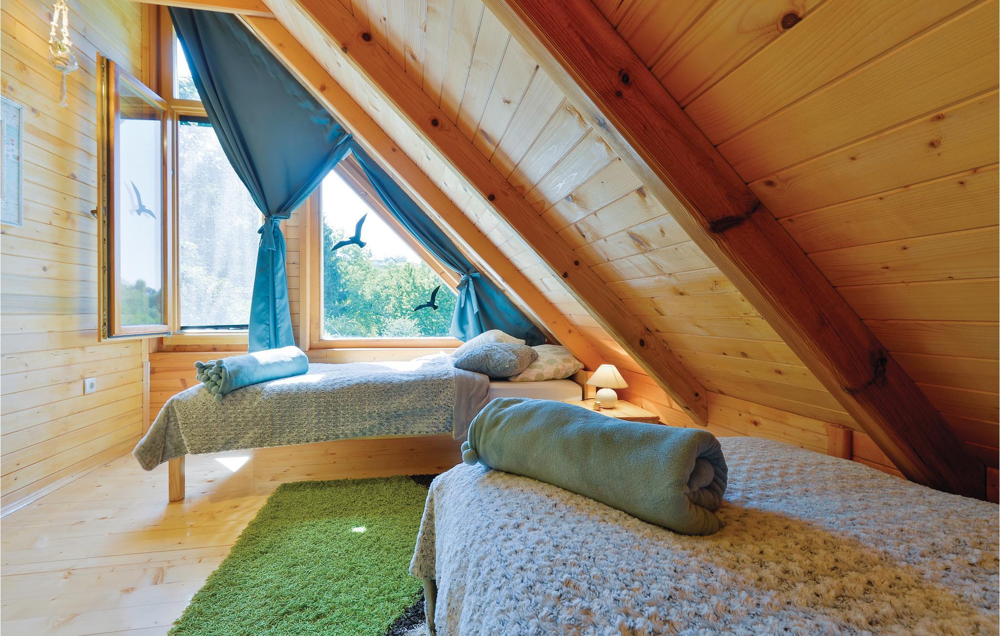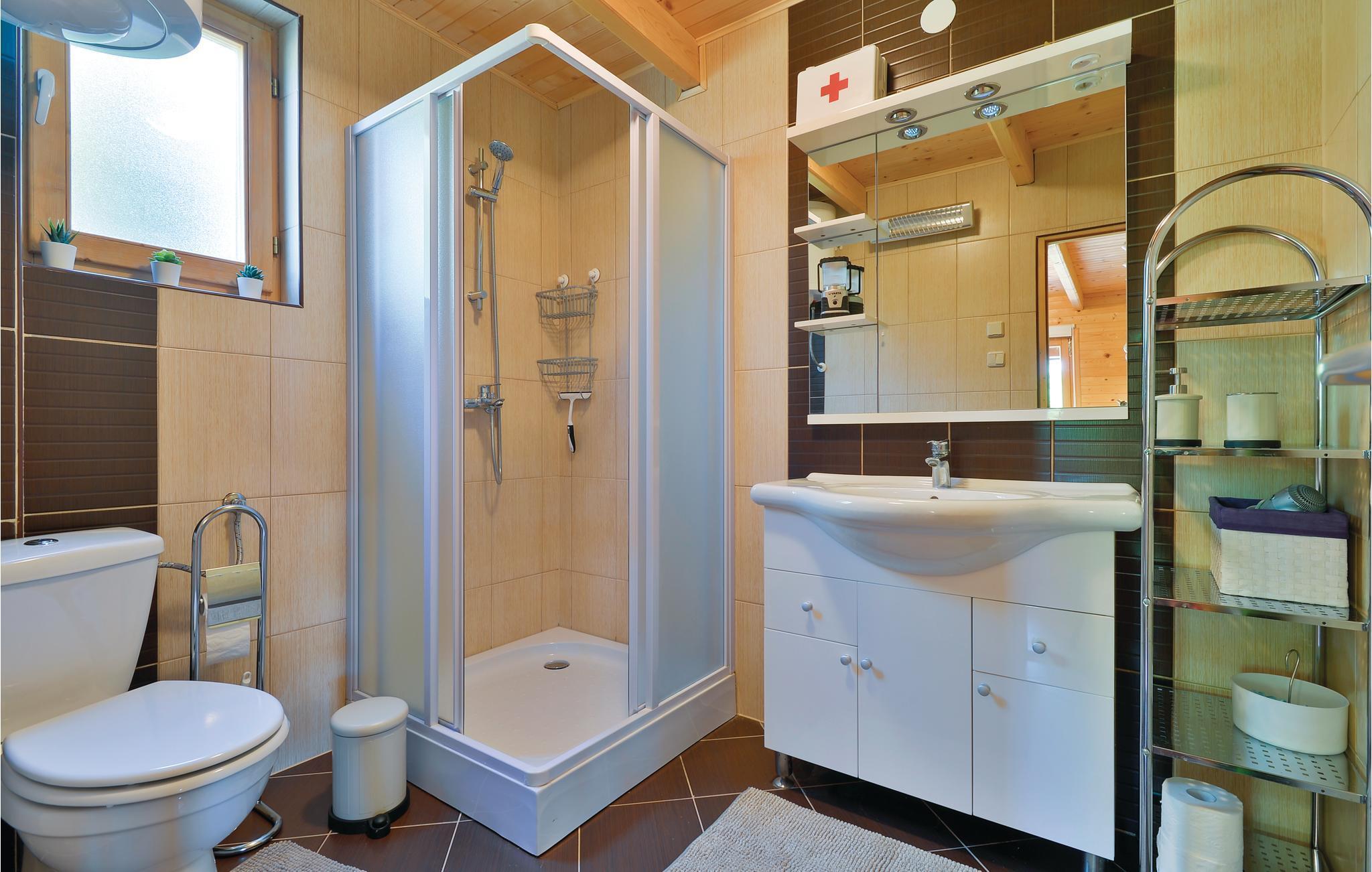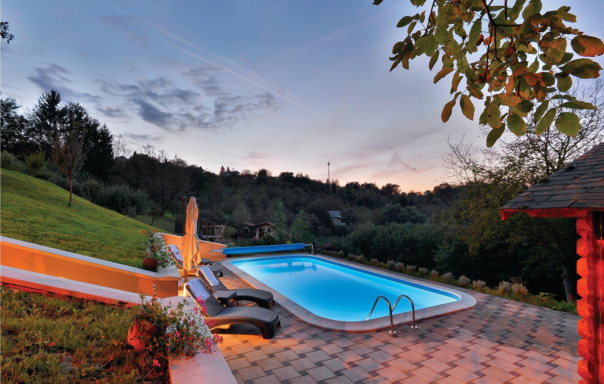 Strax utanför Varazdinske Toplice ligger detta omsorgsfullt inredda semesterhus i trä. På den stora fastigheten hittar du poolen, som har en vattengeysir och UV-vattenbehandling Du hittar massor av lekar för barnen och en terrass där du kan koppla av i skuggan. Husets interiör är vackert och modernt inredd och själva huset är utrustat med alla bekvämligheter som behövs för en bekymmersfri och avkopplande semester. Bottenvåningen består av ett vardagsrum med utsikt över terrassen, kök och matplats samt ett badrum. På första våningen, där den minsta takhöjden är ca 60 cm, finns två sovrum, ett galleri och ett badrum. Endast cirka en kilometer från huset ligger Varazdinske toplice, där du kan njuta av fördelarna med termiskt vatten, wellnessfaciliteter, idrottsanläggningar och promenader i naturen. Under din vistelse rekommenderar vi ett besök i den vackra staden Varazdin, vars monumentala och konstnärliga arv med sin frodiga barockarkitektur samt harmonin på dess torg och unika romantiska gränder kommer att glädja dig. Missa inte ett besök på Änglamuseet.