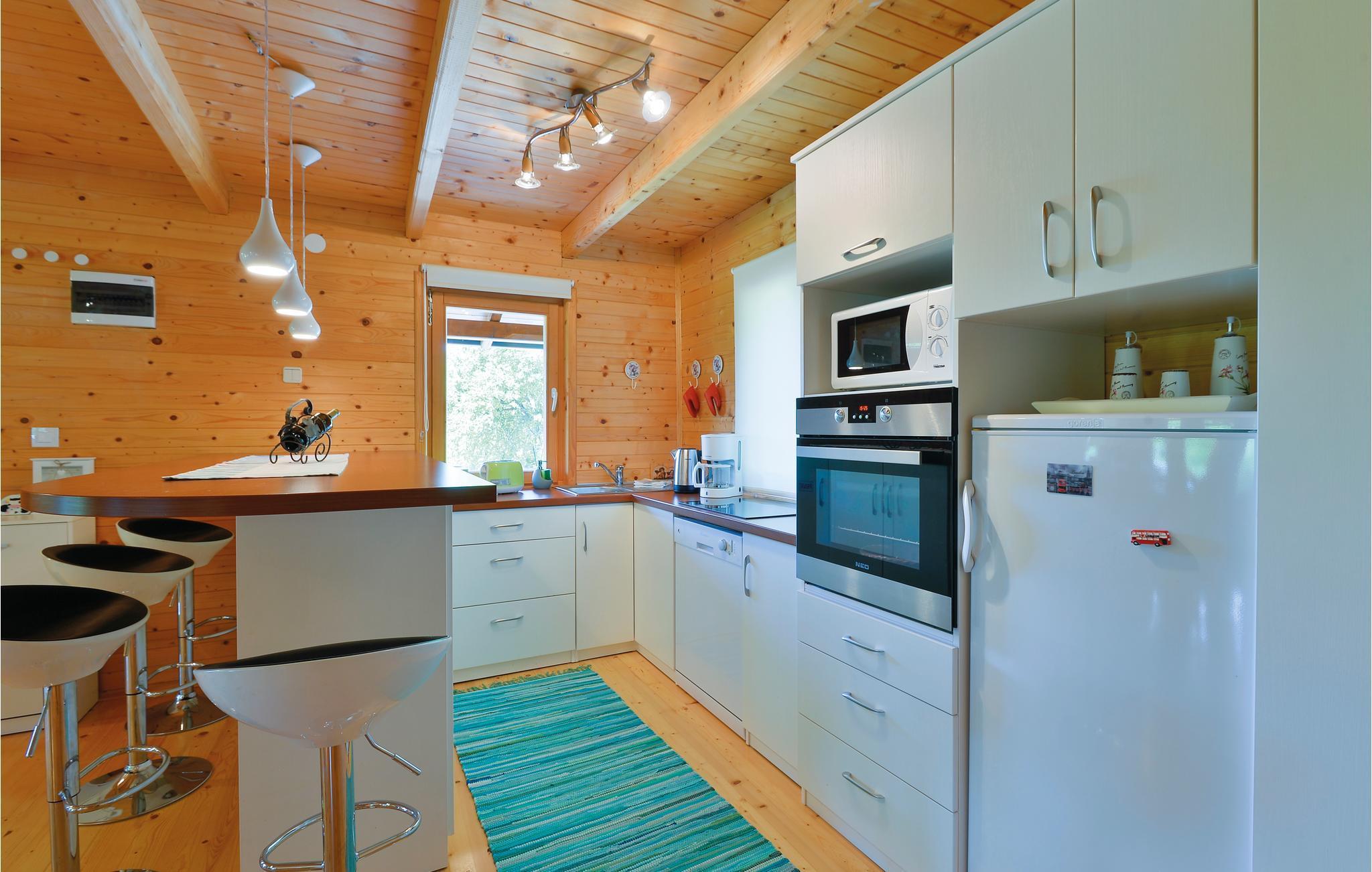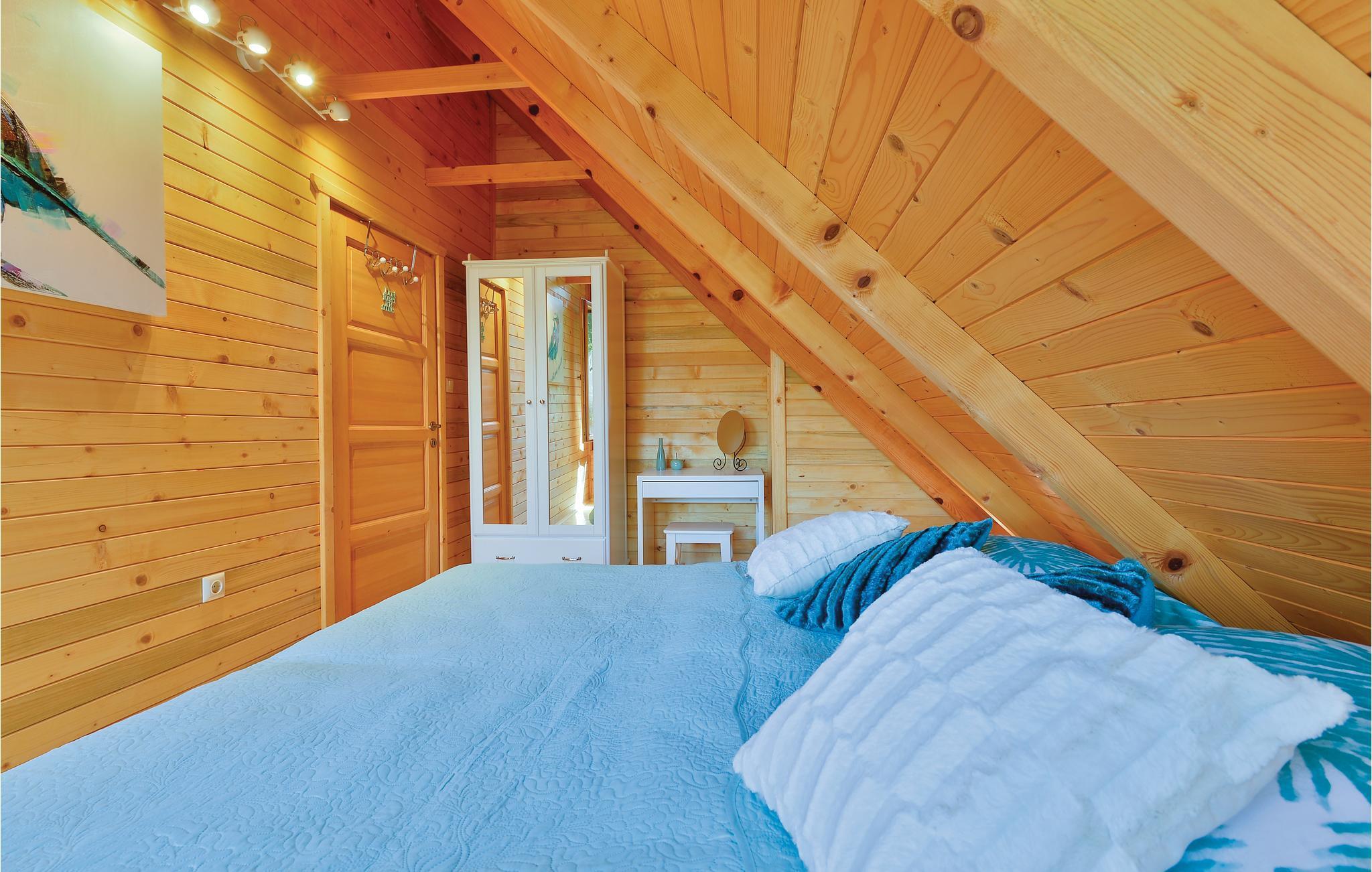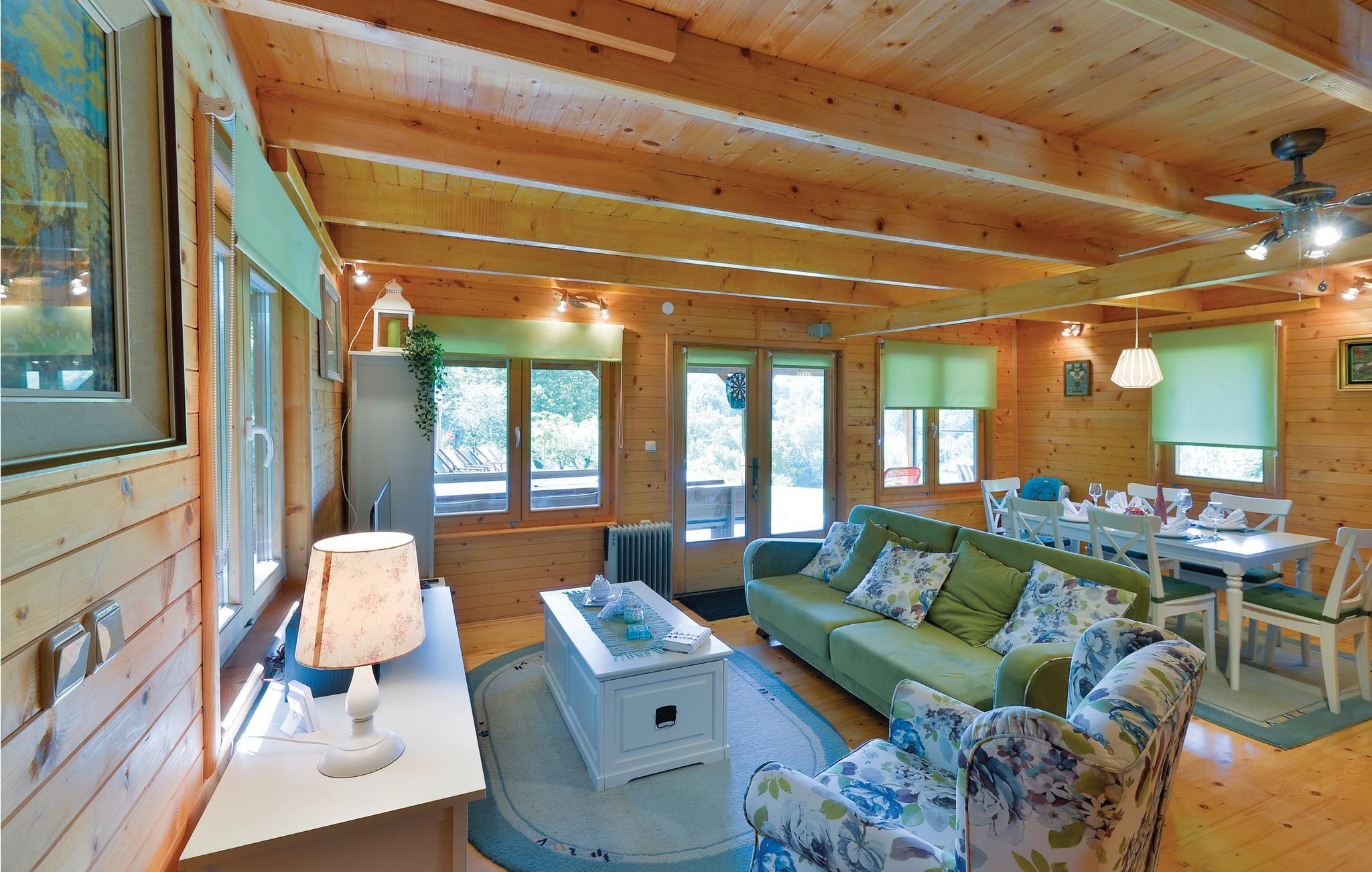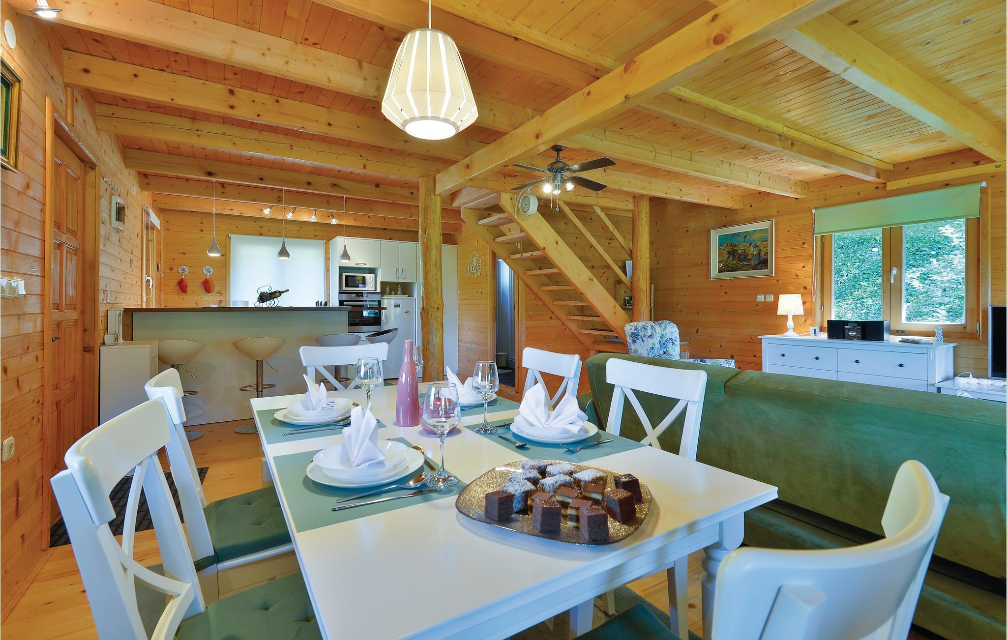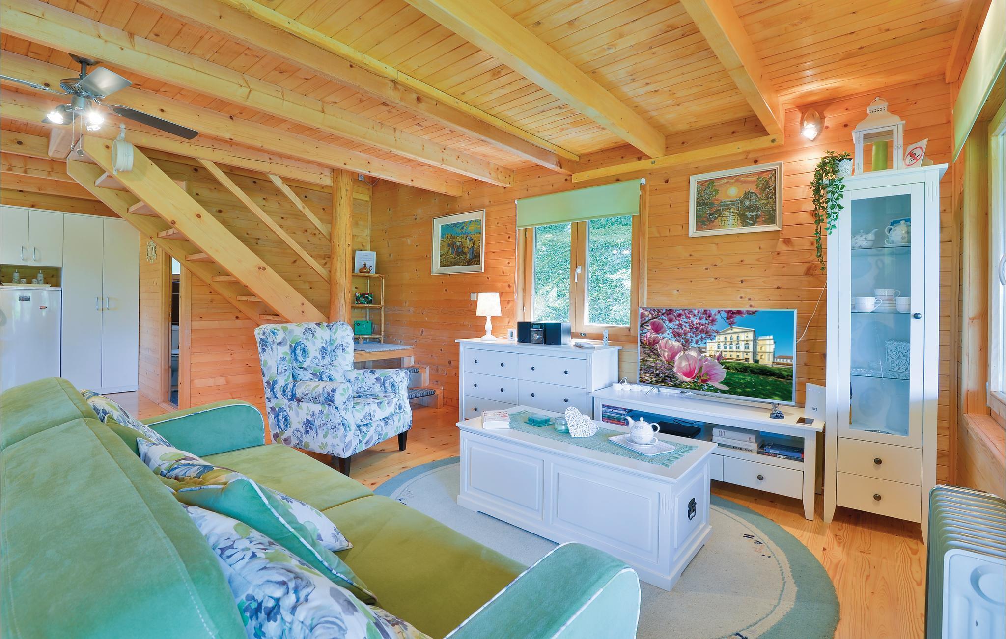 Strax utanför Varazdinske Toplice ligger detta omsorgsfullt inredda semesterhus i trä. På den stora fastigheten hittar du poolen, som har en vattengeysir och UV-vattenbehandling Du hittar massor av lekar för barnen och en terrass där du kan koppla av i skuggan. Husets interiör är vackert och modernt inredd och själva huset är utrustat med alla bekvämligheter som behövs för en bekymmersfri och avkopplande semester. Bottenvåningen består av ett vardagsrum med utsikt över terrassen, kök och matplats samt ett badrum. På första våningen, där den minsta takhöjden är ca 60 cm, finns två sovrum, ett galleri och ett badrum. Endast cirka en kilometer från huset ligger Varazdinske toplice, där du kan njuta av fördelarna med termiskt vatten, wellnessfaciliteter, idrottsanläggningar och promenader i naturen. Under din vistelse rekommenderar vi ett besök i den vackra staden Varazdin, vars monumentala och konstnärliga arv med sin frodiga barockarkitektur samt harmonin på dess torg och unika romantiska gränder kommer att glädja dig. Missa inte ett besök på Änglamuseet.