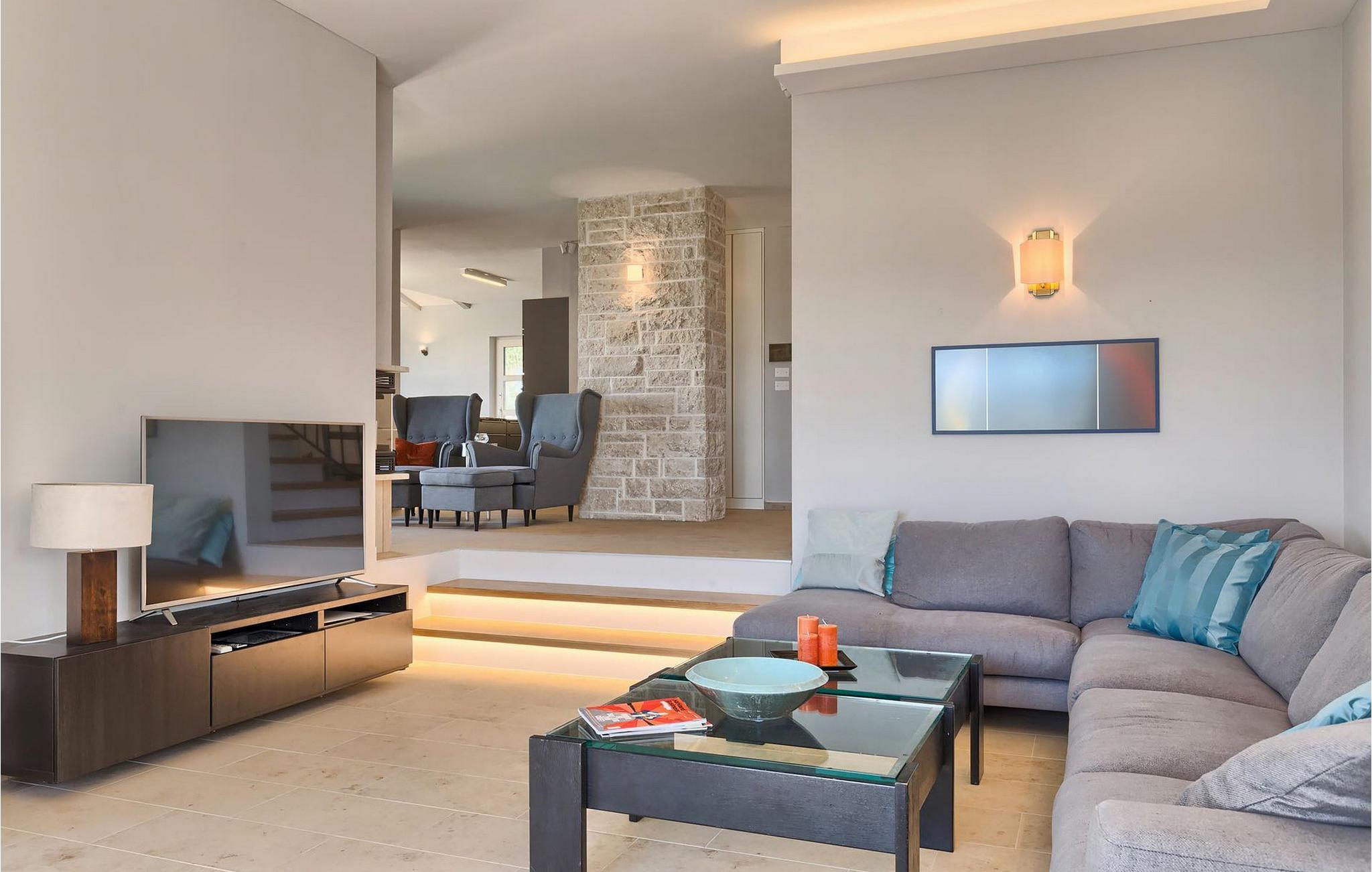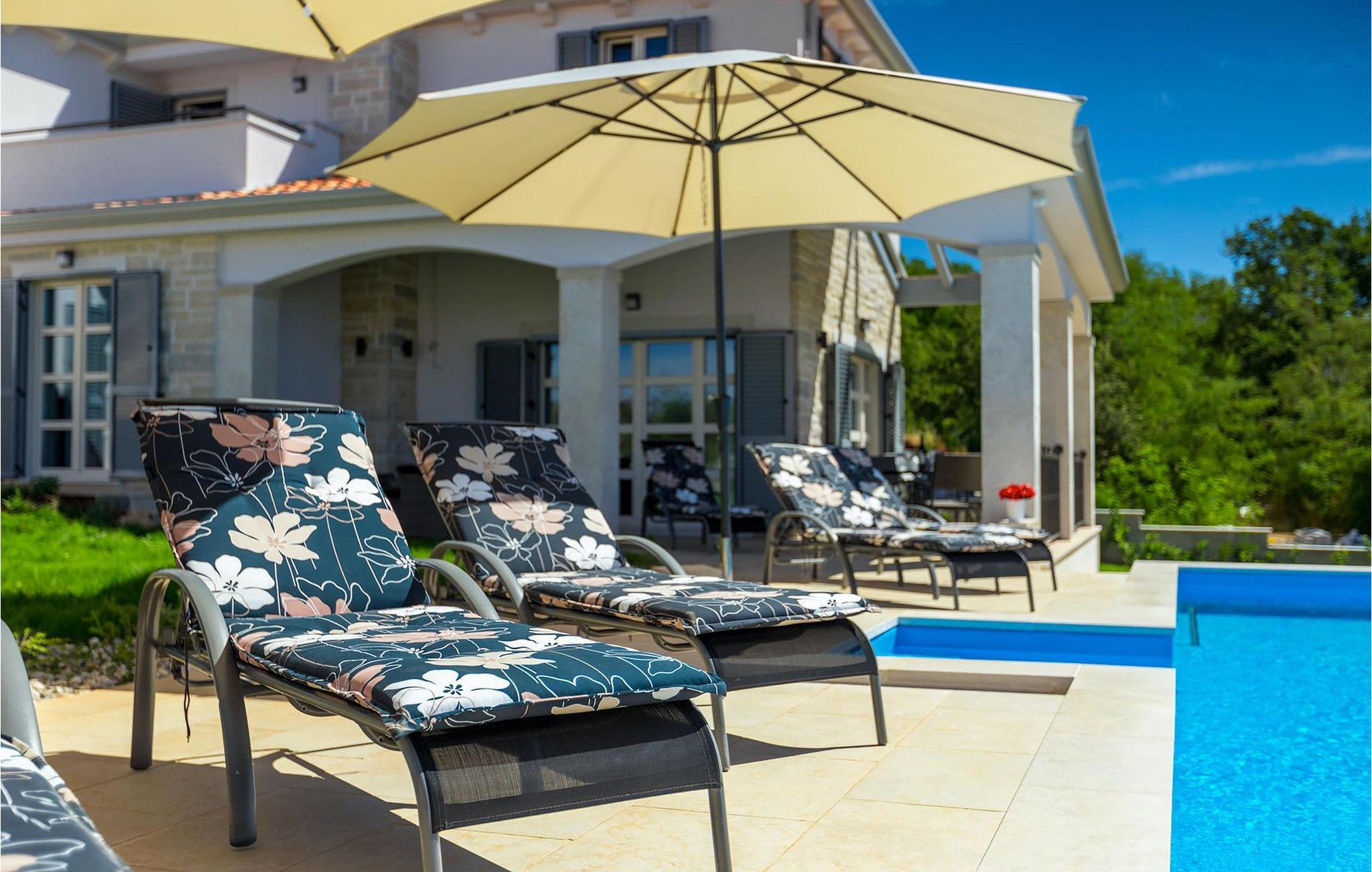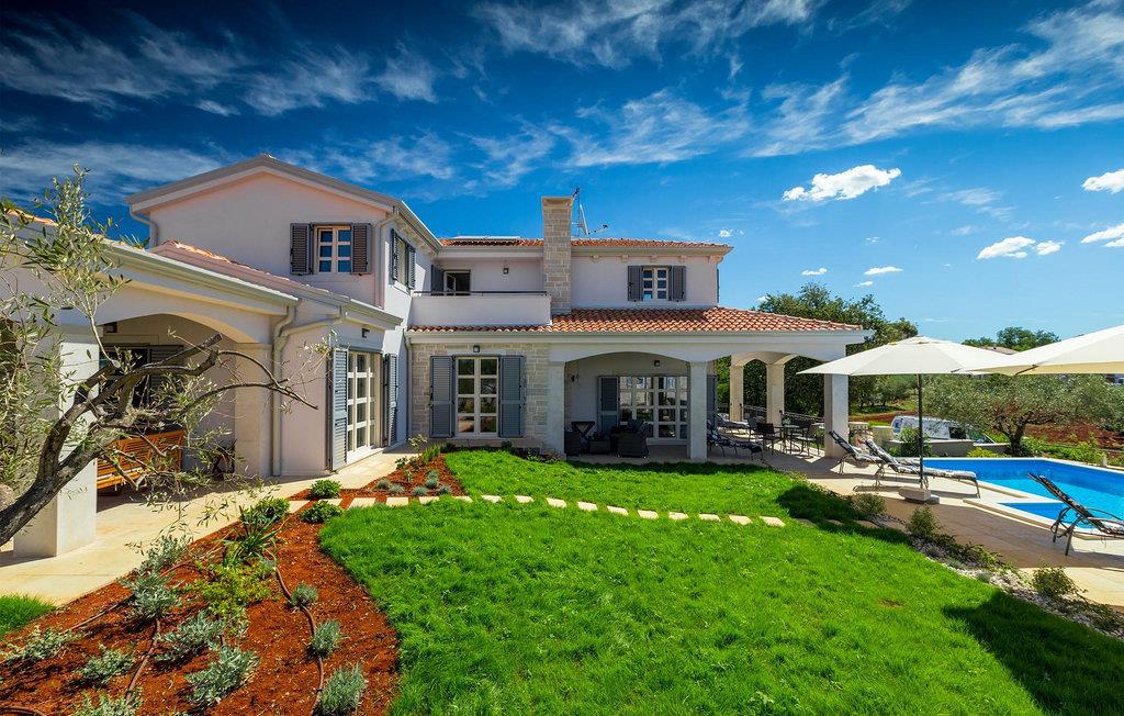 Drömmer du om att tillbringa din semester i en helt ny lyxvilla med en magnifik utsikt över Adriatiska havet och de närliggande olivlundarna? I så fall kan Villa Carpe Diem vara perfekt för dig! Tack vare sitt läge är denna villa solig och ljus hela dagen lång. Den är också extremt bekväm och fullt utrustad. På bottenvåningen i villan hittar du vardagsrummet, som är utrustat med en stereoanläggning och en stor platt-TV. Bredvid vardagsrummet finns det eleganta, moderna köket med matplats. Villan har totalt 4 sovrum, alla med eget badrum, och kan rymma upp till 8 personer. Ett sovrum ligger på bottenvåningen, medan ytterligare 3 sovrum är utspridda över första våningen. Det mycket charmiga utomhusområdet erbjuder bekväma solstolar där du kan njuta av den varma istriska solen vid poolen. Men om du föredrar skuggan finns det flera täckta terrasser och 2 matplatser. På baksidan av villan finns en generöst välskött gräsmatta där de yngsta gästerna kan ha roligt.villan ligger nära en charmig by som heter Kastelir. Det är nära till staden Porec och dess stränder. Butiker och restauranger ligger inom gångavstånd. Områden av intresse inkluderar de medeltida bergsstäderna Motovun och Groznjan och kuststäderna Rovinj och Vrsar. Lite längre bort finns Brijuniöarna, den romerska amfiteatern i Pula och en dagsutflykt till Venedig som rekommenderade utflykter från denna region. För golfentusiaster finns det en golfklubb i Umag nära villan och en golfbana på den vackra ön Brijuni, bara 50 kilometer från villan. Den prisbelönta vattenparken Istralandia ligger också i omedelbar närhet, perfekt för en rolig dag i solen med hela familjen.