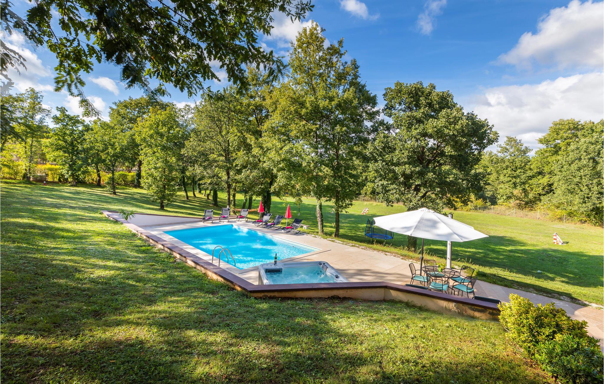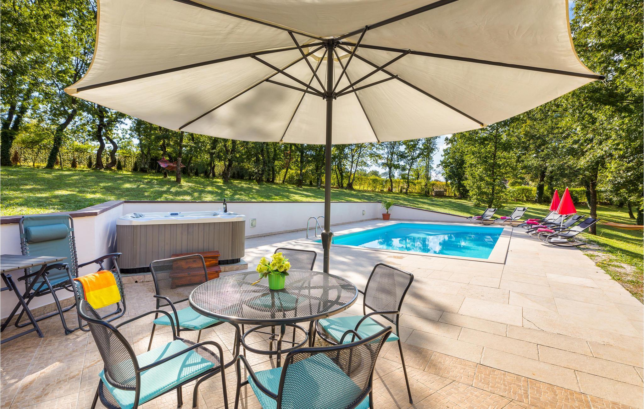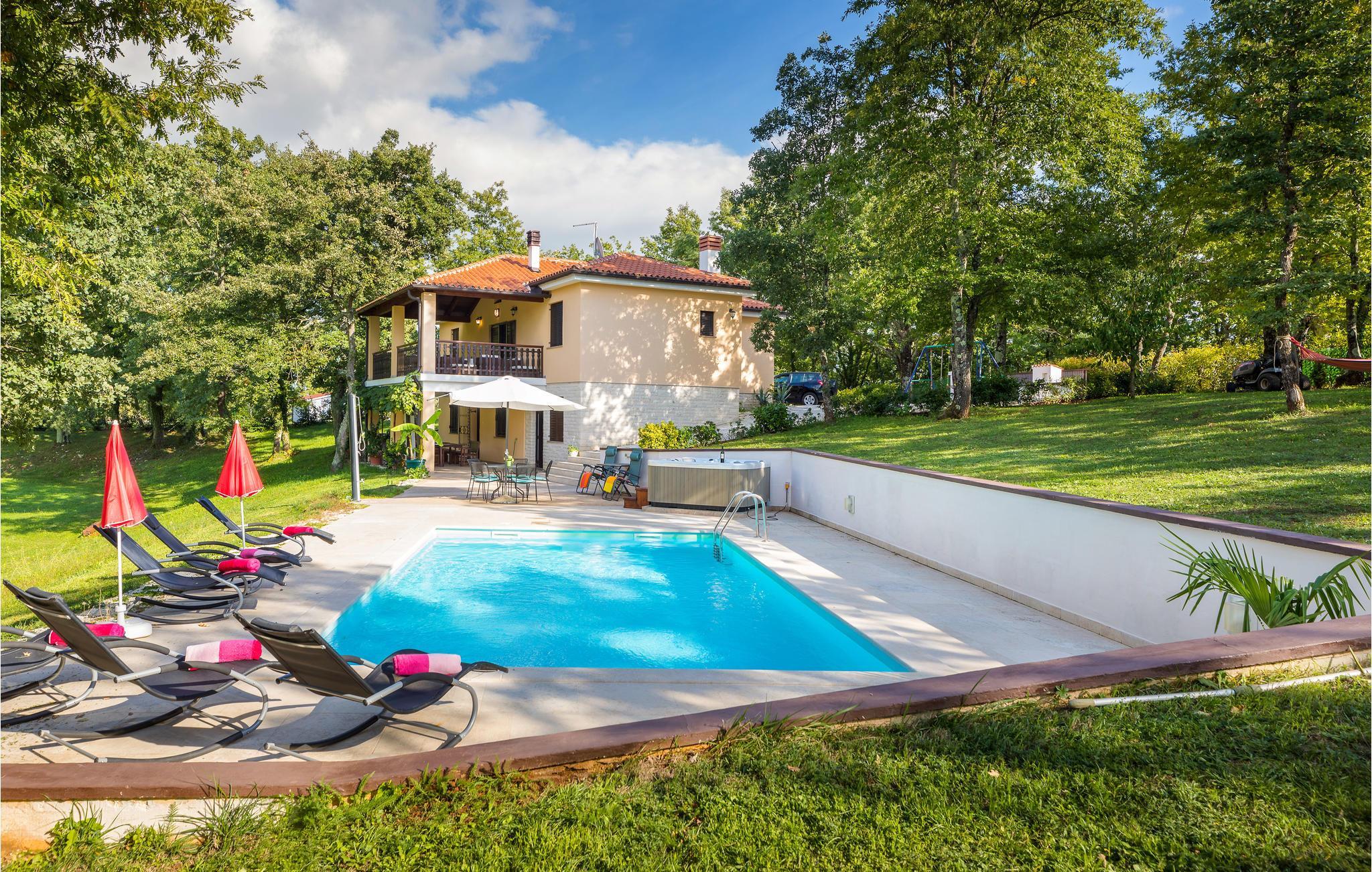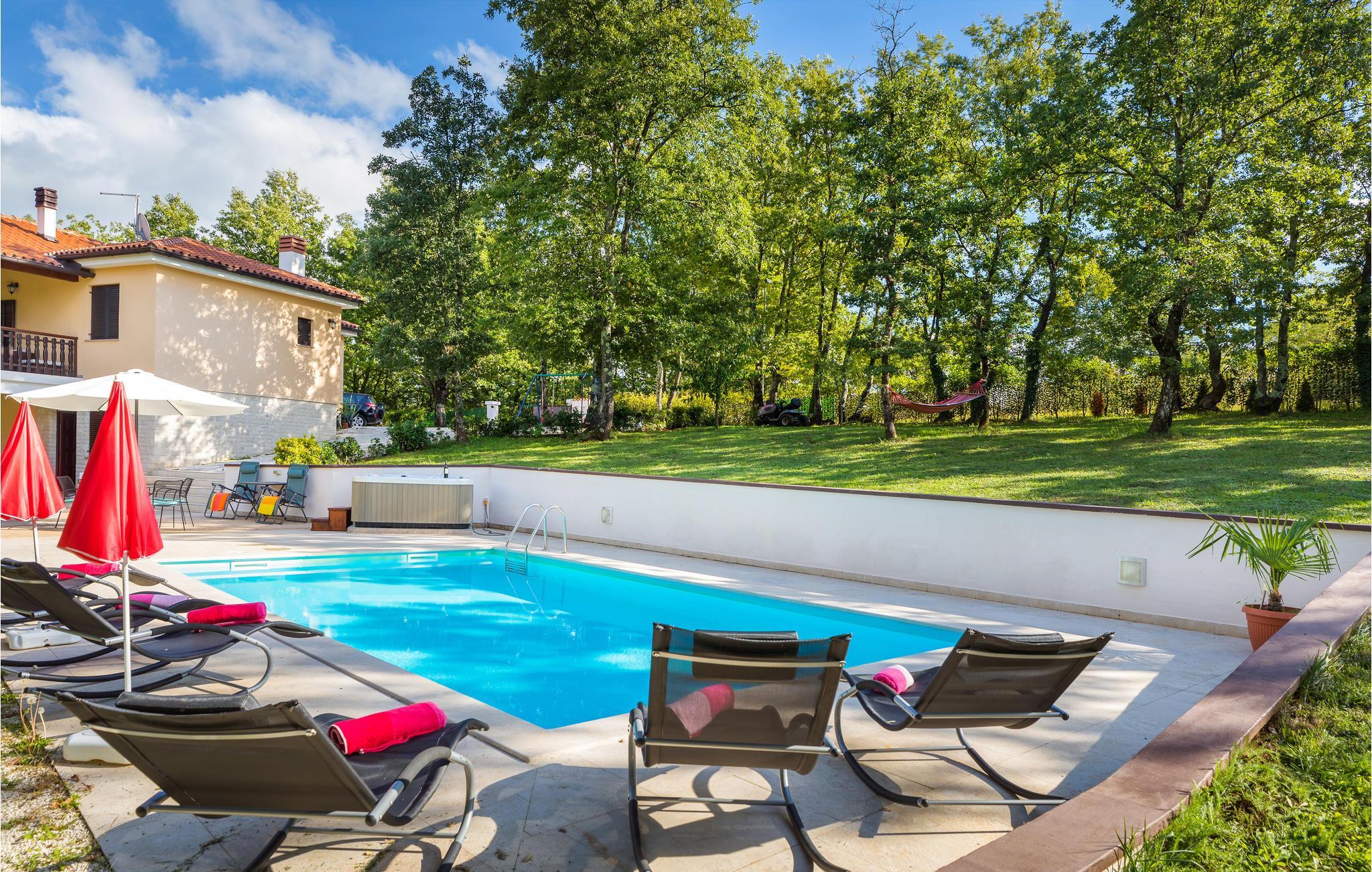 Om du vill tillbringa din semester i en semesterbostad omgiven av grönska är detta rätt val. Det har en mycket stor tomt som inbjuder till promenader och avkoppling och erbjuder dina barn tillräckligt med underhållning och friutrymme. Vid huset, som består av två separata boendeenheter, finns också en pool som ger dig förfriskning under de varma sommardagarna. Även om semesterhuset ligger i den centrala delen av halvön Istrien kan du enkelt utforska den i alla riktningar med bil på bara cirka en halvtimme.