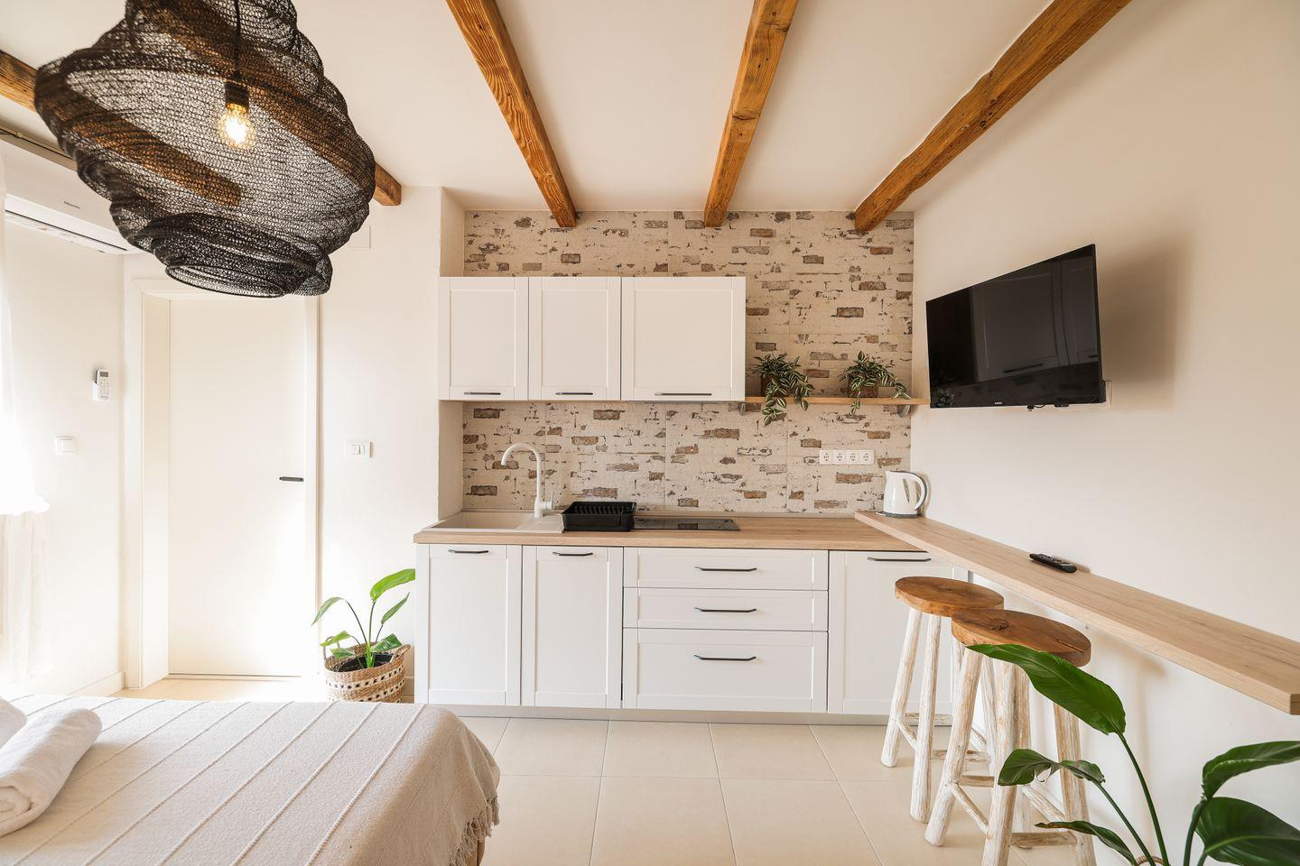Das gemütliche Studio befindet sich im 1. Stock und bietet auf 23 m² eine voll ausgestattete Küche, ein komfortables Doppelbett sowie einen Balkon, auf dem Sie entspannen können. Zur weiteren Ausstattung gehören TV, WLAN und Klimaanlage, die für höchsten Komfort und beste Unterhaltung sorgen – ideal, um auch im Urlaub flexibel und gut versorgt zu sein. Das moderne Badezimmer ist mit einer Walk-in-Dusche und einem WC ausgestattet und rundet das Wohlfühlpaket ab. Ob für einen entspannten Urlaub oder eine praktische Unterkunft auf Geschäftsreisen – hier finden Sie alles, was Sie brauchen, um sich rundum wohlzufühlen. Wir bitten um Ihr Verständnis, dass Haustiere in diesem Studio nicht gestattet sind.