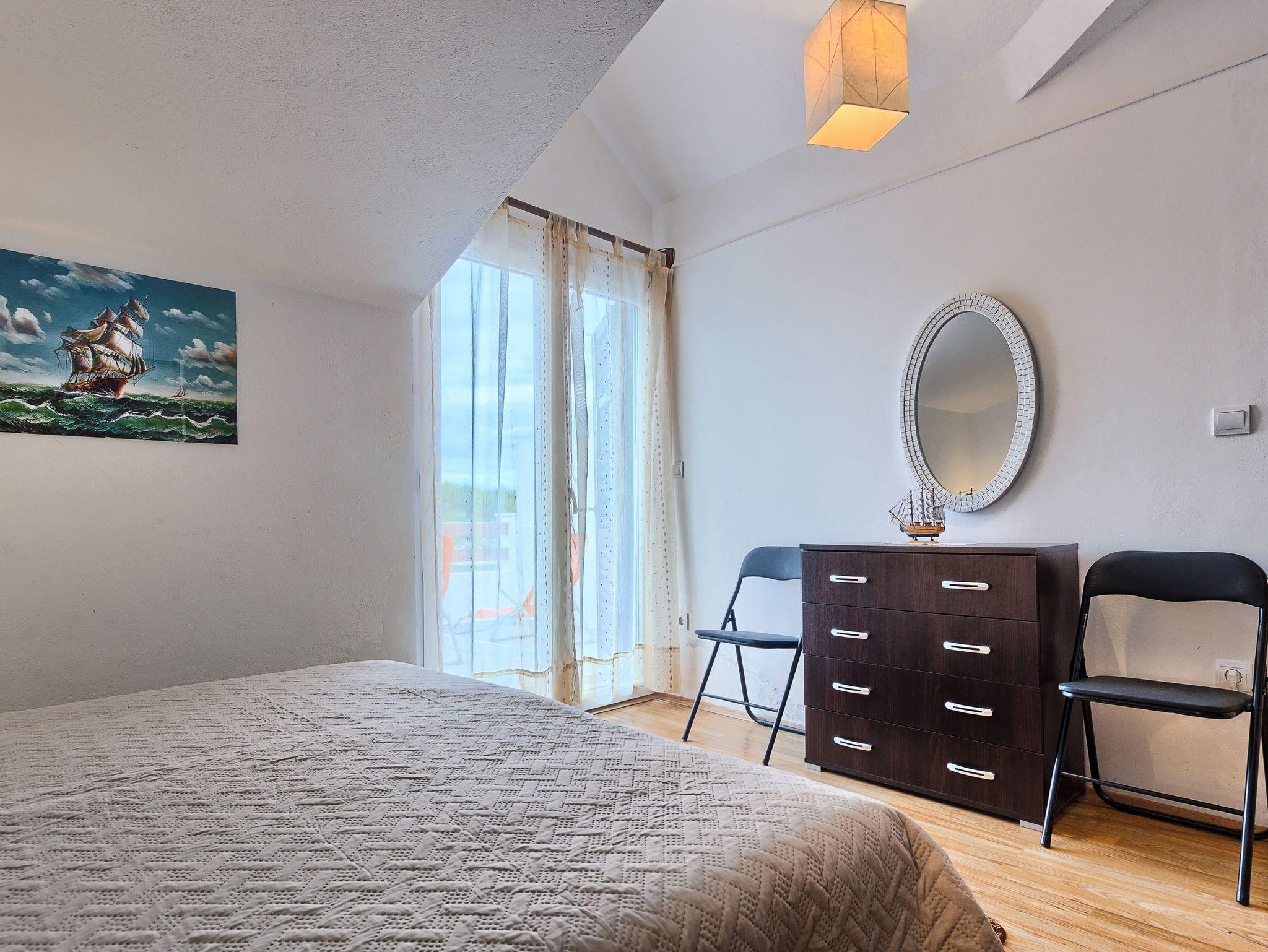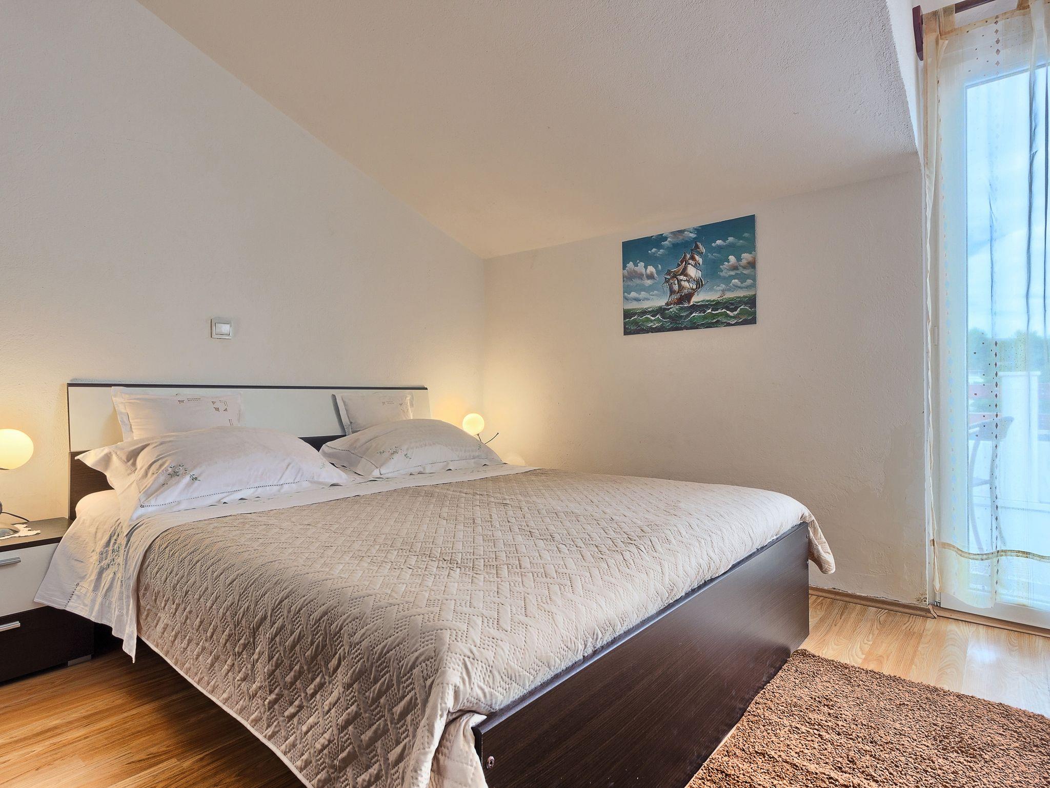 Ferienwohnung bietet Platz für 4 Gäste. Die Betten sind in Schlafzimmern, die es 2 gibt, innerhalb einer Gesamtfläche von 39m2, angeordnet. Die Gäste haben eine eigene Terrasse zur Verfügung, auf der sie in warmen Sommernächten genießen können. Das Apartment bietet Meerblick. Es ist erlaubt, Speisen auf dem Gemeinschafts-Grill vorzubereiten. In der Unterkunftseinheit besteht die Möglichkeit des Mitbringens von Haustieren gegen Aufpreis. IM PREIS INBEGRIFFEN: Kurtaxe, Endreinigung, Klimatisierung, Parkplatz, Internet, Wäschewaschen, Kinderbett, Bügeleisen, Bügelbrett, Föhn. VERBINDLICHE ZUSÄTZLICHE KOSTEN: Aufzahlung für Kurzaufenthalte (prozentualer Zuschlag pro Nächtigungsanzahl: 30% - 1, 20% - 2, 10% - 3). UNVERBINDLICHE ZUSÄTZLICHE KOSTEN: Bootsanlegeplatz (10,00 € pro Nacht), Haustiere (10,00 € pro Nacht). Die Verfügbarkeit zusätzlicher Dienstleistungen in Ihrem reservierten Termin und die Preise derselben (falls nicht aufgeführt) müssen im Voraus überprüft werden. Zusätzliche Dienstleistungen die in der Zahlungsaufforderung nicht aufgeführt sind werden direkt beim Vermieter bezahlt, angenommen der Gast nutzt auch diese.