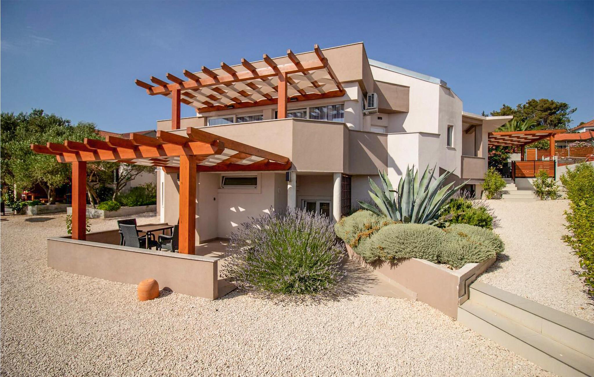 Se fram emot din semester i denna vackra lägenhetsbyggnad i Bibinje. Flera lägenheter välkomnar dig som ett par eller som en familj och inbjuder dig att semestra tillsammans med familjens vänner utan att offra din integritet. De ljusa och mjuka färgerna i inredningen kommer att göra dig lugn och skapa den perfekta miljön för att koppla av. Njut av en utsökt frukost på din privata terrass eller umgås med andra gäster på kvällen på den stora terrassen med sin murade grill. Den gemensamma poolen lovar också uppfriskning och simglädje och avrundar semesterboendet.