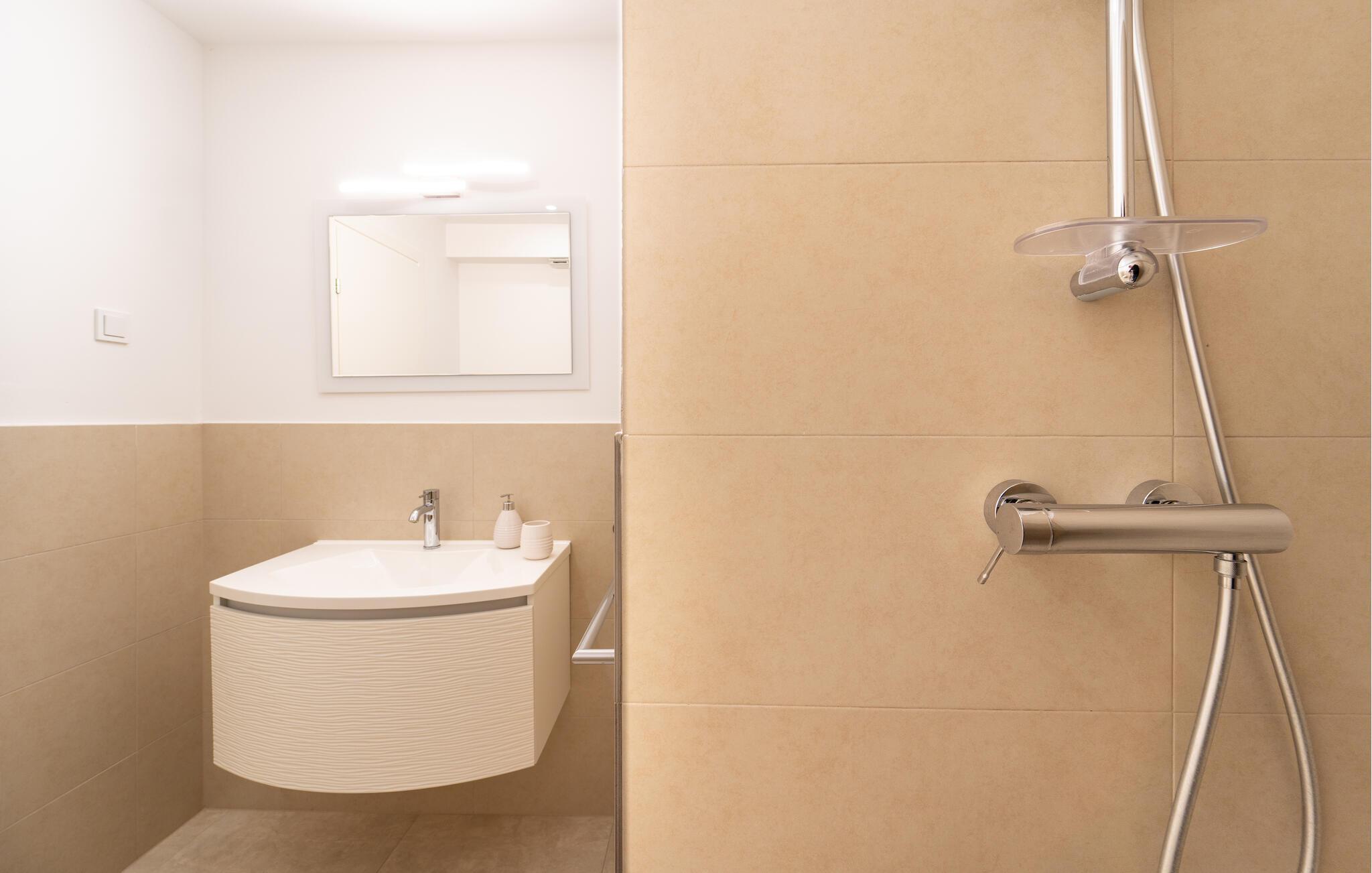Badrum 5m2 (nr. 2) - WC: Varmt och kallt vatten. Dusch