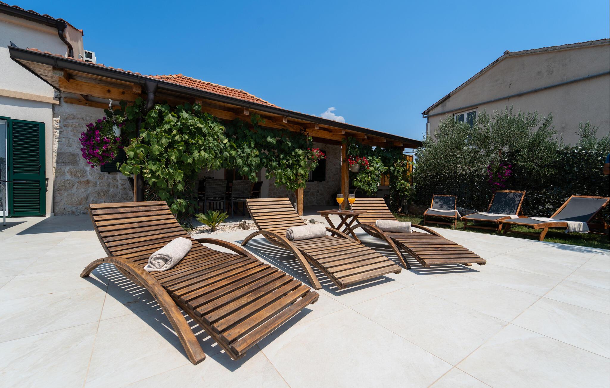 Unna dig en avkopplande semester på ett lugnt läge i detta vackra stenhus med pool.