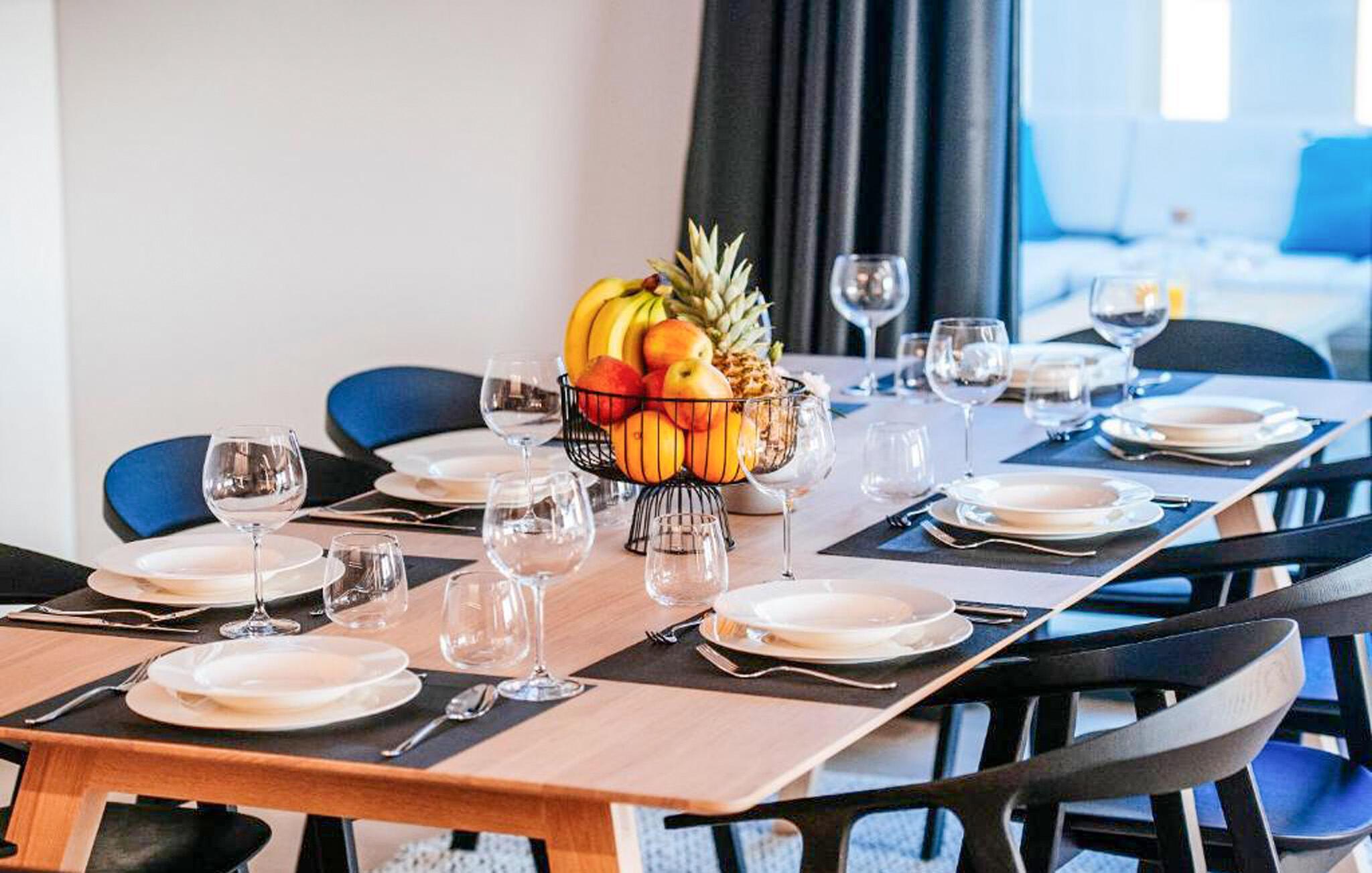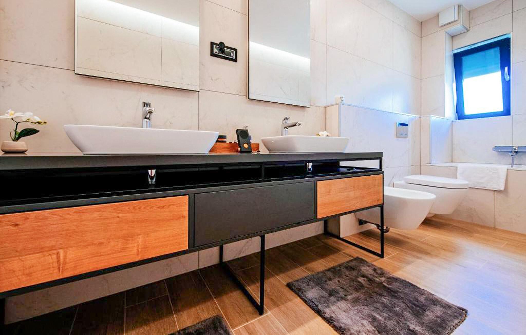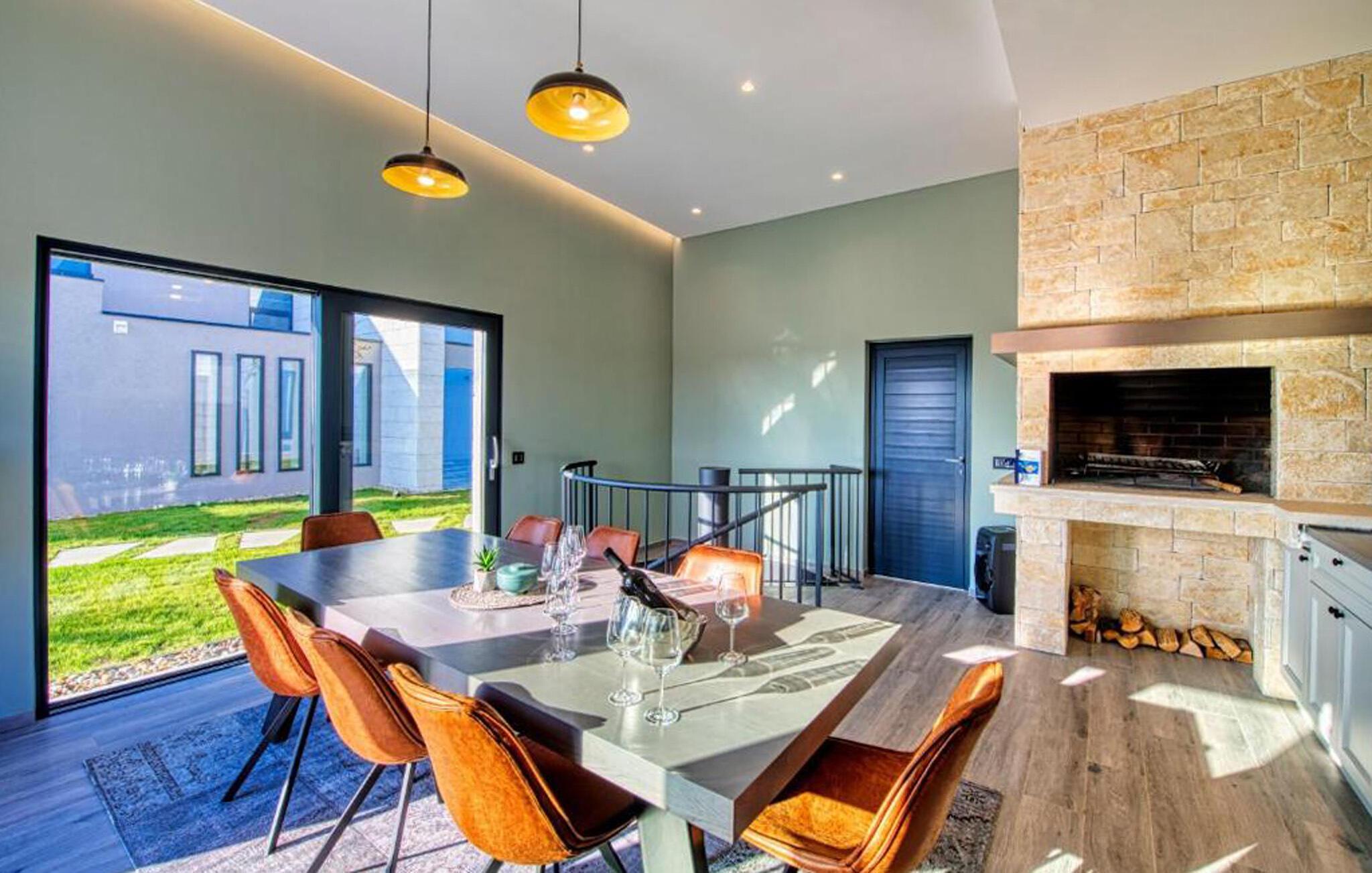 Tillbringa mysiga kvällar i det stilfullt inredda vardagsrummet med en rymlig och bekväm soffgrupp. Tillaga kulinariska läckerheter i det fullt utrustade köket och njut av dem i den eleganta matplatsen. Låt dig inspireras av den öppna och moderna designen i huset.