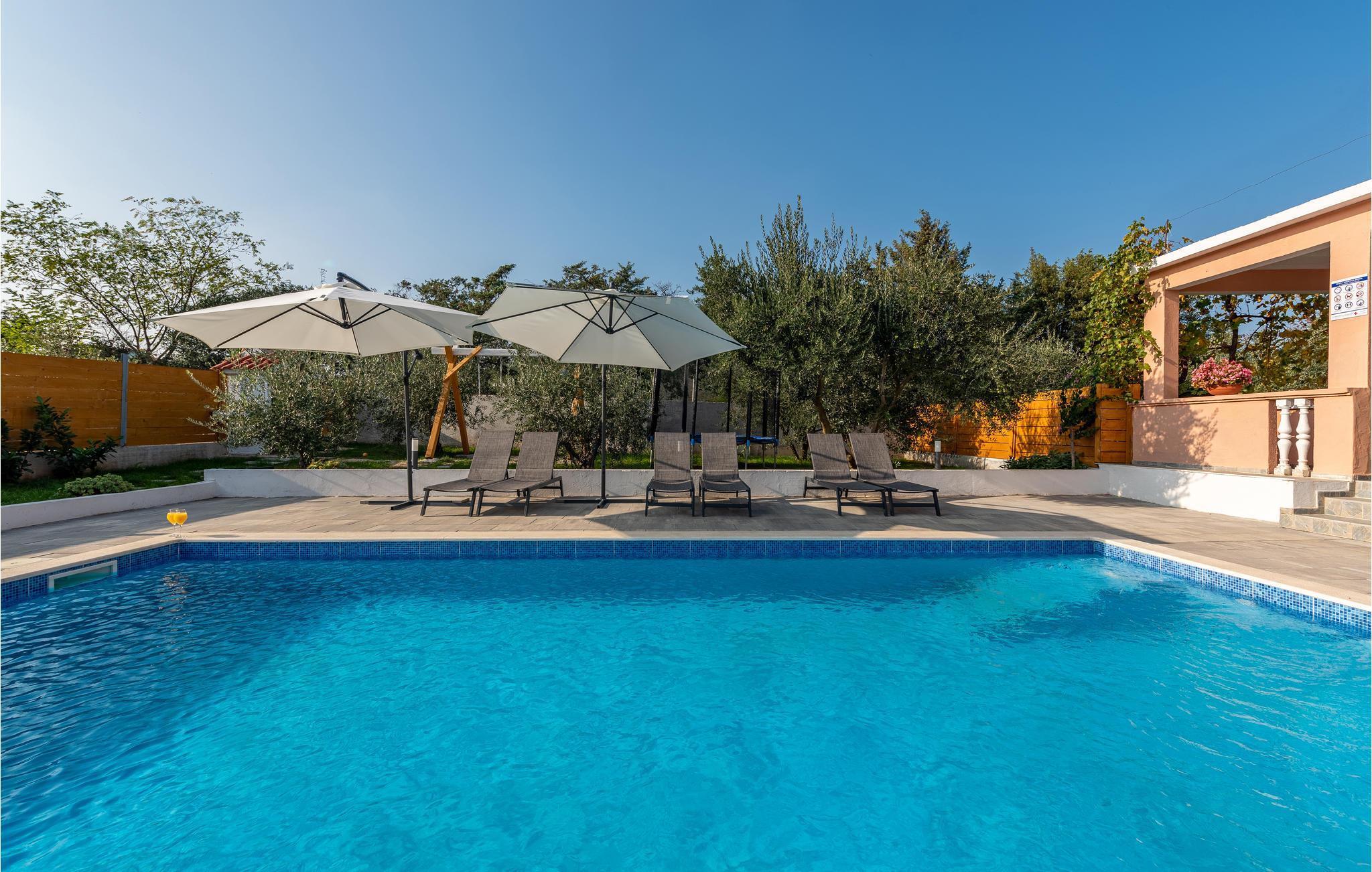 Strax söder om Zadar, på en rymlig tomt på över 2000 kvadratmeter, bor du i detta inbjudande boende i ett lugnt läge. En studsmatta och en gunga finns tillgängliga för barnen. Oavsett om det är en grillning i trädgården, ett bad i poolen, en läcker frukost utomhus eller en biltur till den närliggande kusten - allt finns på plats för en avkopplande semester.
