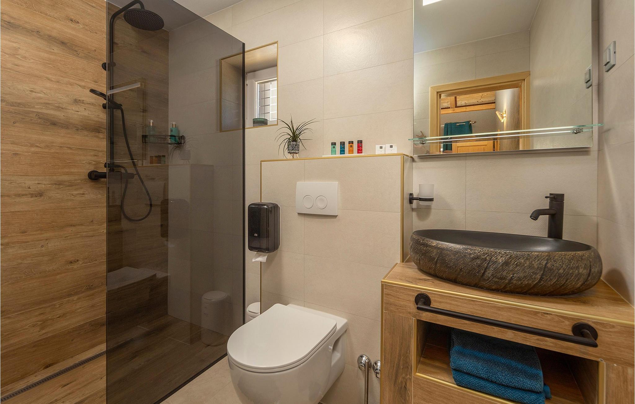 Badrum (nr. 3) - WC: Varmt och kallt vatten. Dusch