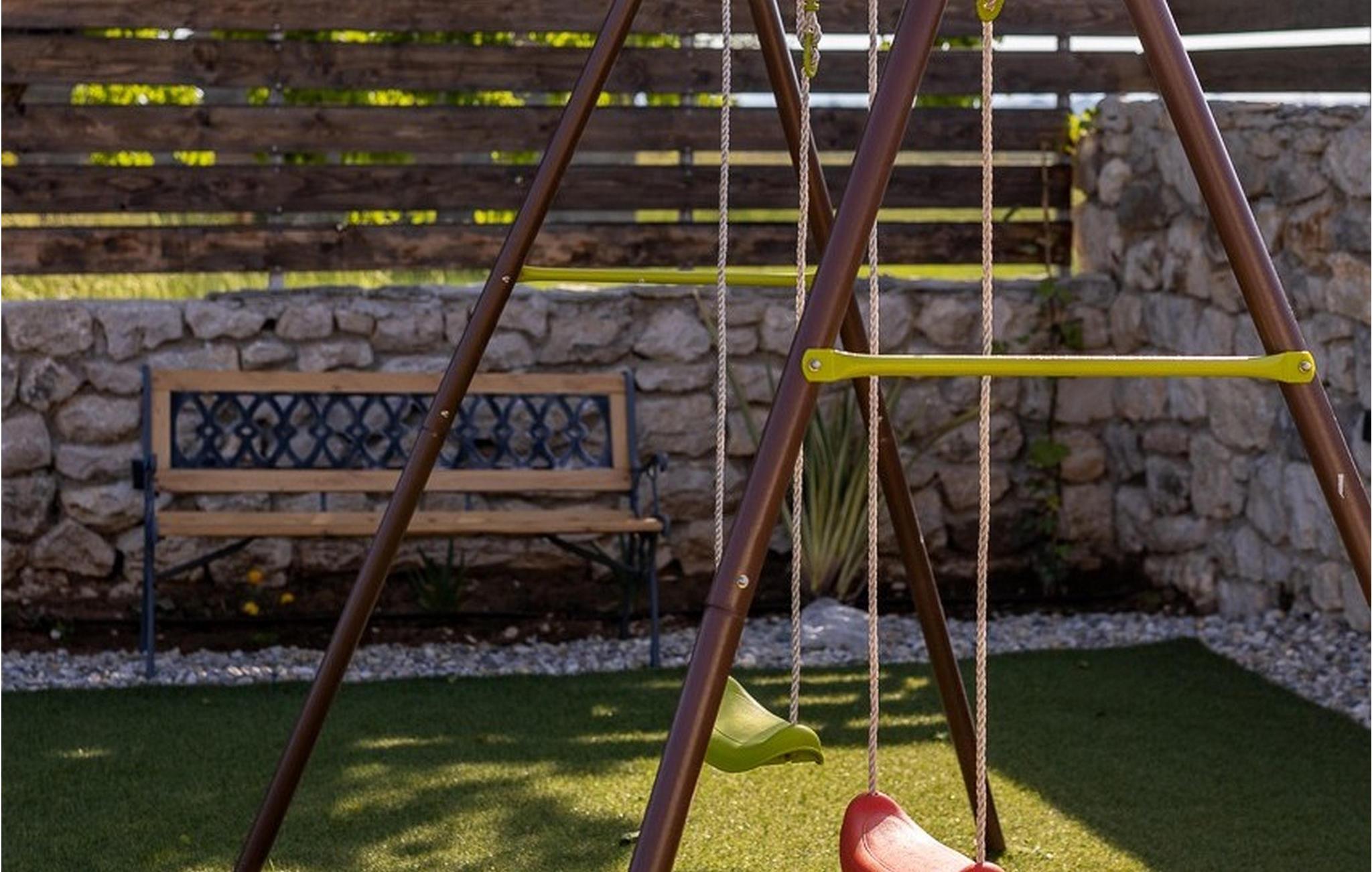 Det välskötta utomhusområdet är perfekt för att njuta av Kroatiens gynnsamma klimat till fullo med hela familjen. Ta en svalkande dopp i den vackra poolen, som också är perfekt för nattbad tack vare den stämningsfulla belysningen. Fördjupa dig i semesterläsning på bekväma solstolar, utmana dig själv vid bordtennisbordet och låt dina barn ha kul i de attraktiva lekplatserna i den vackert anlagda trädgården. Tänd grillen, tillaga läckra tillbehör i sommarköket och se fram emot mysiga sommarkvällar med vin och levande ljus.