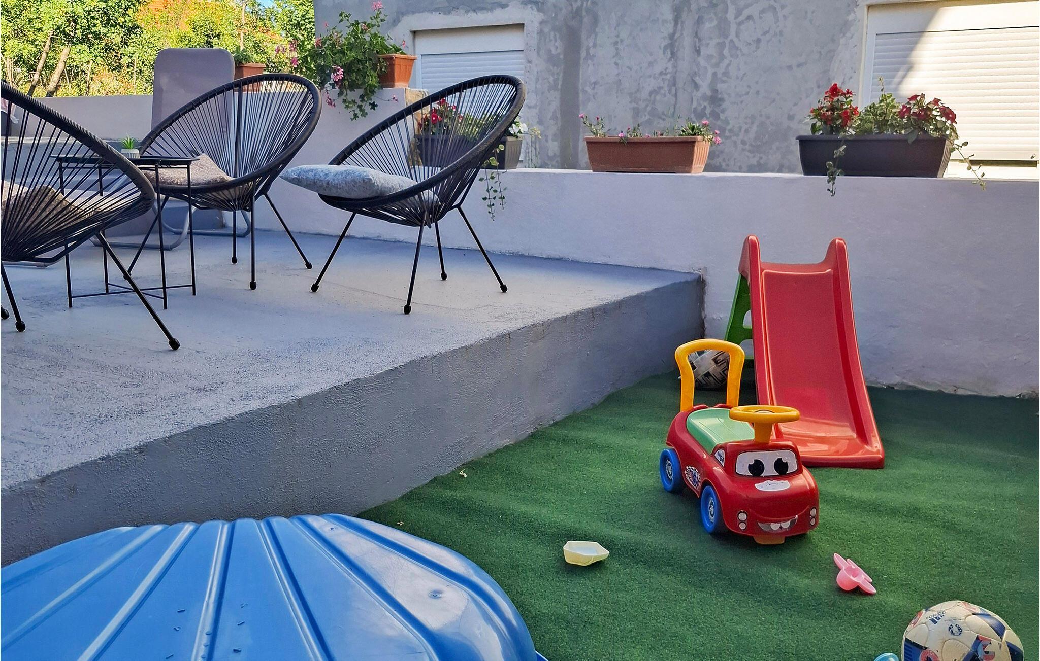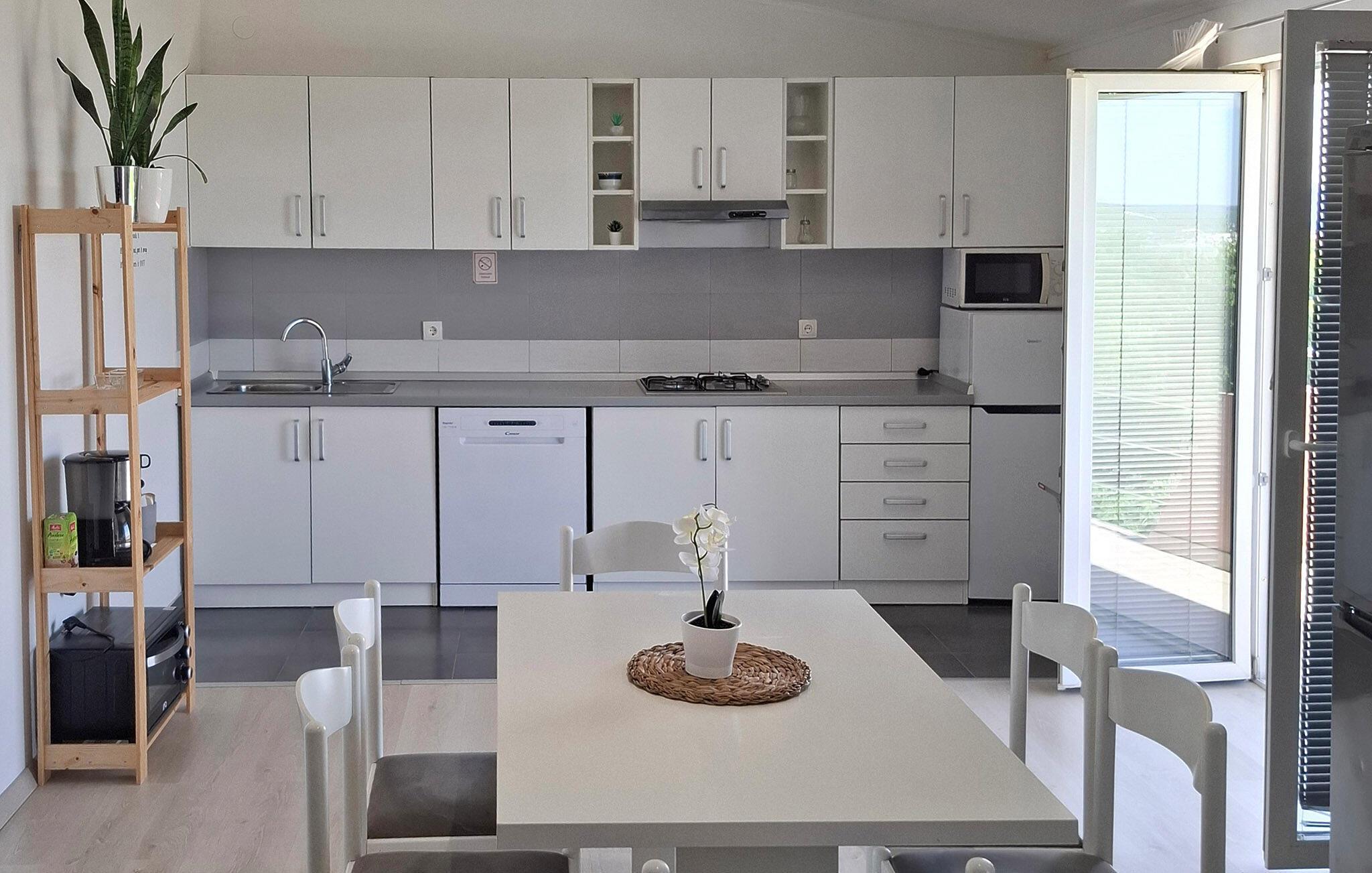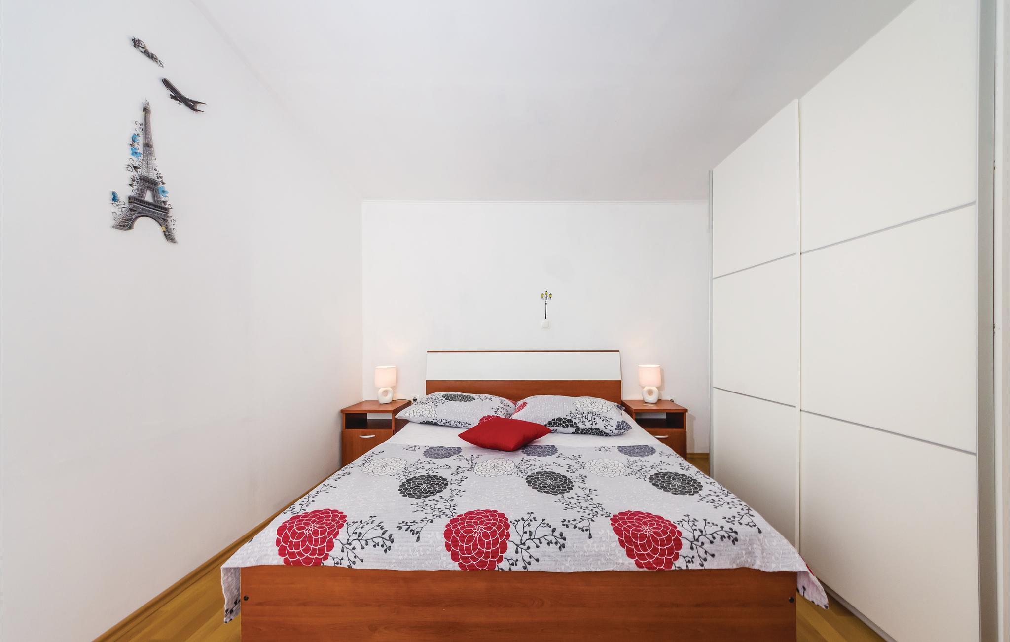 Denna rymliga och bekväma lägenhet ligger på andra våningen i ett familjehus i Maslenica, en badort som är känd för sina sekelgamla olivlundar, stenstränder och stränder med vackra strandpromenader. Lägenheten består av tre sovrum, två badrum och ett stort vardagsrum med kök. På den gemensamma fastigheten finns en sittgrupp samt en gemensam grill. Naturälskare och vandrare bör definitivt besöka nationalparken Paklenica med sitt unika och vackra bergslandskap. För gäster som söker äventyr och adrenalin finns det bungyjump på Maslenicabron och forsränning på floden Zrmanja. Inte långt därifrån ligger också den pittoreska staden Zadar, som erbjuder ett rikt kulturellt och historiskt arv samt en mängd restauranger som serverar lokala medelhavskök.