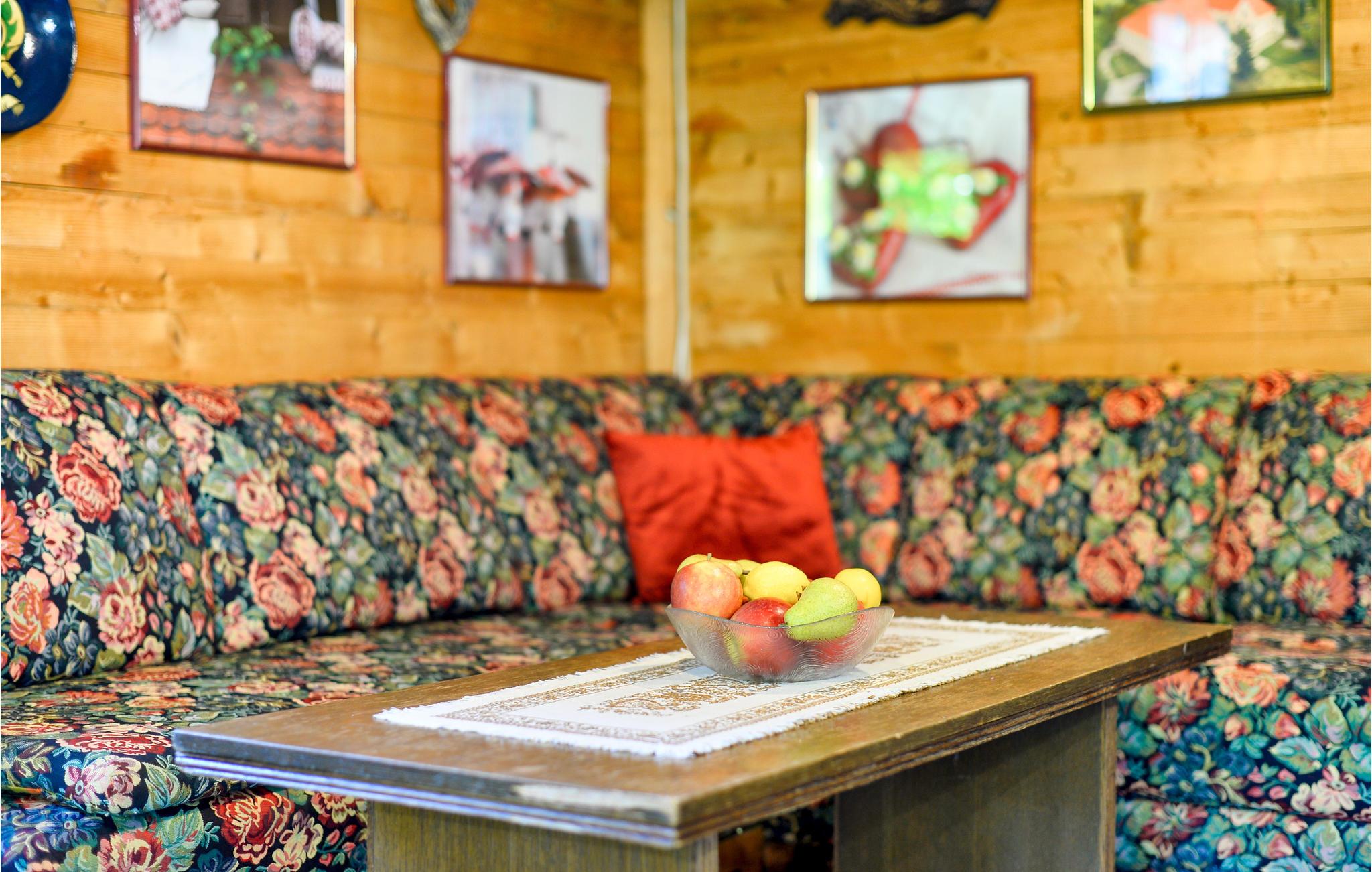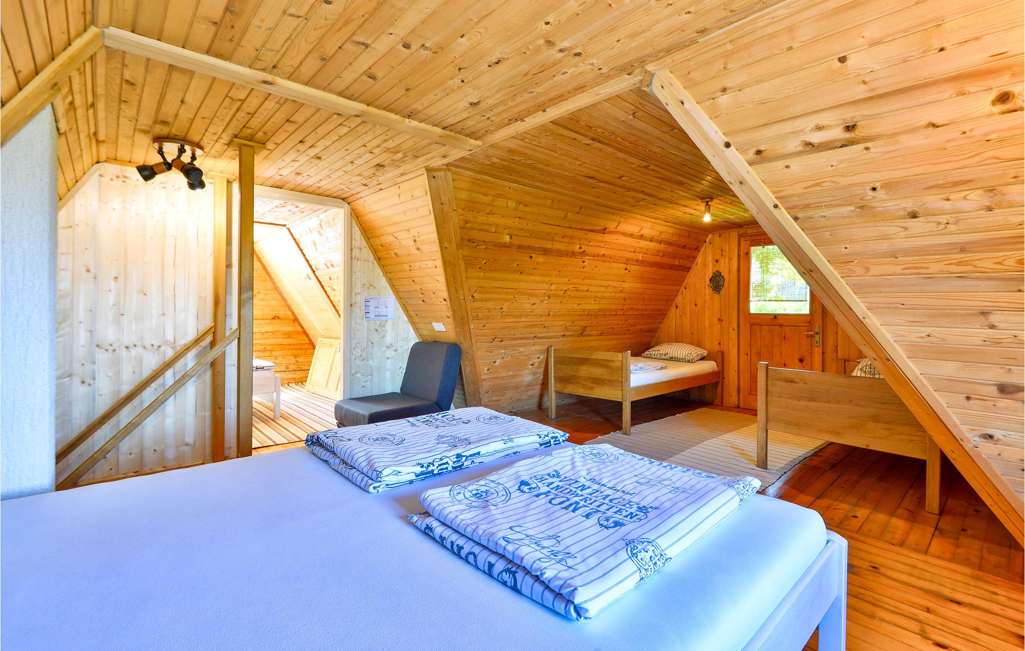 I huset är alla rum byggda helt i trä i bergshyttestil, vilket skapar en särskilt rustik semesterstämning. Dra dig tillbaka till salongen framför den öppna spisen, njut av utsikten genom den stora fönsterfronten vid matplatsen under måltiderna.
