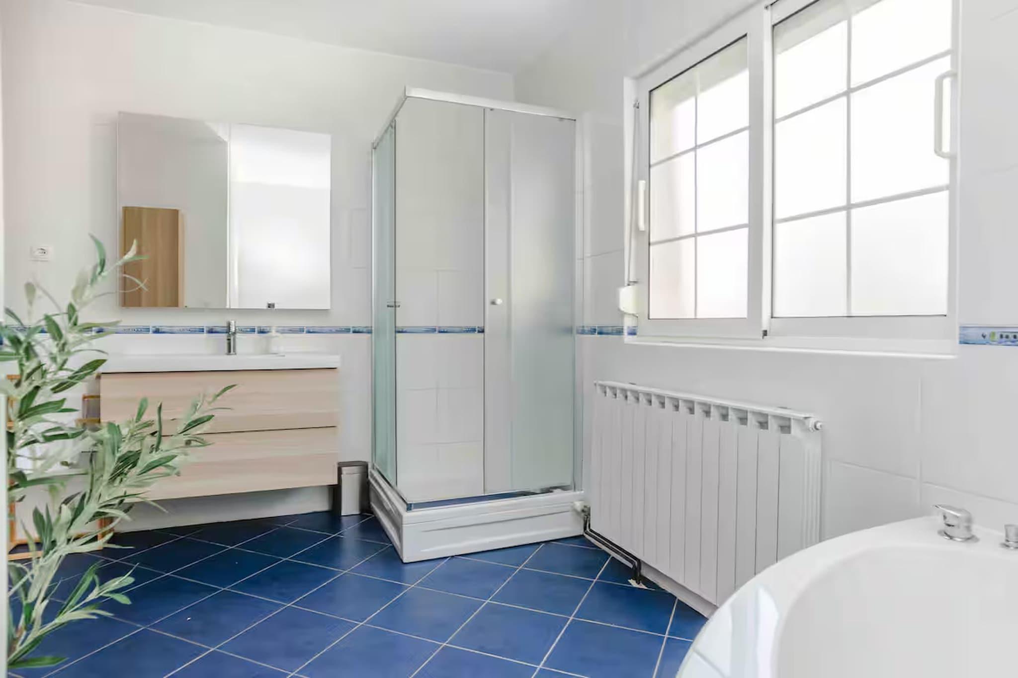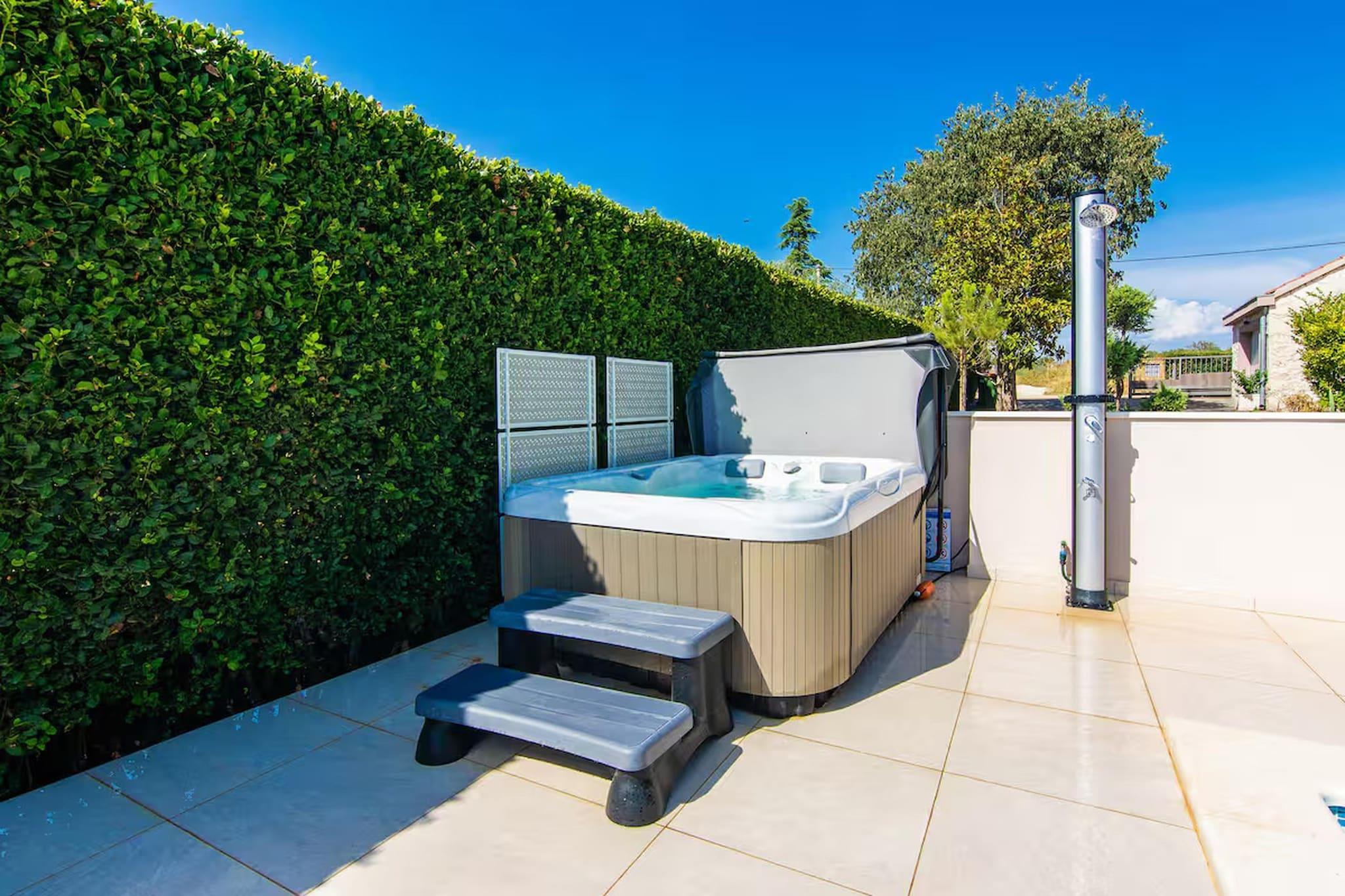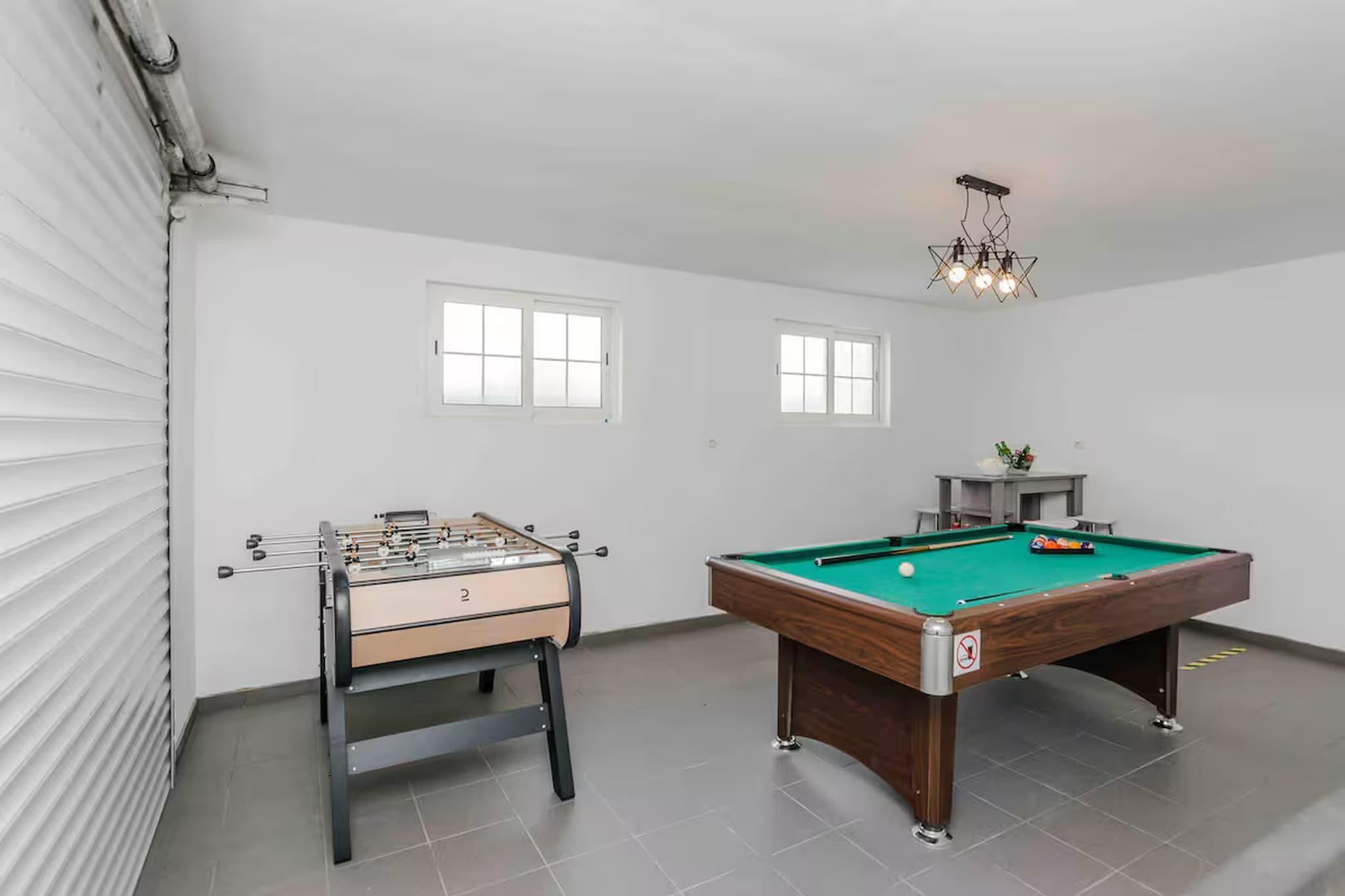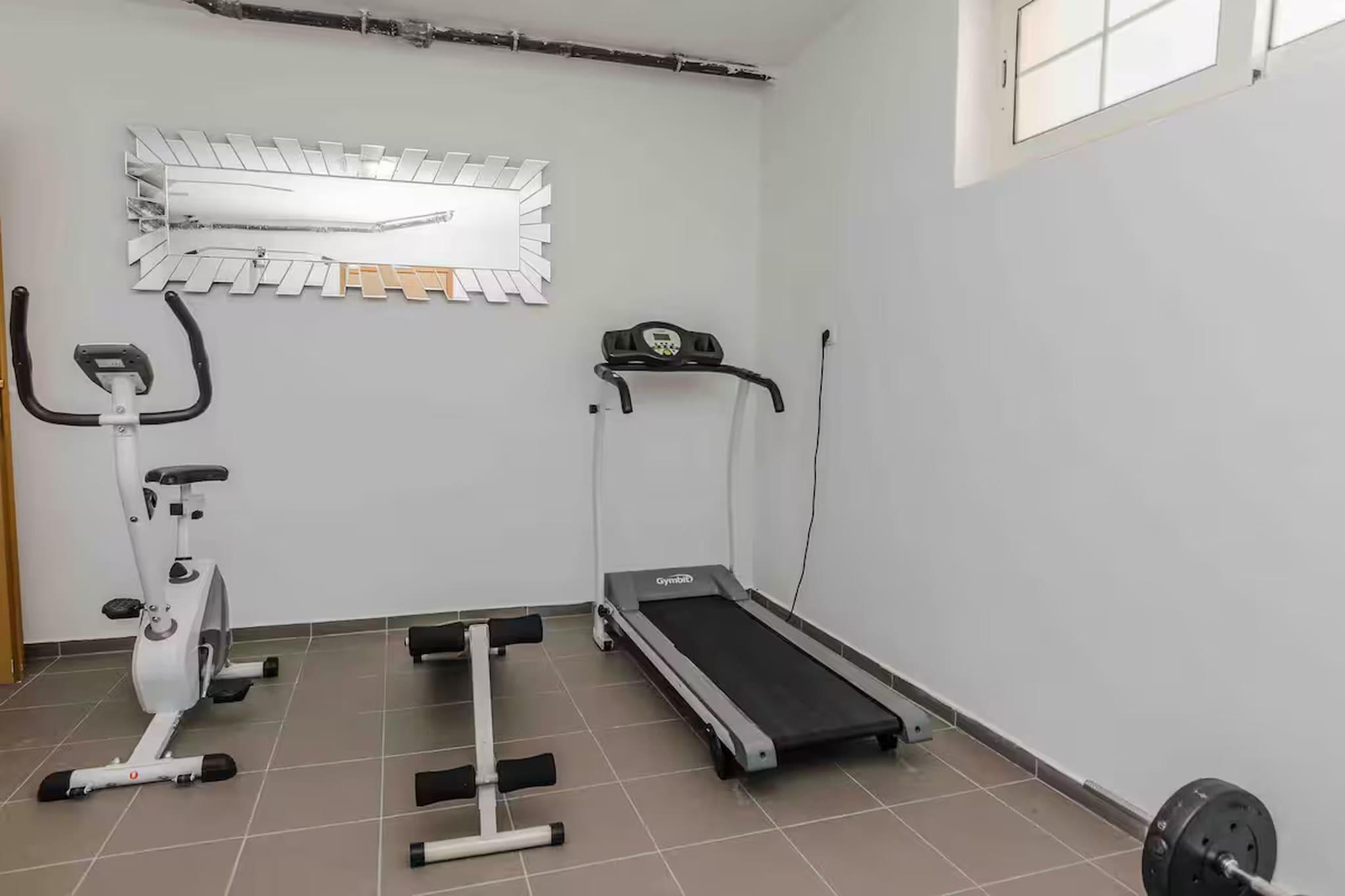 Öppet kök(vattenkokare, kaffebryggare, diskmaskin), ardags- och matrum(bäddsoffa, TV(kabel, platt-tv), matbord, netflix), sovrum(dubbelsäng, spjälsäng), sovrum(dubbelsäng), sovrum(dubbelsäng), sovrum(dubbelsäng), badrum(badkar, dusch, handfat, toalett , ), badrum(dusch, handfat, toalett , hårfön), gym, Tillgång till Internet, Första hjälpen, torktumlare, badtunna, tvättmaskin, balkong, värme, luftkonditionering, terrass, trädgård, trädgårdsmöbler, grill, parkering, swimmingpool(privat, utanför), strykjärn, crib(free),