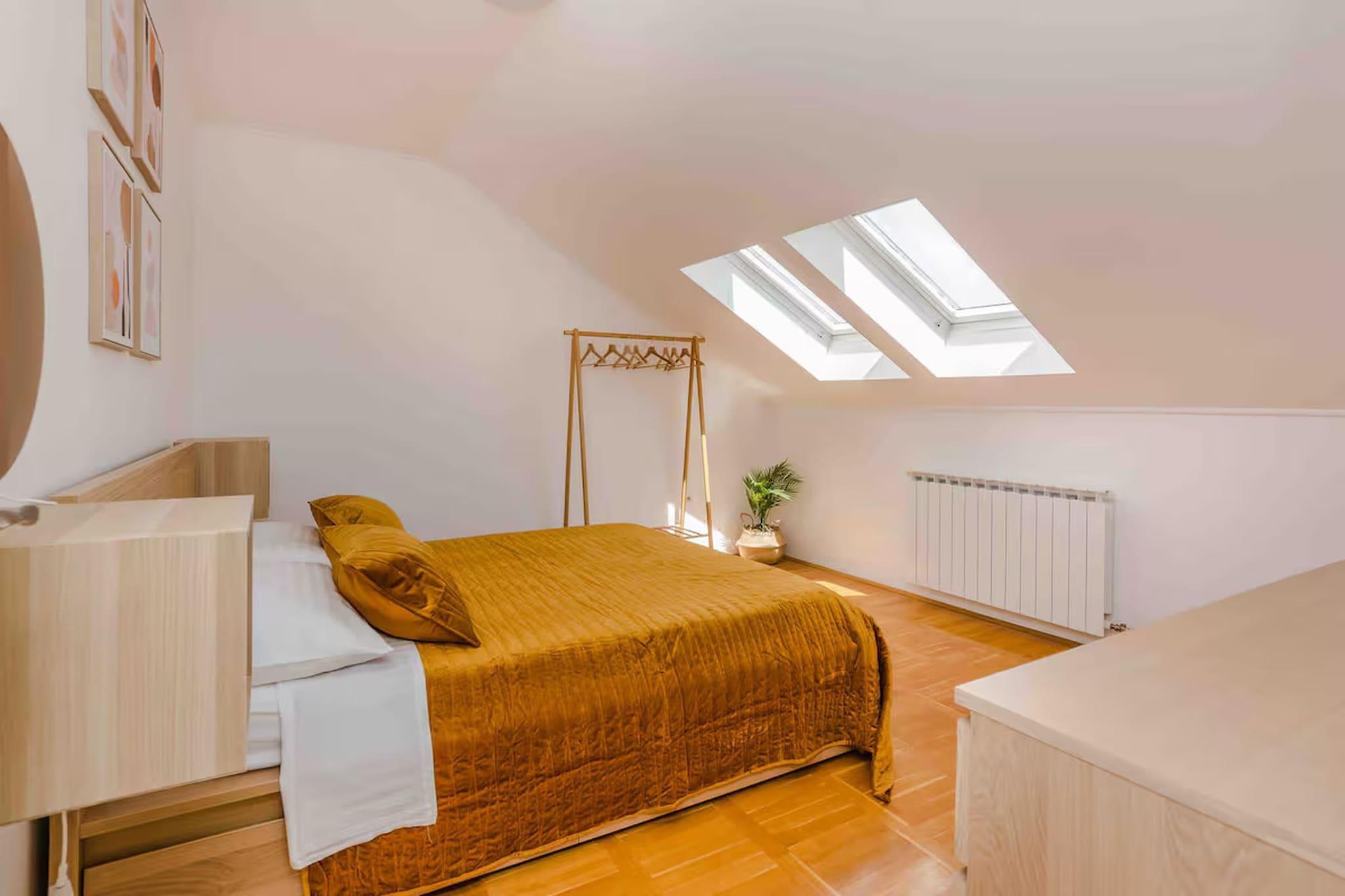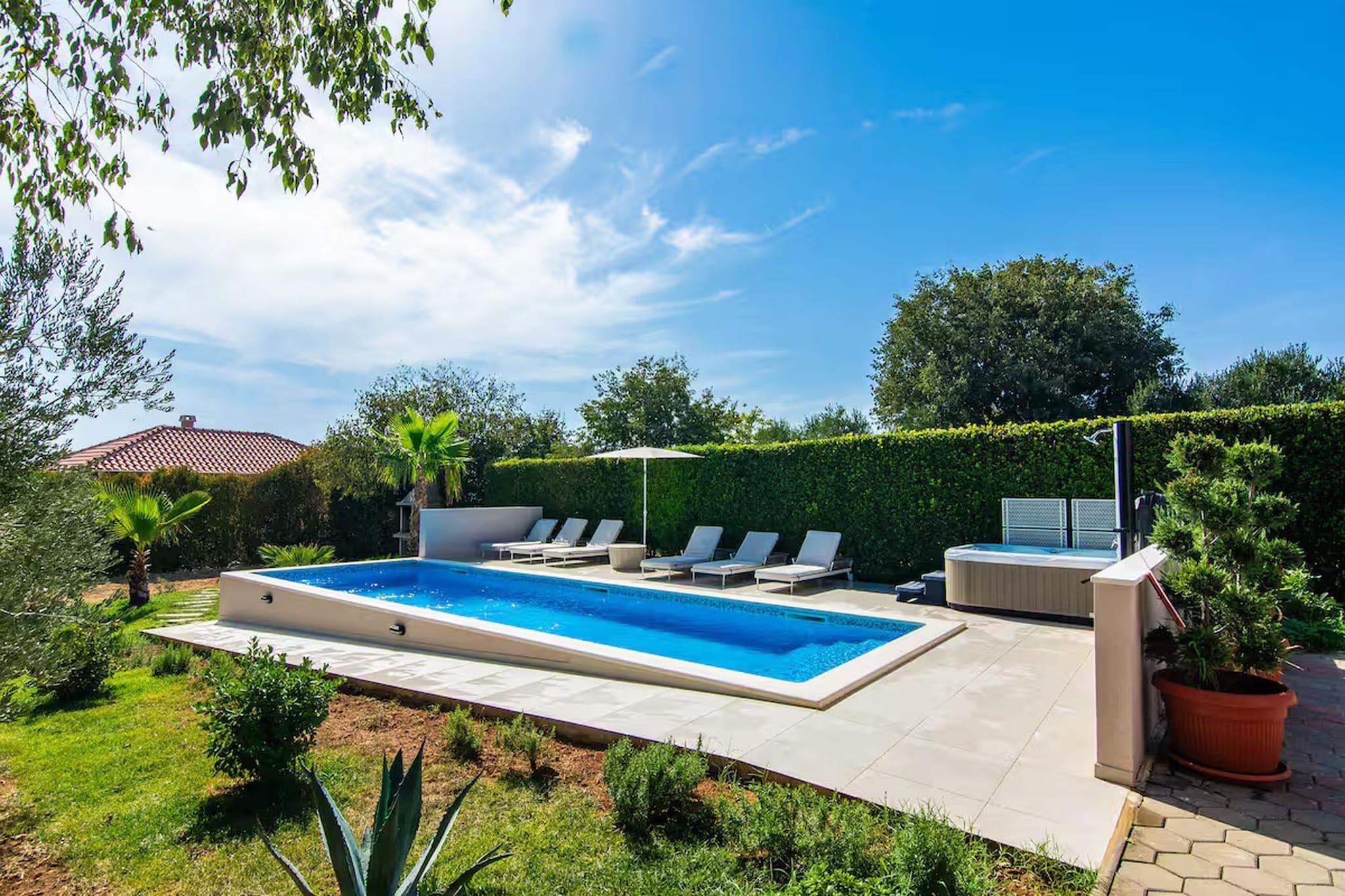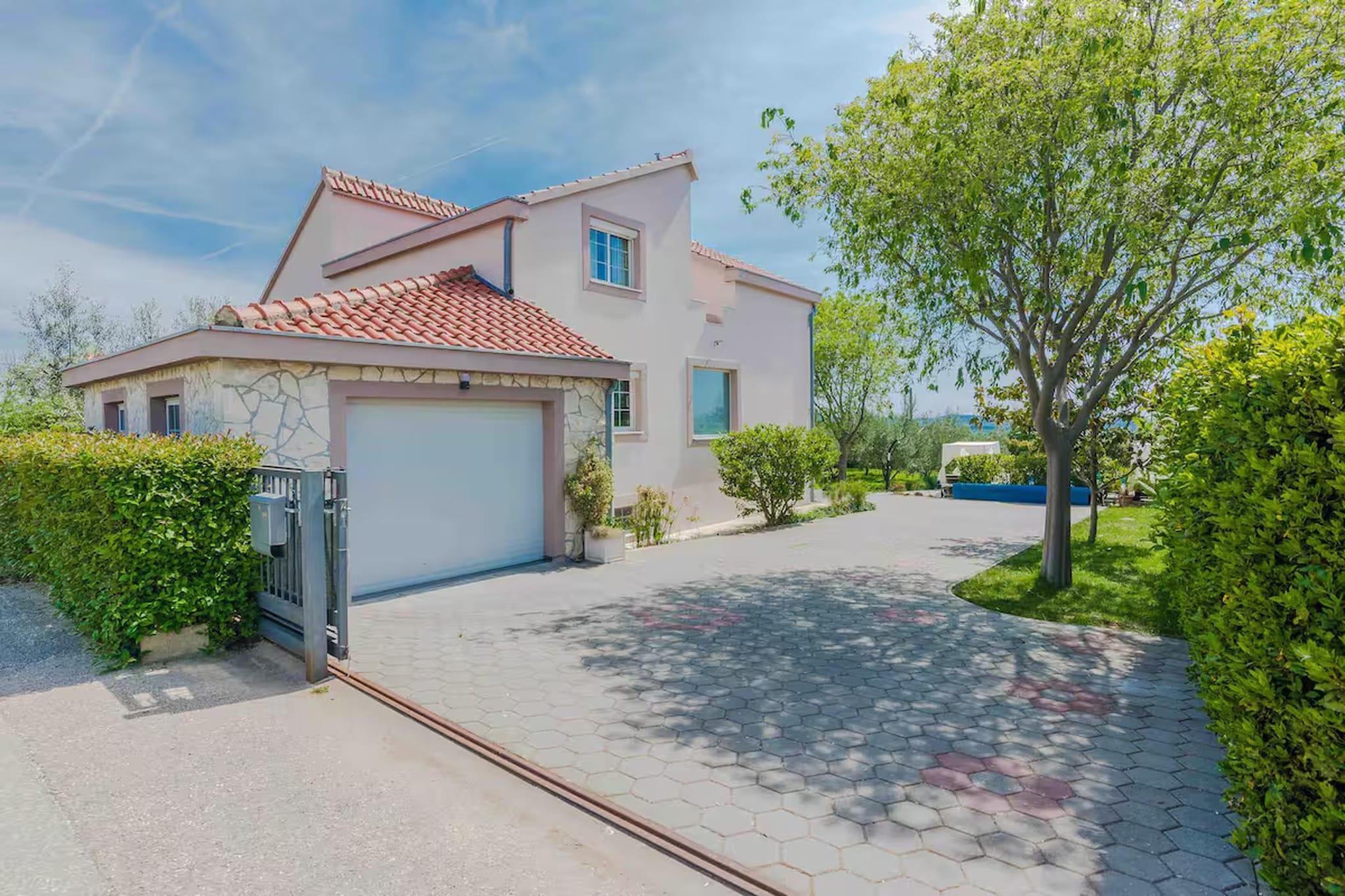 Omgiven av olivlundar och öppna medelhavslandskap erbjuder denna rymliga privata villa i Zemunik Gornji en fridfull lantlig tillflyktsort för upp till tio gäster som söker avkoppling och avskildhet i den dalmatiska regionen. Perfekt för familjer eller grupper som reser tillsammans, kombinerar fastigheten modern inomhuskomfort med generöst utomhusutrymme samtidigt som den ligger inom bekvämt köravstånd från Adriatiska kusten och närliggande historiska städer. Inuti har villan fyra separata sovrum arrangerade för att rymma flexibla gruppboenden, inklusive tre sovrum möblerade med queen size-sängar och ett extra sovrum med två enkelsängar. Det ljusa öppna vardagsrummet erbjuder bekväma bäddsoffor och en TV för avkopplande kvällar inomhus efter tid utomhus. Ett fullt utrustat kök med nödvändiga köksredskap, vilket gör att gästerna enkelt kan laga mat under hela sin vistelse. Två helt moderna badrum stöder vardaglig bekvämlighet, medan WiFi, AC, tvättstuga och en dedikerad arbetsyta ger ytterligare praktiska fördelar för längre besök. Gästerna kan njuta av en rymlig privat terrass med utsikt över den anlagda trädgården och poolområdet, vilket erbjuder en idealisk miljö för gemensamma måltider eller lugn avkoppling i den friska kustluften. En privat pool, bubbelpool, bastu och gym på plats låter gästerna varva ner under dagen, medan fritidsfaciliteter som biljard, dart och bordsfotboll erbjuder inomhusunderhållningsalternativ för gruppvistelser. Denna villa ligger inom bekvämt bilavstånd från Zadars stränder, marinor och kulturella landmärken och erbjuder året runt möjligheter till kustutflykter, naturvandringar och att utforska Kroatiens natursköna dalmatiska landsbygd.