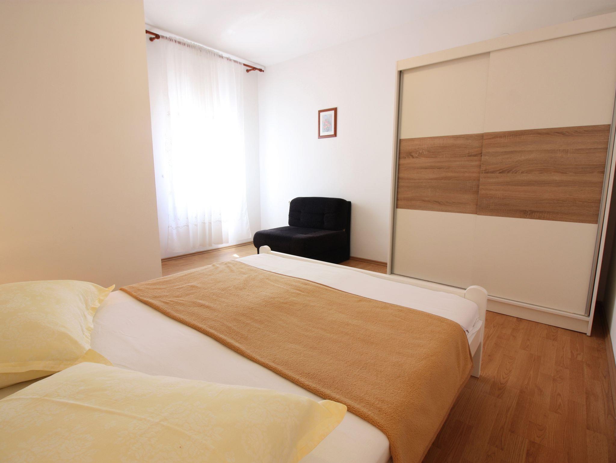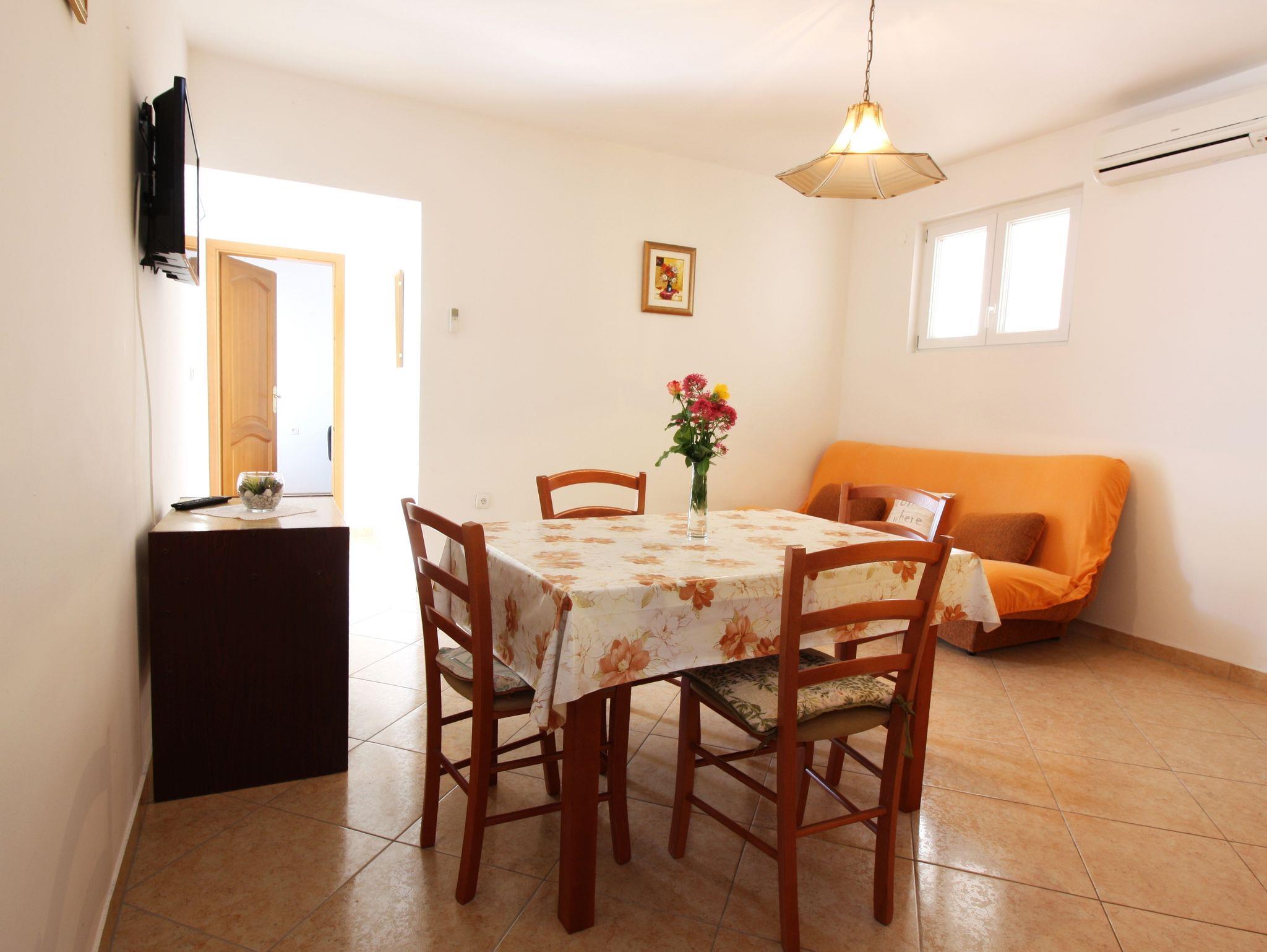 Ferienwohnung bietet Platz für 5 Gäste. Die Betten sind in Schlafzimmern, die es 1 gibt, und in Wohnzimmer, innerhalb einer Gesamtfläche von 37m2, angeordnet. Die Gäste haben eine eigene Terrasse zur Verfügung, auf der sie in warmen Sommernächten genießen können. Es ist erlaubt, Speisen auf dem Gemeinschafts-Grill vorzubereiten. IM PREIS INBEGRIFFEN: Kurtaxe, Endreinigung, Klimatisierung, Parkplatz, Internet, Wäschewaschen, Bootsanlegeplatz, Bügeleisen, Bügelbrett, Föhn. Die Verfügbarkeit zusätzlicher Dienstleistungen in Ihrem reservierten Termin und die Preise derselben (falls nicht aufgeführt) müssen im Voraus überprüft werden. Zusätzliche Dienstleistungen die in der Zahlungsaufforderung nicht aufgeführt sind werden direkt beim Vermieter bezahlt, angenommen der Gast nutzt auch diese. Ermäßigung auf den Grundpreis: Gratistag 14=13 (bei einem Aufenthalt von 14 Tagen oder mehr erhalten Sie einen Gratistag für den Aufenthalt bis 31.12.26).