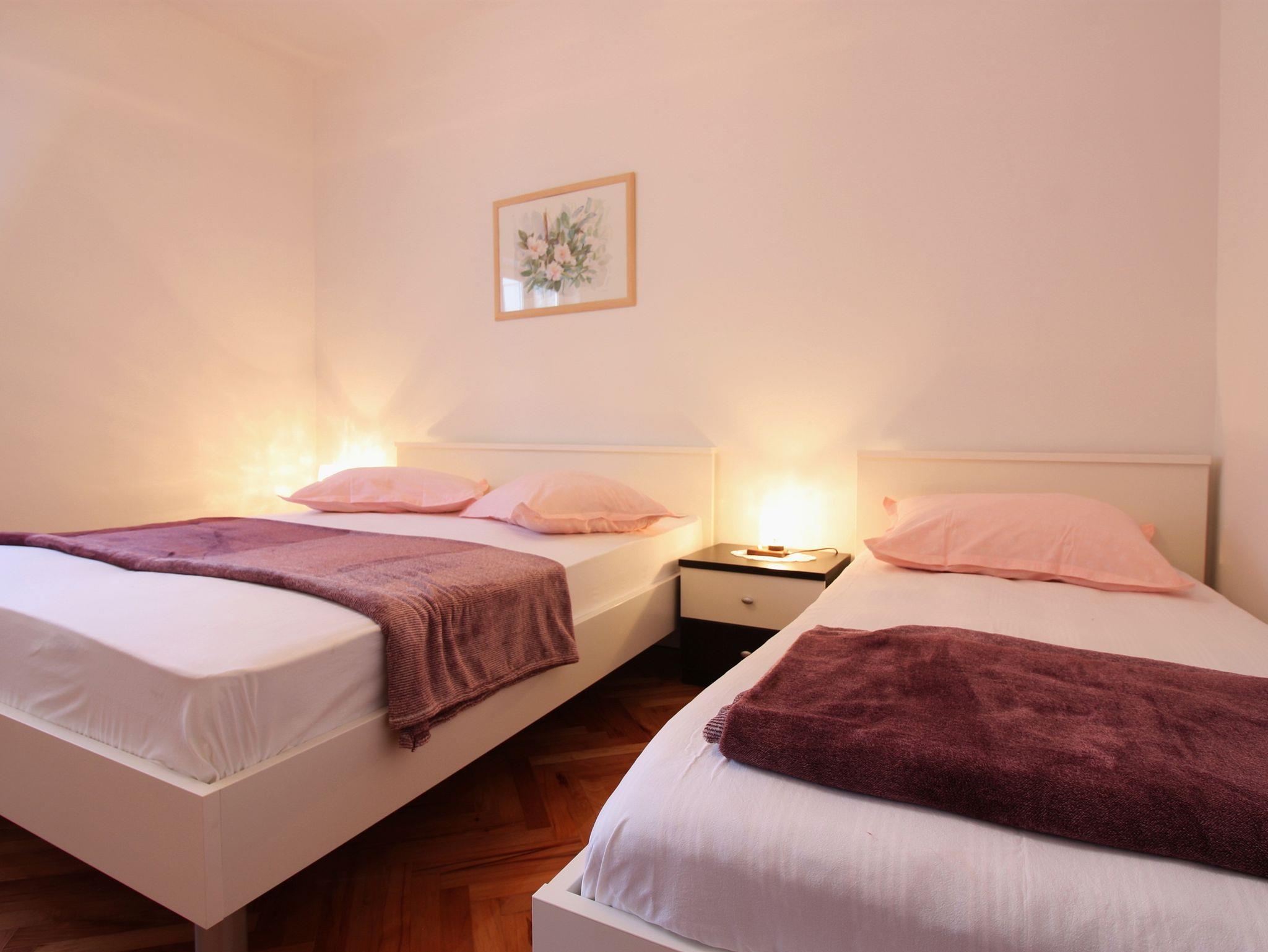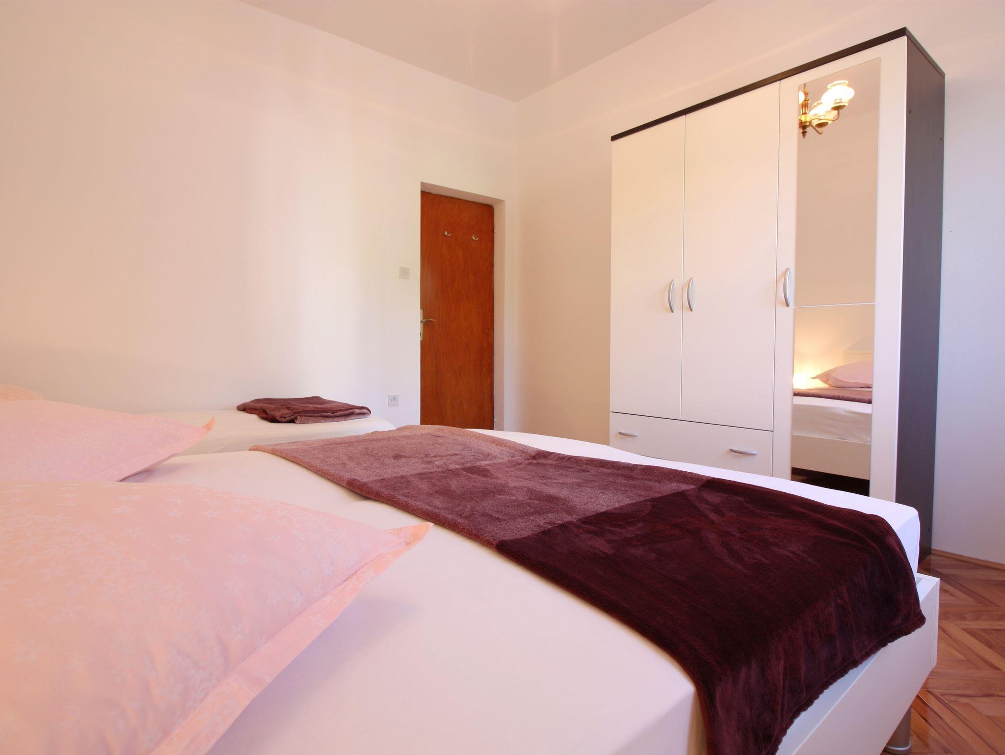 Ferienwohnung bietet Platz für 2 Gäste. Die Betten sind in Schlafzimmern, die es 1 gibt, innerhalb einer Gesamtfläche von 28m2, angeordnet. Die Gäste haben eine eigene Terrasse zur Verfügung, auf der sie in warmen Sommernächten genießen können. Es ist erlaubt, Speisen auf dem Gemeinschafts-Grill vorzubereiten. IM PREIS INBEGRIFFEN: Kurtaxe, Endreinigung, Klimatisierung, Parkplatz, Internet, Wäschewaschen, Bootsanlegeplatz, Bügeleisen, Bügelbrett, Föhn. Die Verfügbarkeit zusätzlicher Dienstleistungen in Ihrem reservierten Termin und die Preise derselben (falls nicht aufgeführt) müssen im Voraus überprüft werden. Zusätzliche Dienstleistungen die in der Zahlungsaufforderung nicht aufgeführt sind werden direkt beim Vermieter bezahlt, angenommen der Gast nutzt auch diese. Ermäßigung auf den Grundpreis: Gratistag 14=13 (bei einem Aufenthalt von 14 Tagen oder mehr erhalten Sie einen Gratistag für den Aufenthalt bis 31.12.26).