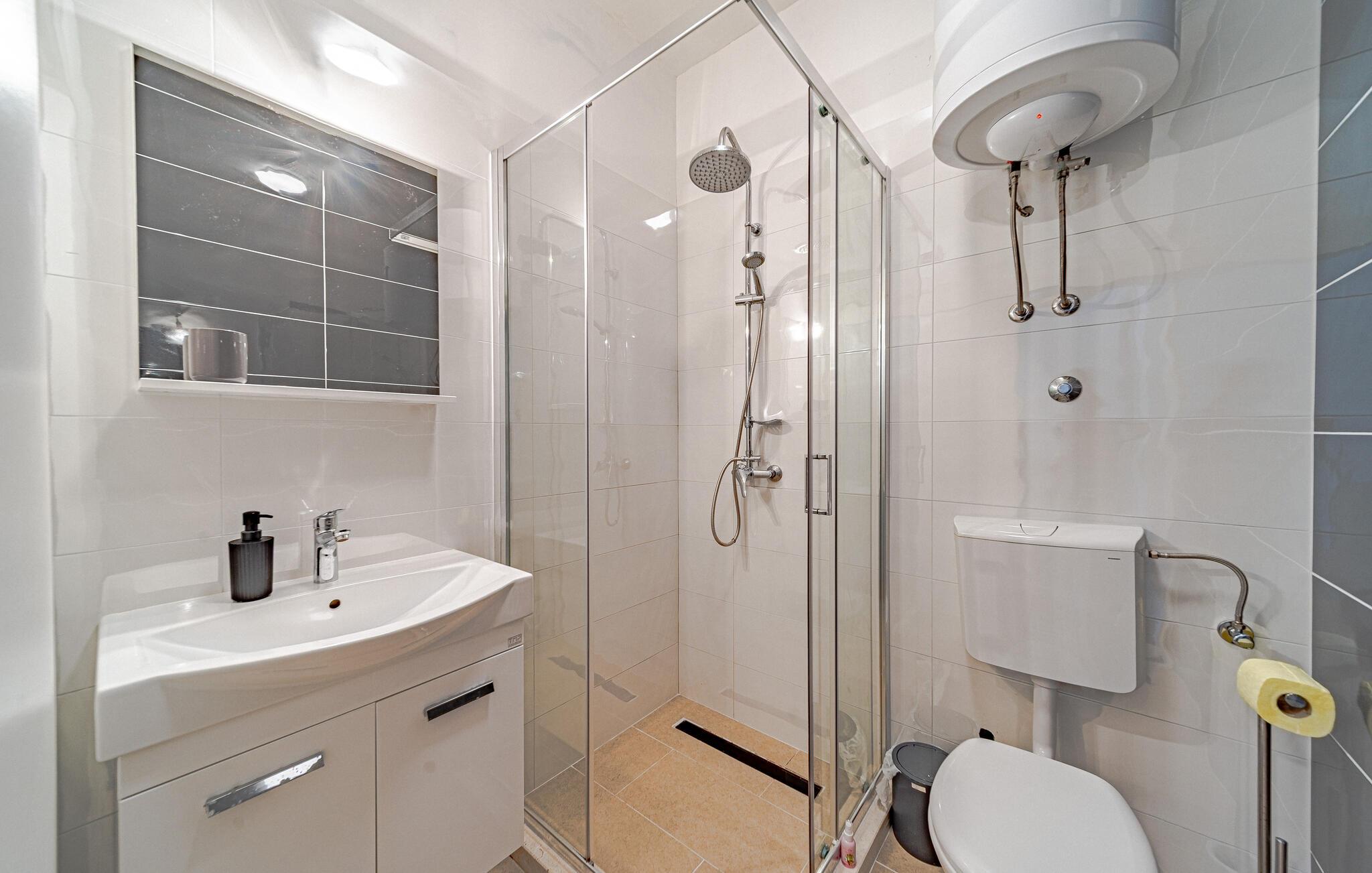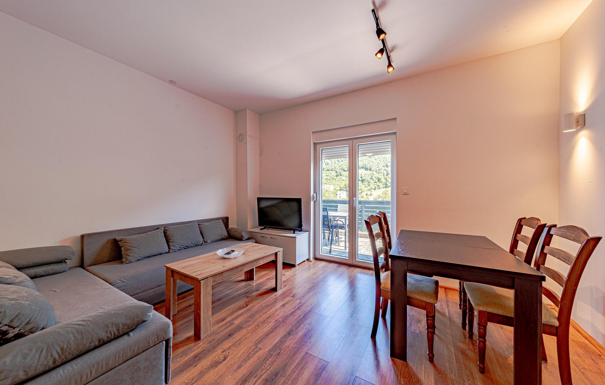 Välkommen till denna moderna semesterlägenhet, som bara ligger en promenad från det turkosa vattnet i den vackra kuststaden uljana och inbjuder dig att tillbringa soliga dagar med dina nära och kära. Känn er som hemma som ett par, som en familj eller med vänner medan ni förbereder läckra måltider i det öppna köket. Planera dina aktiviteter vid det inbjudande matbordet och gör dig bekväm i soffan på kvällen med ett brädspel eller en bra bok.