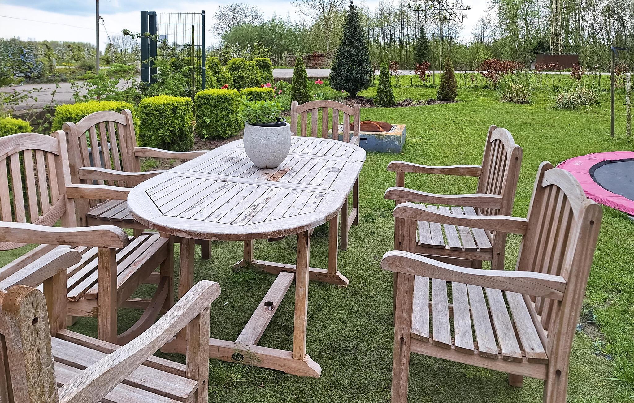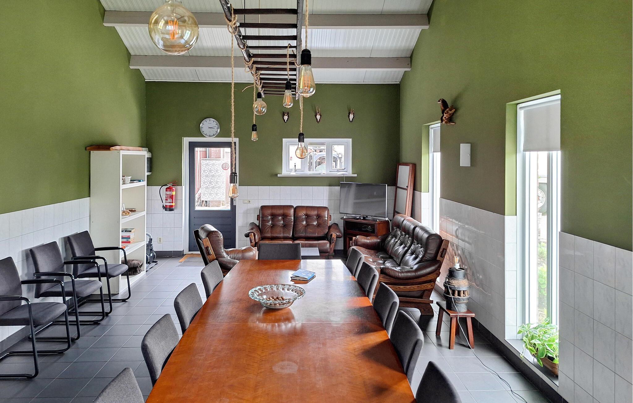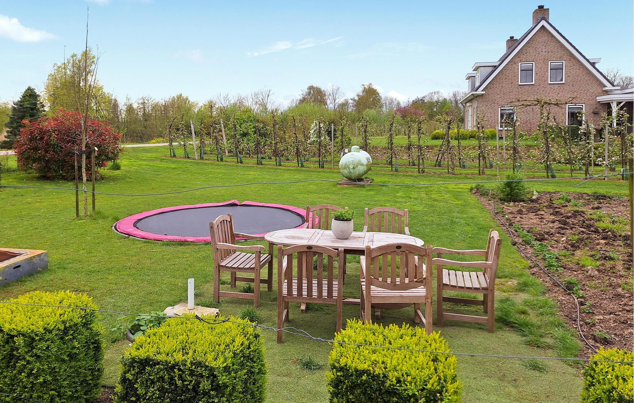 Denna vackra stora fastighet består av två byggnader. I huvudbyggnaden finns åtta sovrum, ett vardagsrum, ett badrum och ett kök. I annexet, 15 meter från huvudbyggnaden, finns ytterligare ett sovrum, två badrum och ett kök. Fastigheten renoverades 2021 och ligger mitt i en äppel- och päronodling, på en gårds mark. Här finns tillräckligt med utrymme för stora grupper som kan njuta av en avkopplande och varierad semester på den avkopplande nederländska landsbygden. Vi hyr inte ut till grupper med ungdomar.