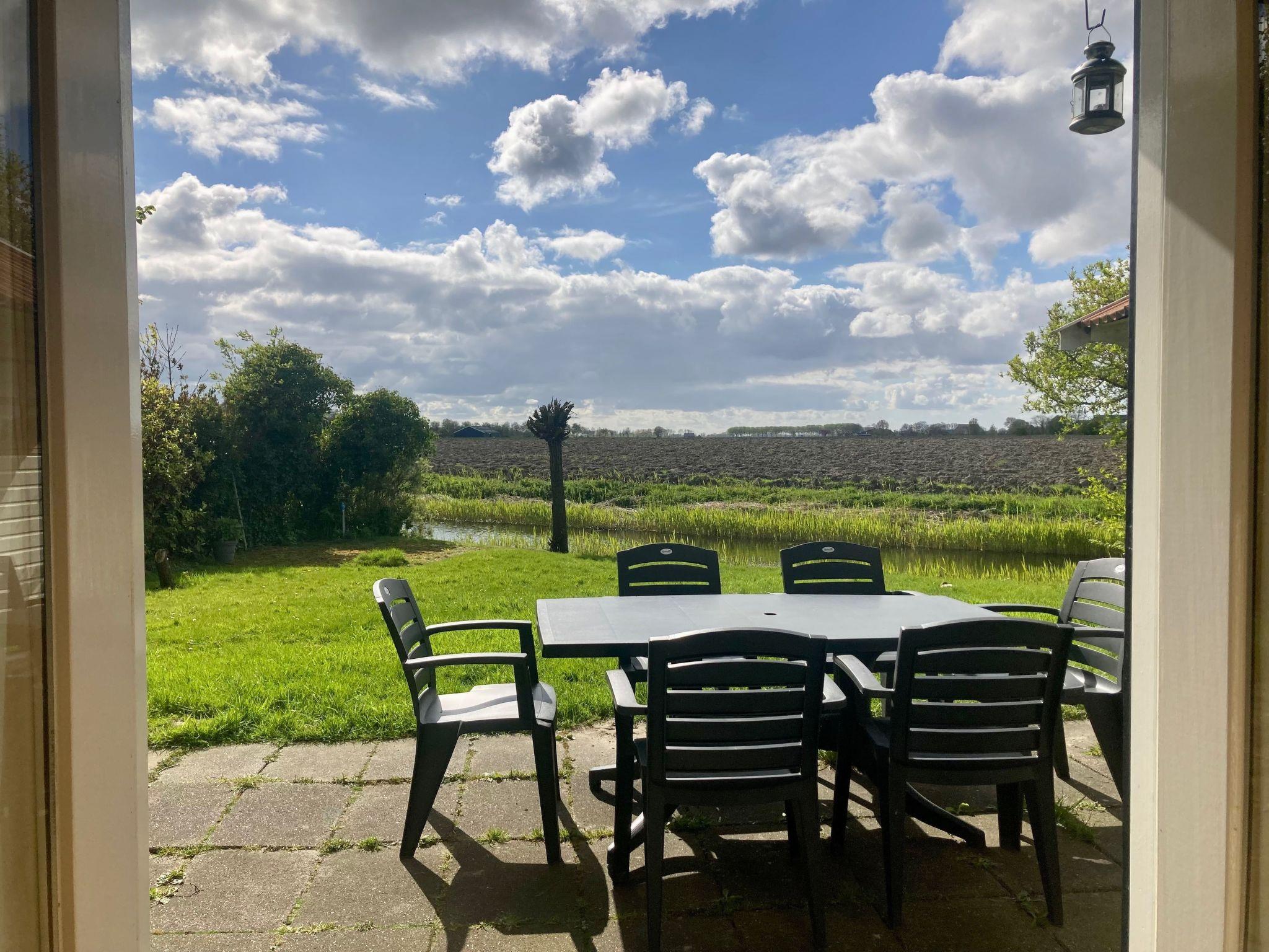 The property has its own car park with enough space for two cars. The terrace is not visible from outside due to the greenery. The view is of the Frisian fields.