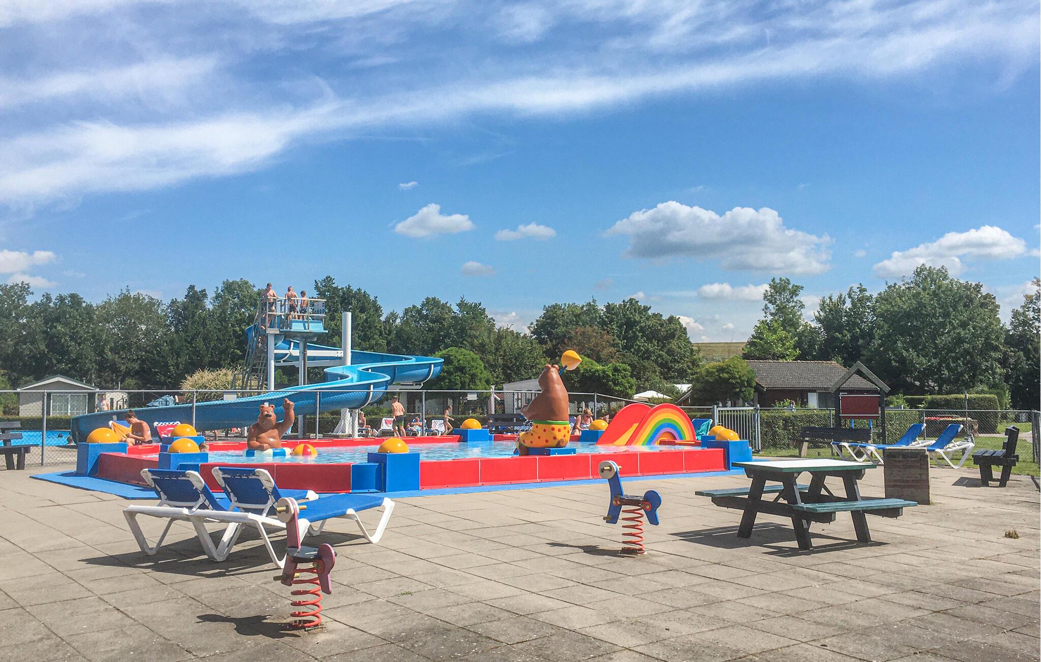 Huset ligger i ett lugnt läge, omgivet av natur, i semesterparken Scheldeoord. En kort promenad tar dig till den intilliggande semesterparken med många faciliteter såsom en stormarknad och restaurang. Biljetter finns tillgängliga i semesterhuset så att hela familjen kan använda semesterparkens faciliteter utan kostnad. I parken kan barnen leka på de olika lekplatserna och ha kul på hoppborgen. Under sommarmånaderna är den uppvärmda utomhuspoolen med vattenrutschbana och separat barnpool med lekutrustning öppen. Det är också möjligt att boka tennisbanan utan extra kostnad. Under skollovet kan barnen delta i aktiviteter som anordnas av underhållningsteamet. Stranden vid Westerschelde ligger bara några minuters promenad från semesterhuset. Det finns ett brasserie på stranden där du kan ta en drink eller äta en utsökt måltid. Vid dåligt väder erbjuder inomhuspoolen massor av simglädje. Barnen kan roa sig på den lilla lekplatsen inomhus. Den angränsande semesterparken och de faciliteter som nämns är öppna från slutet av mars till slutet av oktober.