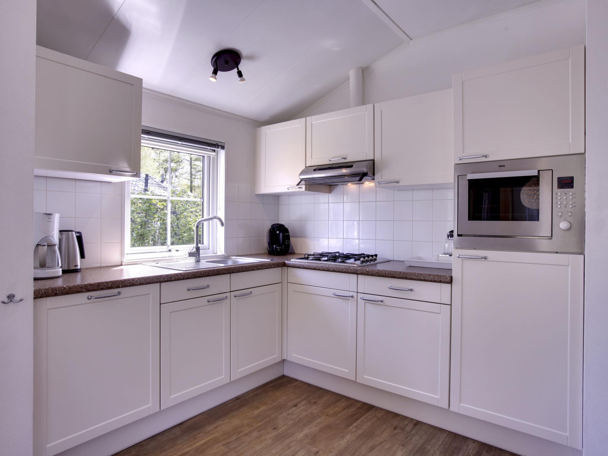 "4-persoons bos", 3-room chalet 55 m2. Comfortable furnishings: entrance hall. Living/dining room with dining table, flat screen and CD-player. Exit to the terrace. 2 double bedrooms, each room with 2 beds. Open kitchen (4 hot plates, dishwasher, electric coffee machine, combination microwave). Shower/WC. Heating. Terrace. Terrace furniture. Facilities: Internet (WiFi, free). Please note: non-smoking house. Smoke alarm. Pets on request.