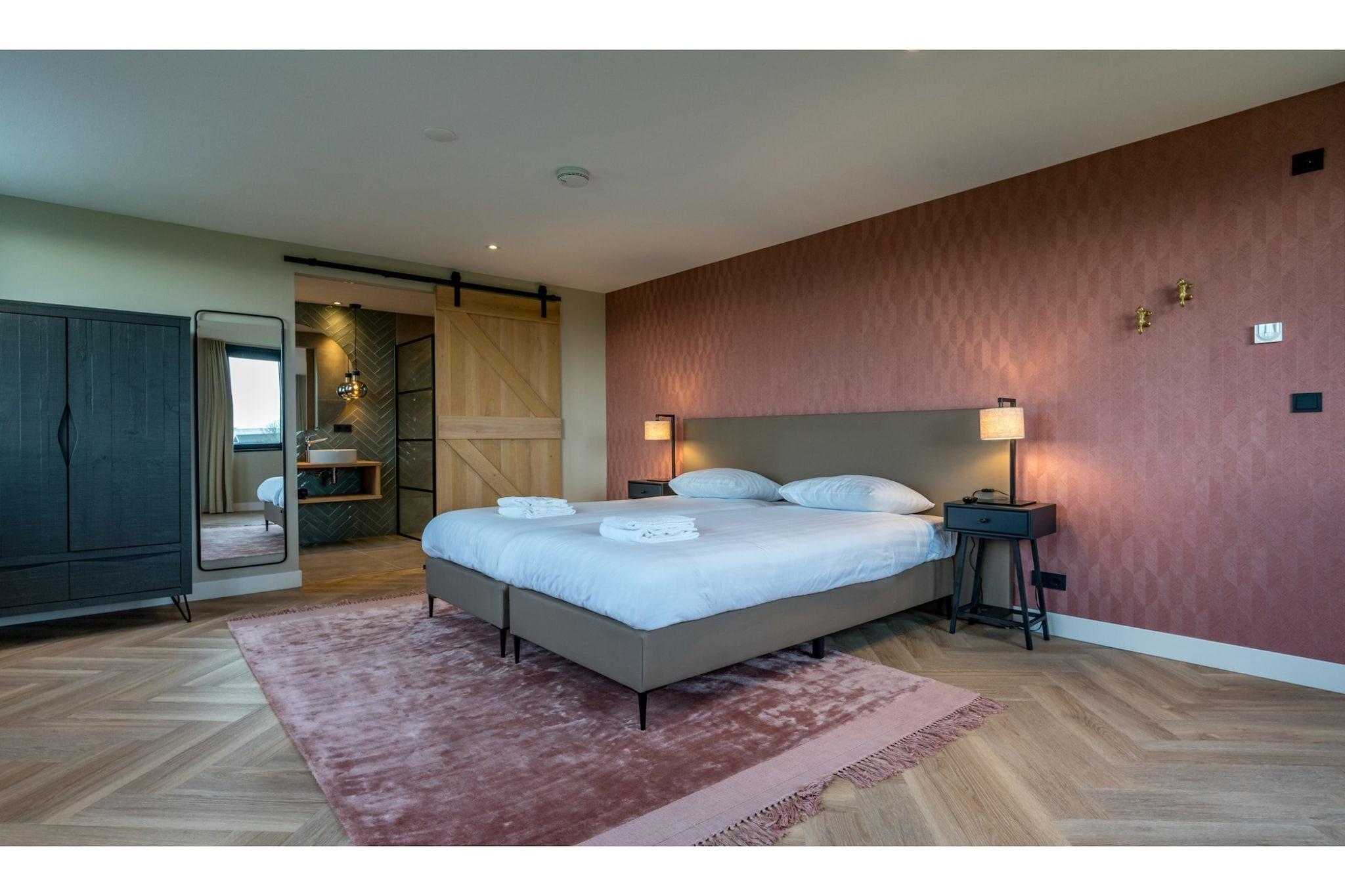 Denna lyxvilla ligger i norra delen av den största Vadeön Texel med sina breda sandstränder. Från den stora terrassen har du utsikt över det vidsträckta Krimbos. Perfekt för familjer. De Cocksdorps centrum ligger 5 km bort med olika butiker och restauranger. Ön Texel erbjuder många cykel- och vandringsleder. Alla sevärdheter, aktiviteter och byar med terrasser och butiker ligger på kort avstånd från varandra. Ta med barnen till badparadiset Caluna eller till sälarna vid Ecomare, och glöm inte att stanna till för en drink på terrassen i Den Burg eller De Koog. För vandrare rekommenderas naturreservatet "de Slufter" starkt, eftersom naturligtvis är en unik guidad lera promenad. Villan har ett rymligt och lyxigt kök i öppen planlösning. Det ljusa vardagsrummet med matbord erbjuder komfort för en stor grupp och det finns en tvätt- och torkkombination i allrummet. På bottenvåningen finns 1 sovrum med eget badrum. På första våningen finns ytterligare 2 sovrum med eget badrum. Du kan parkera din bil vid villan. Sängarna är bäddade vid ankomst. Om du använder tältsängen måste du ta med egna lakan och filtar. Missa inte det och boka en semester på denna fantastiska ö!