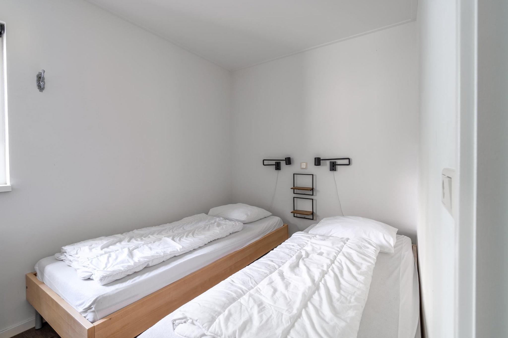 Denna charmigt möblerade bungalow rymmer 6 personer och erbjuder gott om avskildhet med en helt inhägnad trädgård, belägen på en semesterpark nära skogen. Det underbart rymliga vardagsrummet har en sittgrupp med TV och en matplats med matbord för 6 personer. Stora fönster öppnar sig direkt mot den rymliga trädgården. Det prydliga öppna köket är fullt utrustat med ugn, mikrovågsugn, diskmaskin och olika kaffebryggare. Det finns 4 sovrum, varav 3 har 2 enkelsängar och ett handfat, medan det andra har en dubbelsäng med resårmadrass och ett handfat. Det finns 2 välskötta badrum, ett med badkar (med dusch i badkaret), toalett och handfat. Det andra badrummet har en duschkabin med regndusch, toalett och handfat. Altandörrar öppnar sig direkt mot vardagsrummet, som är söderläge och helt omgivet av träd. Det finns flera sittgrupper, inklusive en lounge med soffa där du kan njuta av naturen fullt ut. För massor av skoj finns det en studsmatta och en badmintonplan. Trädgården är helt inhägnad och trädgårdsmöbler och ett parasoll finns. Det finns privat parkering för två bilar. En gratis laddstation för din elbil finns tillgänglig. Gratis Wi-Fi. Rökning är inte tillåten. Barnmöbler finns tillgängliga på begäran och mot en avgift. En tvättmaskin finns i ett av badrummen. Täckt cykelförråd med plats för sex cyklar och ett eluttag för laddning av elcyklar finns tillgängligt. Bungalowen ligger på en tomt på över 600 m².