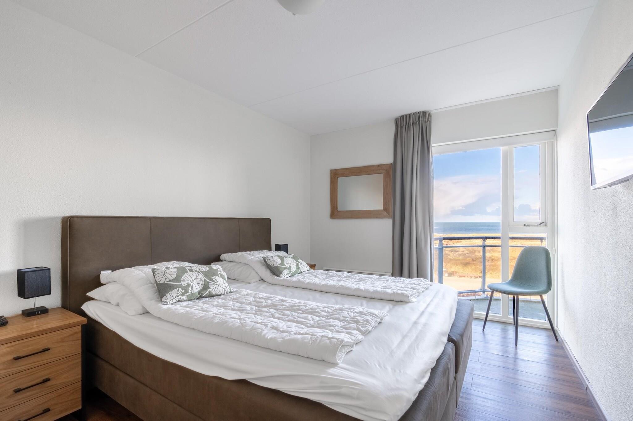 Modernt möblerad lägenhet för 2 personer på andra våningen med balkong med utsikt över Nordsjön från vardagsrummet och sovrummet. Vardagsrummet har en sittgrupp, dekorativ öppen spis, smart-TV, matplats och matbord för 4 personer. Köket i öppen planlösning är utrustat med diskmaskin, kombinerad mikrovågsugn, kyl-frys och olika kaffemaskiner. Det finns ett sovrum med en dubbelsäng med boxmadrass. Badrummet har en rymlig duschkabin och dubbla handfat. Toaletten är separat. Balkongen erbjuder en vacker panoramautsikt över Nordsjön. Trädgårdsmöbler finns. En tvättstuga finns tillgänglig i komplexet mot en avgift. Barnmöbler finns tillgängliga på begäran mot en avgift. Gratis Wi-Fi finns tillgängligt. Rökning är inte tillåten. En parkeringsplats finns tillgänglig på plats per boende.