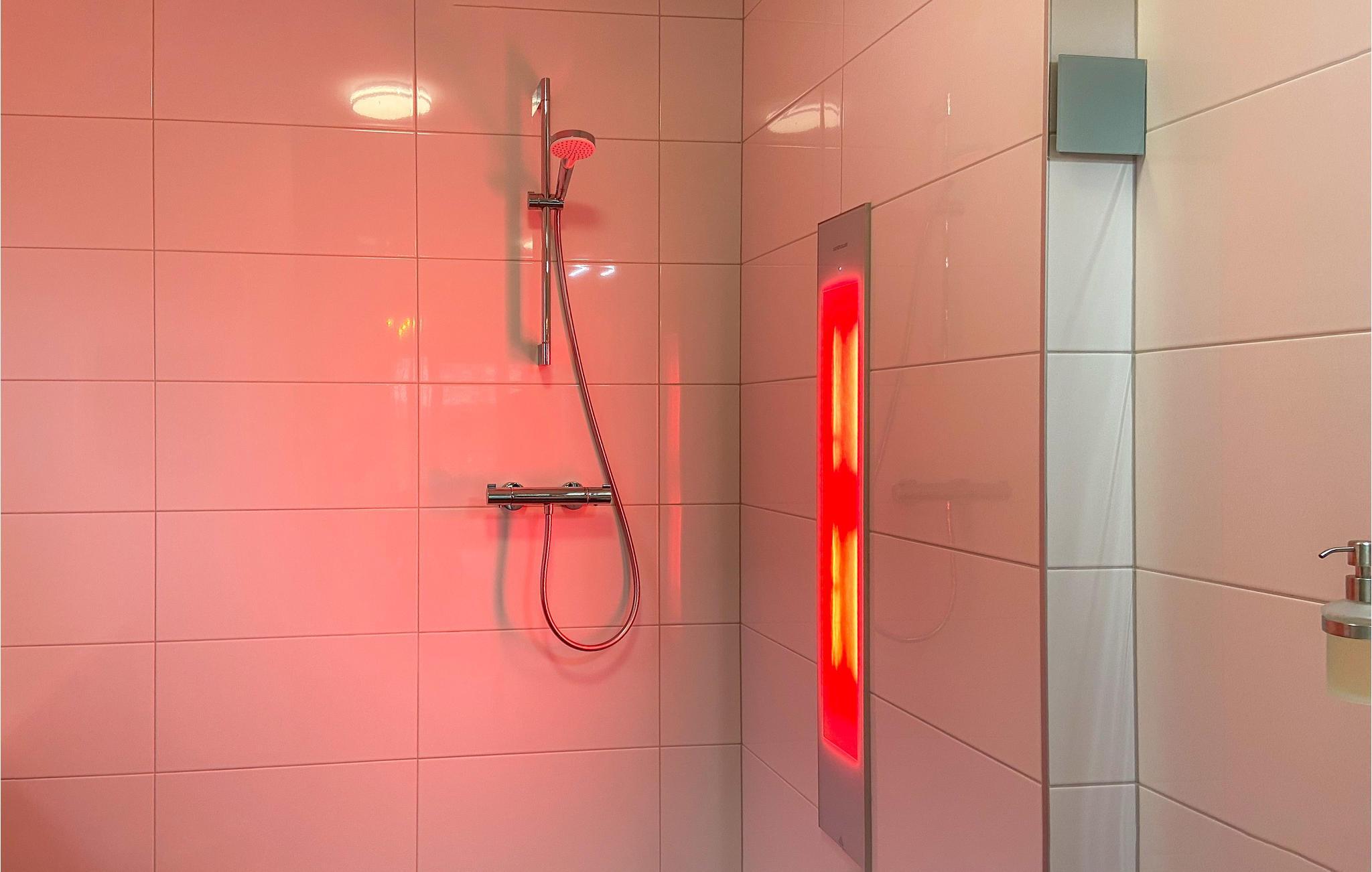 Badrum (nr. 2) - WC: Varmt och kallt vatten. Dusch