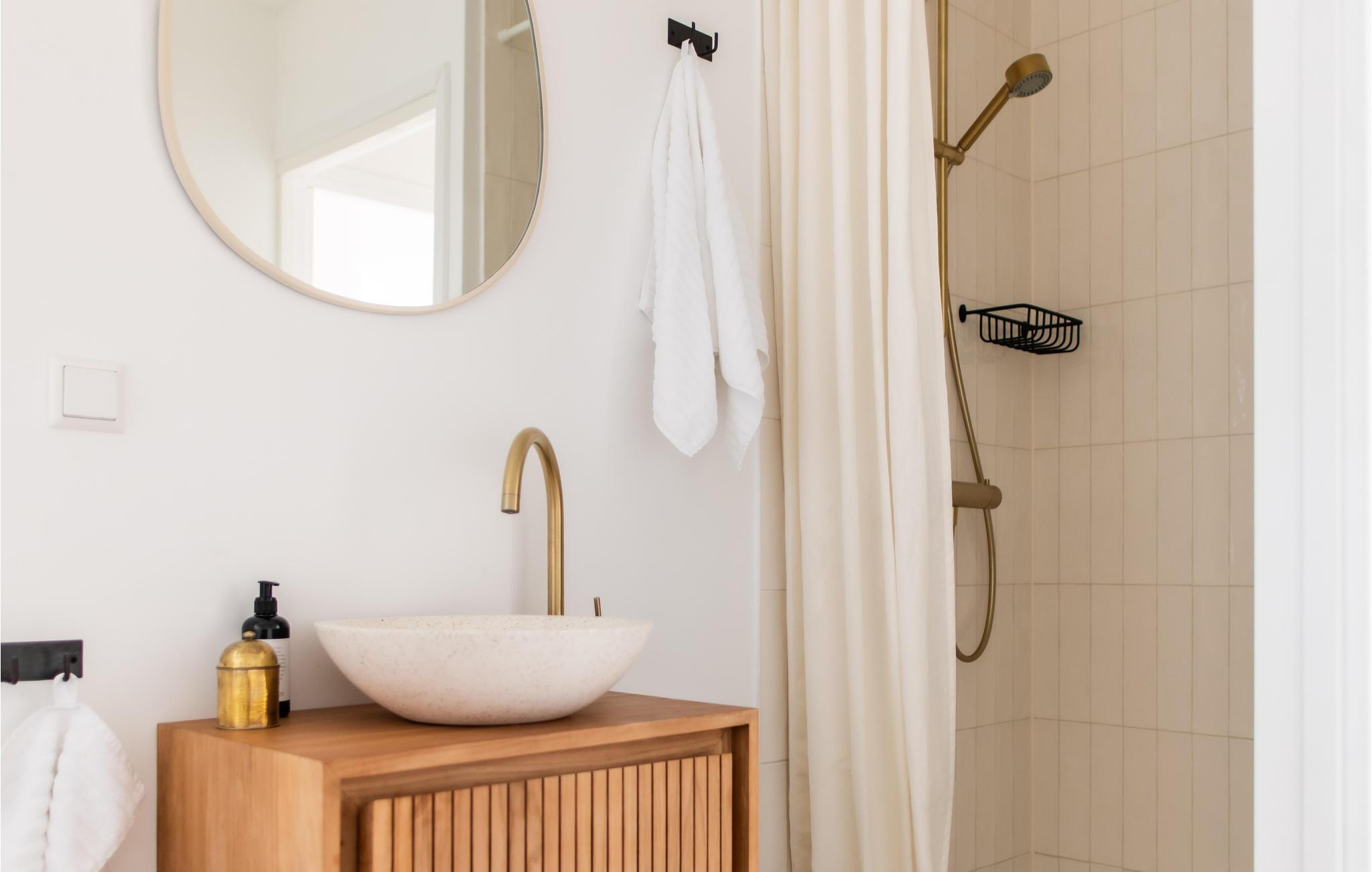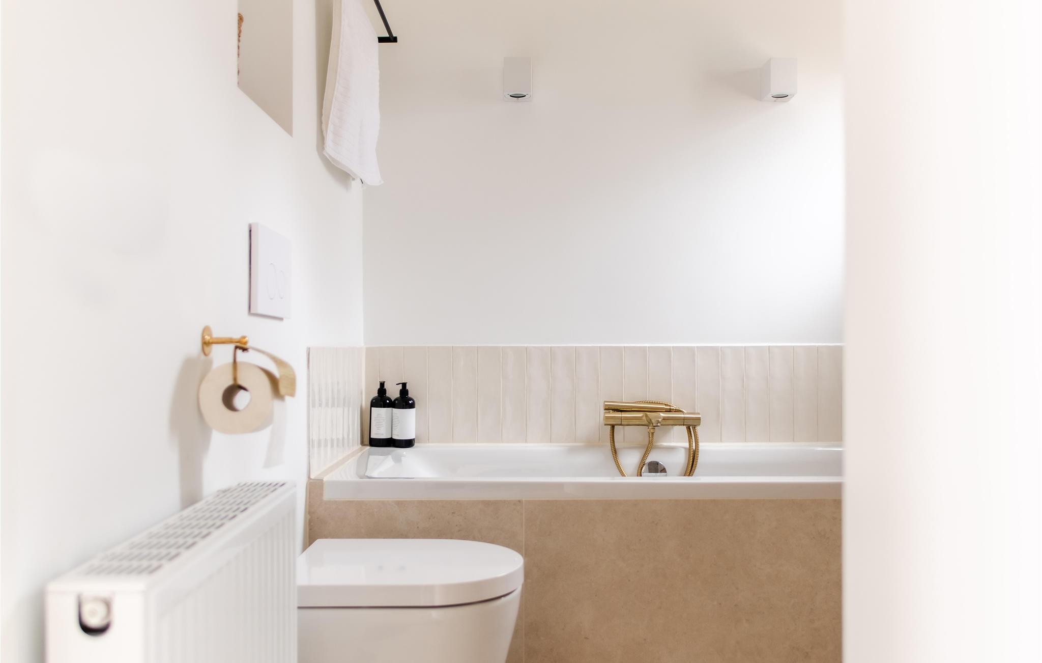 Badrum (nr. 1) - WC: Varmt och kallt vatten. Dusch och badkar