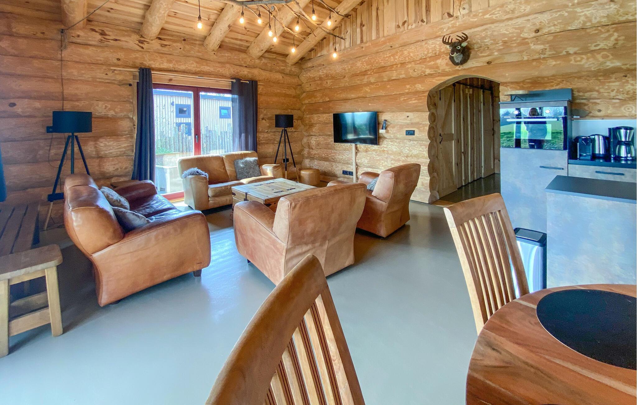Ditt mysiga semesterhus i Den Oever nära Ijsselmeer, den största sjön i Nederländerna, erbjuder dig en idealisk paus från vardagen. Med sin naturliga konstruktion av massiva timmerstockar smälter semesterhuset harmoniskt in i omgivningen och skapar en varm, inbjudande atmosfär. Njut av din vistelse i denna unika bostad och lämna vardagens stress och jäkt bakom dig. Interiören imponerar med sin rustika elegans och mysiga atmosfär. Vardagsrummet med sina bekväma soffor och varma ljus inbjuder till avkoppling, oavsett om det är med en god bok eller en mysig filmkväll. Vid matbordet i trä kan ni avnjuta hemlagade måltider som enkelt tillagas i det moderna köket. Den öppna planlösningen och de stora fönstren ger gott om naturligt ljus och en underbar utsikt över de gröna omgivningarna.
