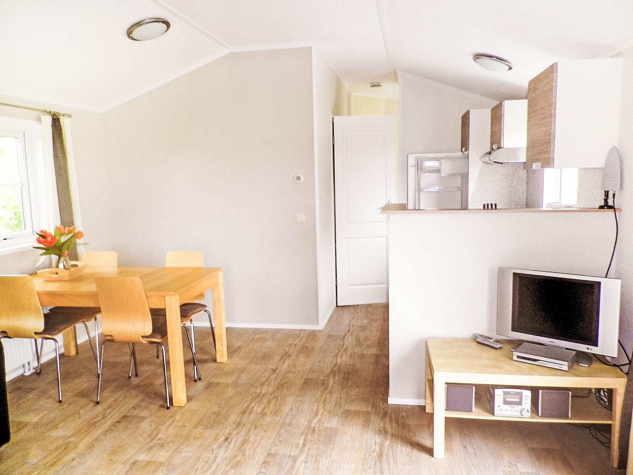 "Den Oever", 3-room chalet 52 m2. Comfortable and tasteful furnishings: open living/dining room with dining nook and TV. Exit to the garden, to the terrace. 1 room with 1 french bed (1 x 140 cm, length 200 cm). 1 room with 2 beds. Open kitchen (4 hot plates, dishwasher, kettle, microwave, electric coffee machine). Shower/WC. Heating. Terrace. Terrace furniture. Facilities: Internet (WiFi, free). Parking at the house. Please note: maximum 1 pet/ dog allowed. Smoke alarm. Bookings accepted for holiday purposes only.