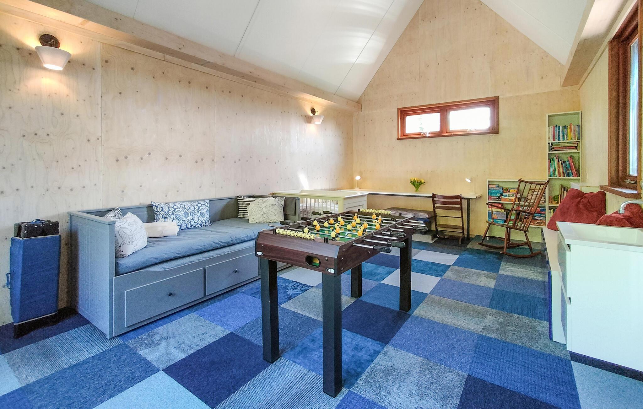 Detta rymliga hus välkomnar dig med varma trägolv, smakfullt inredda rum och en fridfull atmosfär omgiven av vidsträckta hästhagar och inte långt från kusten. Om du vill kan du tända den vedeldade kaminen och ta en bok från hyllan. Börja kvällen med ett gott samtal och tillaga läckra rätter i det moderna köket. Utmana dina medresenärer till ett parti bordsfotboll och skåla sedan för segern. Huset erbjuder gott om utrymme och mysiga retreater.