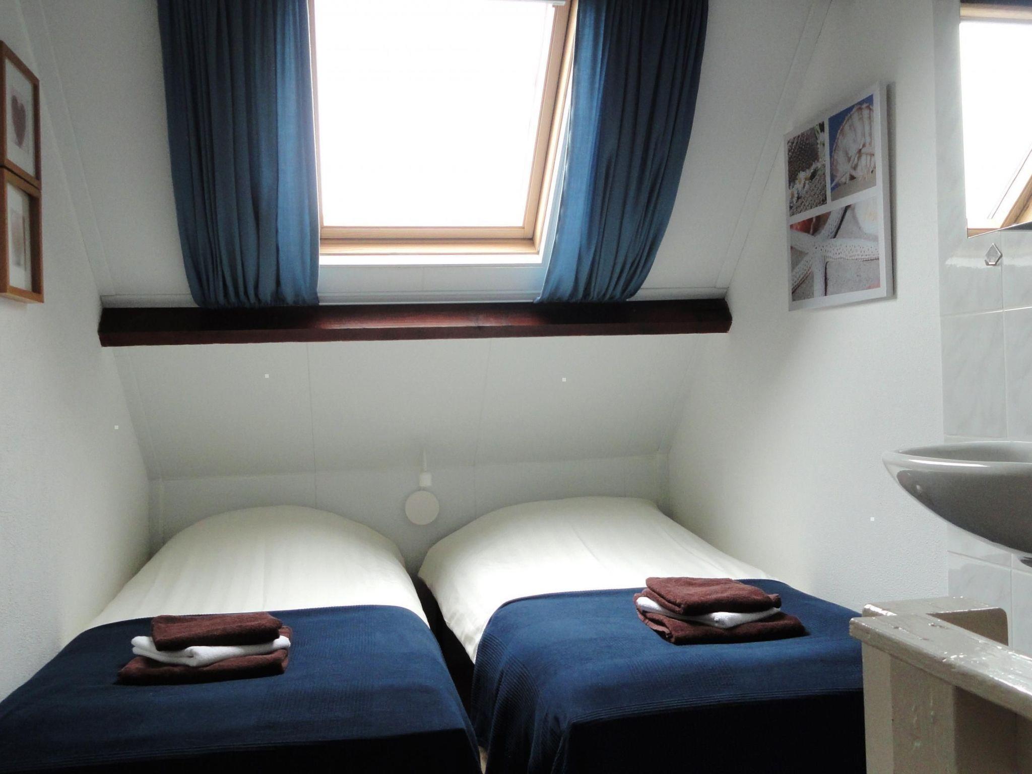Upstairs are 2 bedrooms with 4 Boxspring single beds and a (baby) cot. Both bedrooms are separated by a connecting door.