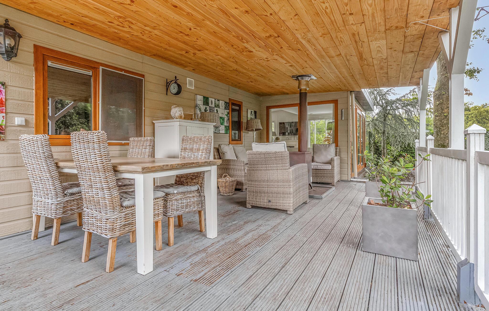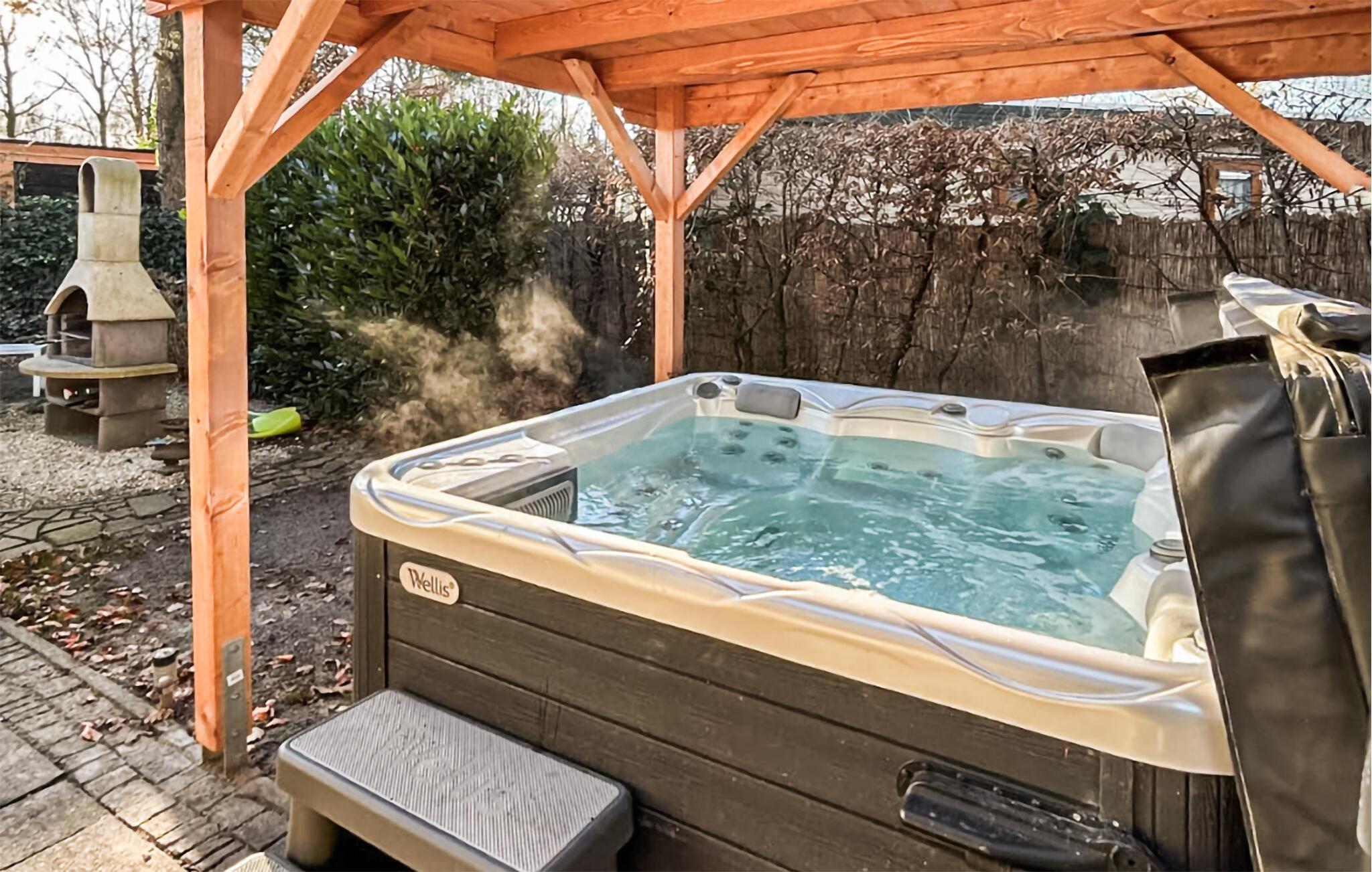 Slå dig ner på den täckta terrassen med mysig sittgrupp och vedeldad kamin. Börja dagen med frukost utomhus eller tillbringa en avkopplande eftermiddag i bubbelpoolen. Trädgården har anlagts med kärlek och erbjuder gott om avskildhet tack vare häckar och träd. Använd grillen eller koppla av på solstolarna.