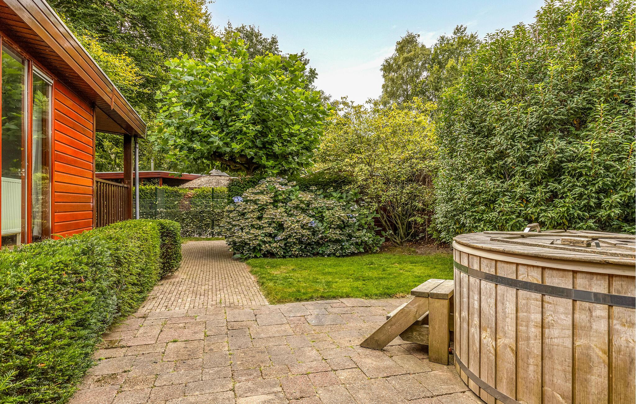 Slå dig ner på den täckta terrassen med mysiga sittgrupper. Börja dagen med en frukost utomhus och koppla av på solstolarna eller hoppa i den bubblande bubbelpoolen. Efteråt erbjuder utomhusduschen uppfriskning. Trädgården är kärleksfullt anlagd och erbjuder gott om avskildhet tack vare häckar, träd och ett högt staket. Du kan också använda grillmöjligheterna här för en mysig grillfest.