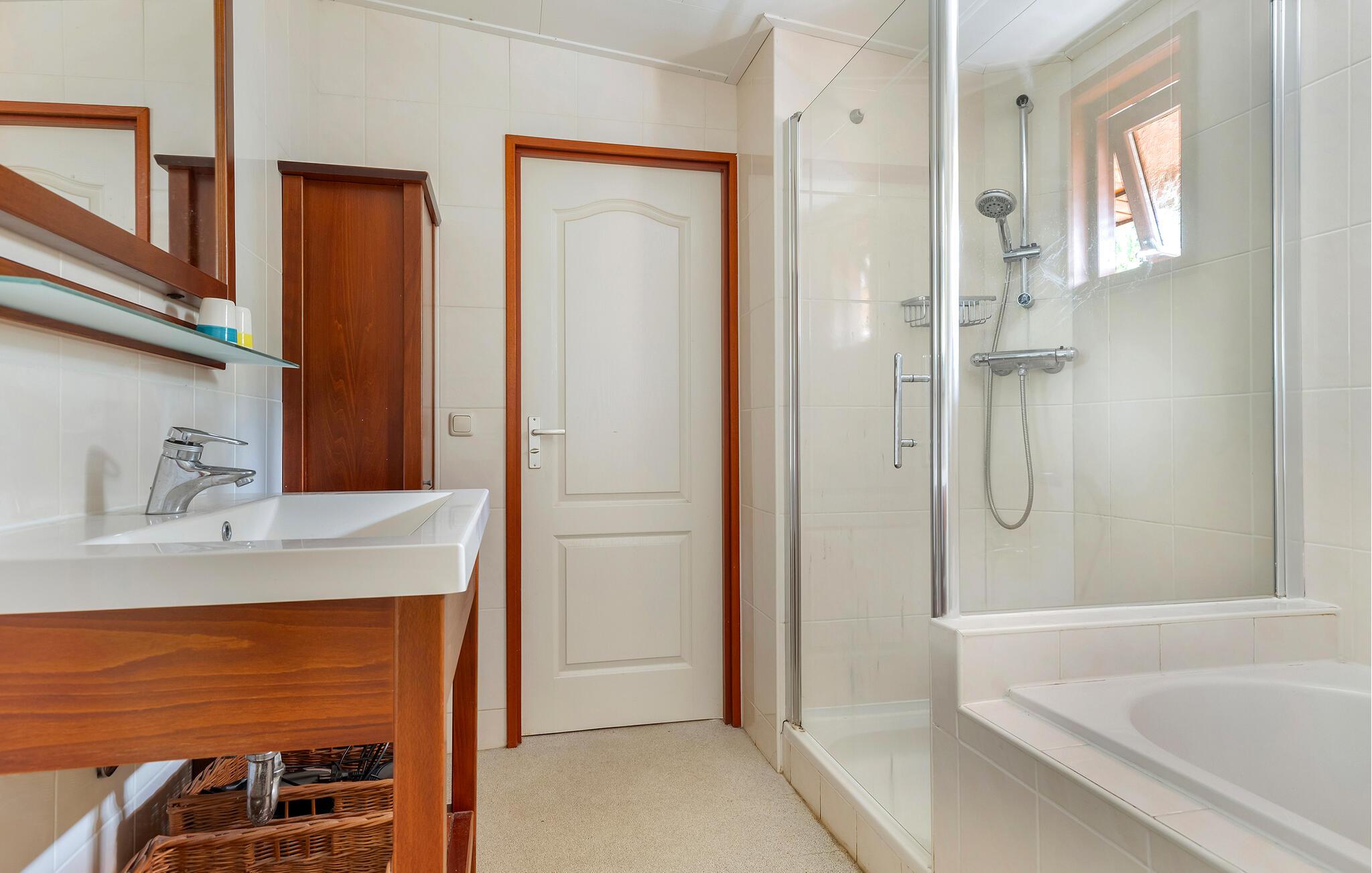 - WC med varmt och kallt vatten, Handdusch och badkar