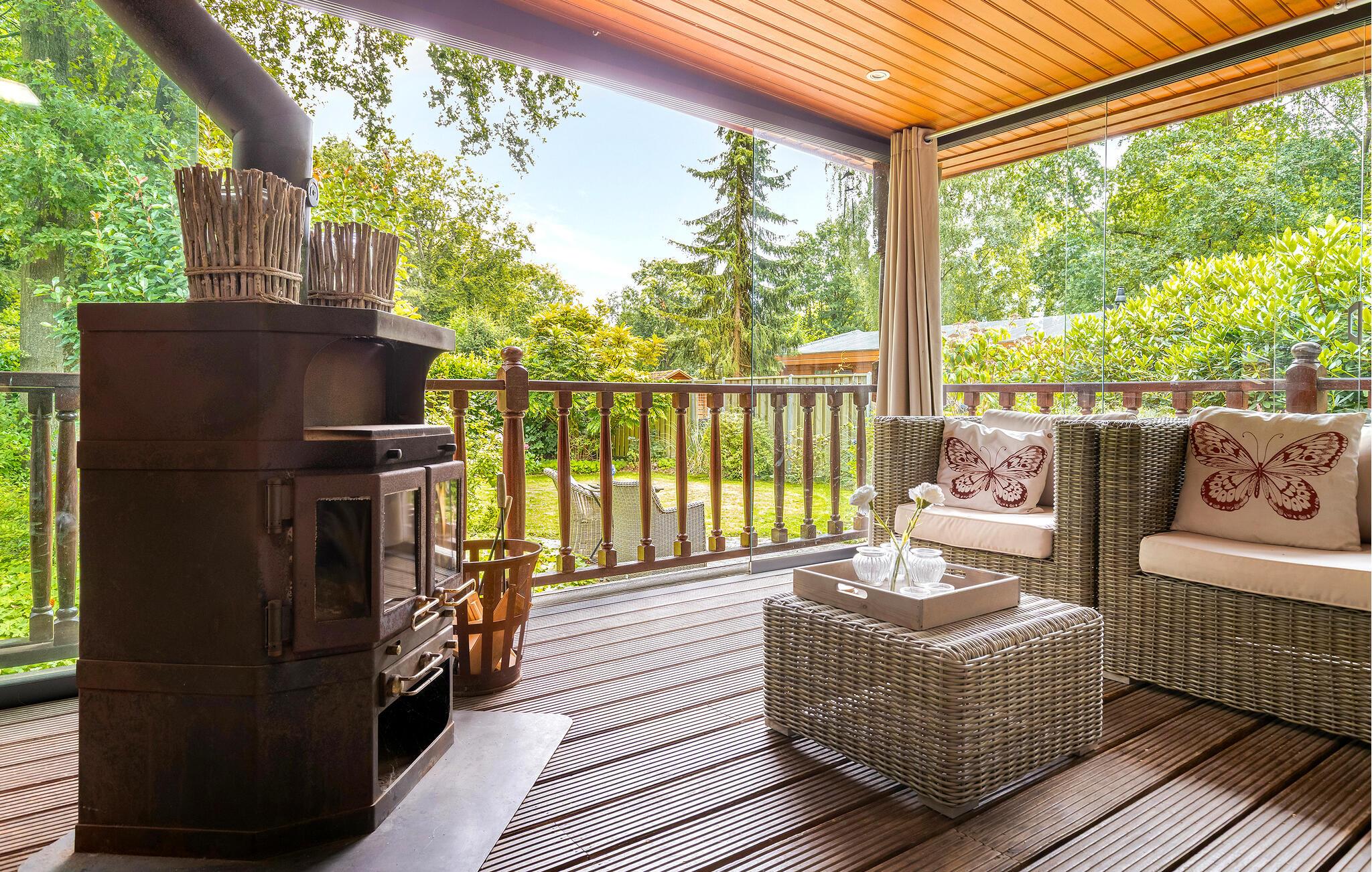 Slå dig ner på den täckta terrassen med mysig sittgrupp och öppen spis. Börja dagen med frukost i det fria och koppla av till fullo. Trädgården har anlagts med kärlek och erbjuder gott om avskildhet tack vare häckar och träd.