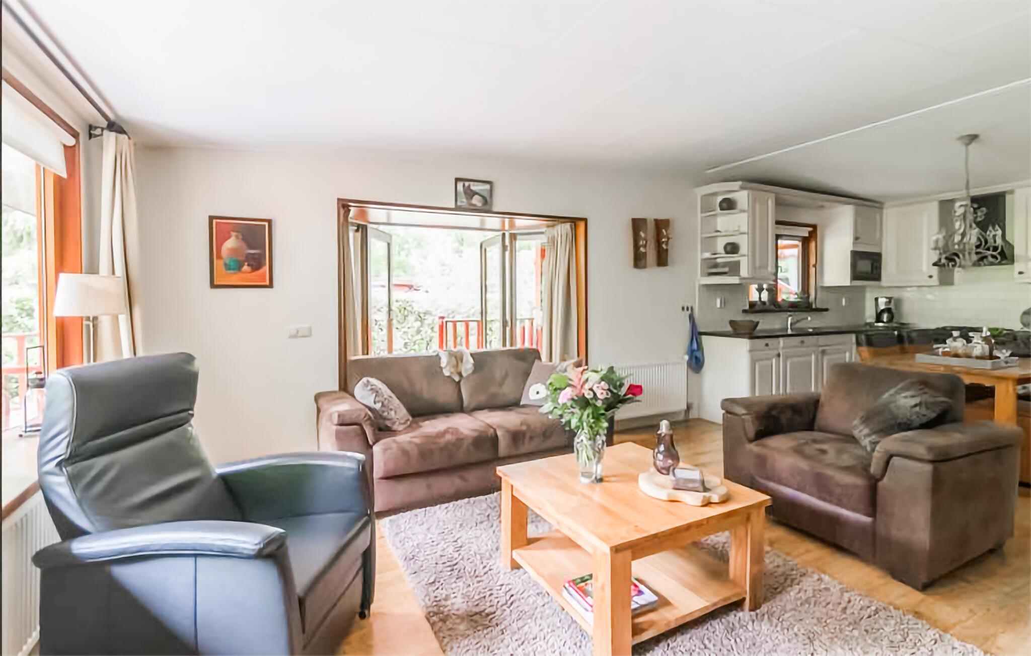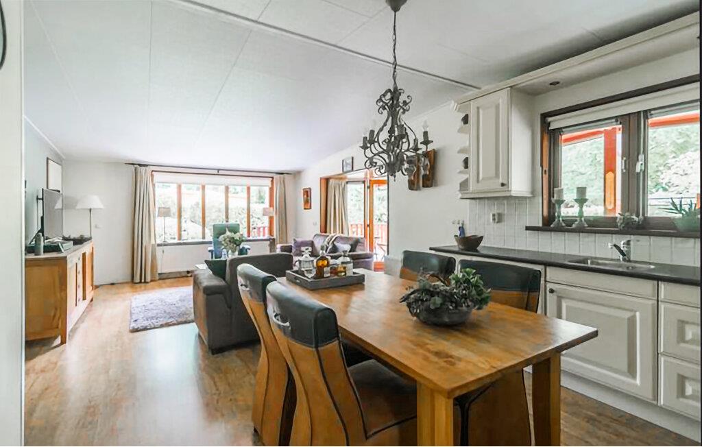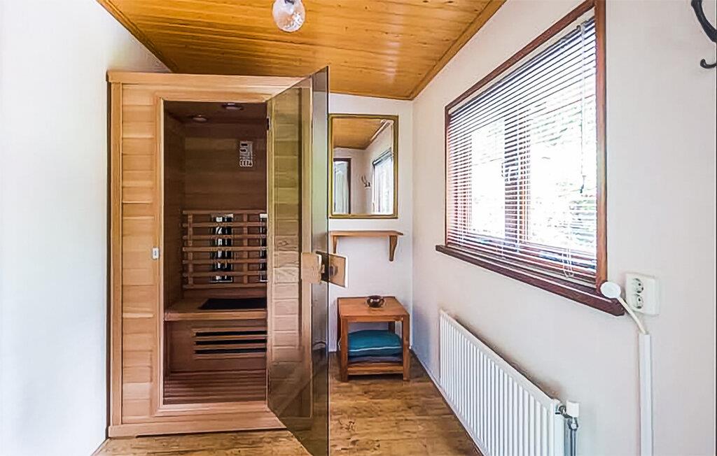 Tillbringa avkopplande dagar i ett charmigt semesterhus omgivet av grönska och med mycket komfort. Stig in i det ljusa, kärleksfullt möblerade vardagsrummet med stora fönster och mysiga sittplatser. De smakfulla möblerna i mjuka färger skapar en vänlig och inbjudande atmosfär. Luta dig tillbaka och låt blicken vandra över grönskan. Ät vid matbordet intill det öppna köket, som inbjuder till matlagning tillsammans. Den infraröda bastun erbjuder ren avkoppling.
