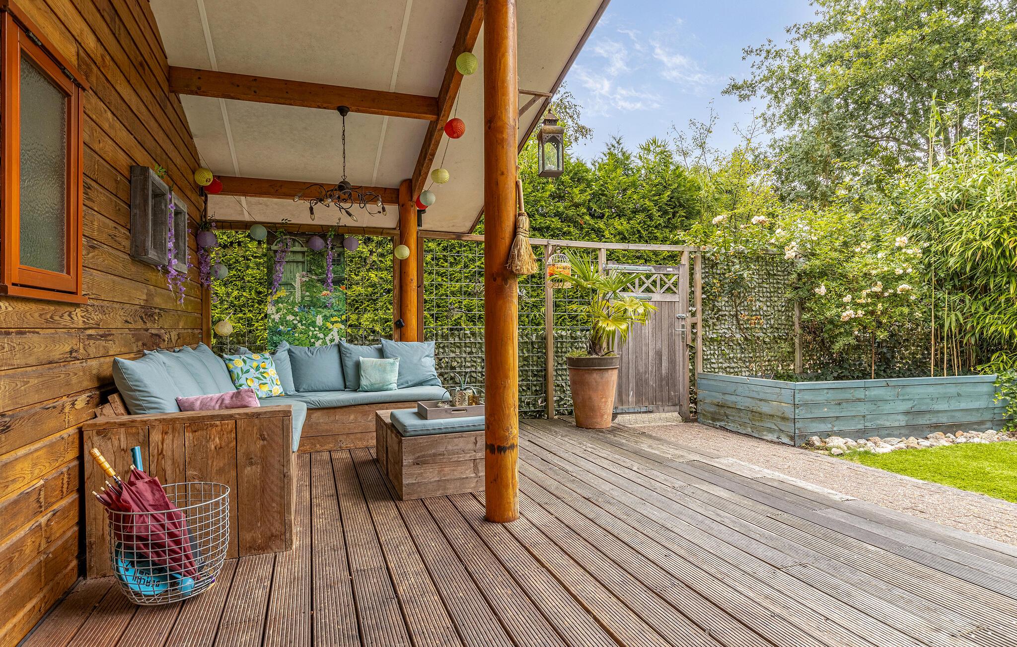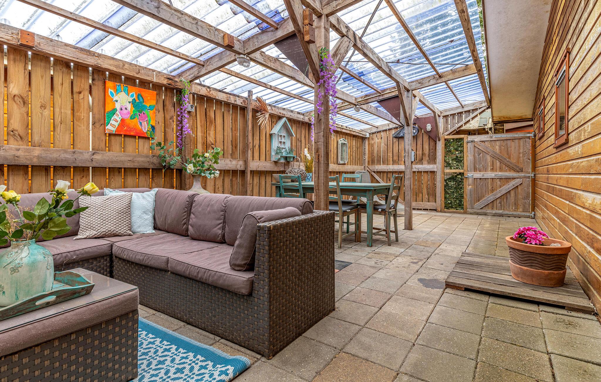 Börja dagen utomhus med en färsk kopp kaffe medan morgonsolen går upp över landskapet utanför. Från terrassen har du en vacker utsikt över grönskan. Tillbringa en avkopplande förmiddag med att prata här eller ta ett uppfriskande dopp i bubbelpoolen. På kvällen inbjuder terrassen dig att avsluta dagen i en avslappnad atmosfär med vänner.