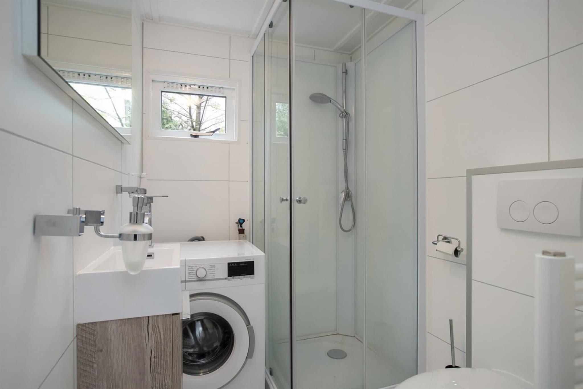 Modern komfort i Garderens gröna hjärta Inbäddat i den fridfulla och småskaliga parken De Wervelwind, erbjuder denna mysiga semesterstuga i Garderen en fridfull naturtillflykt med alla bekvämligheter i ett hem. Beläget mitt i det frodiga Veluwe-skogslandskapet, är det den perfekta platsen för dem som söker lugn avkoppling och utomhusäventyr. Vakna till ljudet av fågelsång och njut av ditt morgonkaffe på den soliga terrassen eller koppla av i hängmattan med en bok i handen. Den inhägnade trädgården har både skuggade och solbelysta sittplatser, perfekta för måltider utomhus eller kvällssamtal under terrassvärmaren. Med TV, Netflix (konto ingår) och ett fullt utrustat kök är kvällarna lika avkopplande som dagarna är aktiva. En smart layout med ett loungeset och gott om förvaring, plus en trädgårdsbod för cyklar, garanterar en stressfri vistelse. En laddstation för elbilar finns vid parkens entré, och det finns även parkering på plats. Närliggande attraktioner Beläget i utkanten av Veluwe, Nederländernas största skogsrika område, erbjuder omgivningarna otaliga vandrings- och cykelleder genom hedar, ängar och gamla skogar. Besök det närliggande Speulderbos, känd som "dansskogen", eller cykla till Kootwijkerzand, landets största sanddriva. För familjeutflykter ligger Apenheul Primate Park och Paleis Het Loo i Apeldoorn inom en kort bilresa. Mat & lokala läckerheter Garderen själv erbjuder charmiga matställen som "De Bonte Koe" och "Camposing", perfekt för en mysig middag eller lunch. För en unik matupplevelse, prova "Het Roode Koper" i Leuvenum – en Michelin-stjärna inbäddad i skogen, bara 15 minuter bort.