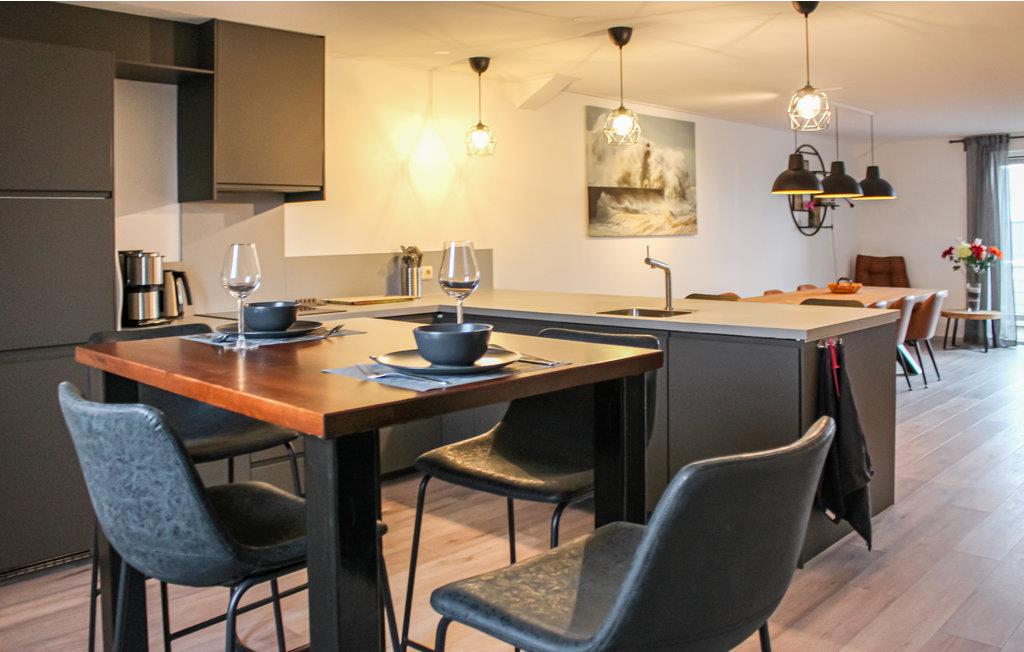 Detta semesterhus övertygar med en särskilt vacker inredning i modern stil med mycket trä och utvald dekoration. I det öppna köket kan du förbereda de läckra måltiderna medan de andra semestergästerna håller dig sällskap med en sval dryck vid köksön. Efteråt kan ni äta vid det stora matbordet och tillbringa trevliga timmar med att spela brädspel. I vardagsrummet kan du koppla av framför tv:n och avsluta dagen. Du bor i 3 sovrum och det finns 1 badrum till ditt förfogande. Från balkongen med trädgårdsmöbler har du en fantastisk utsikt över vattnet och omgivningarna.