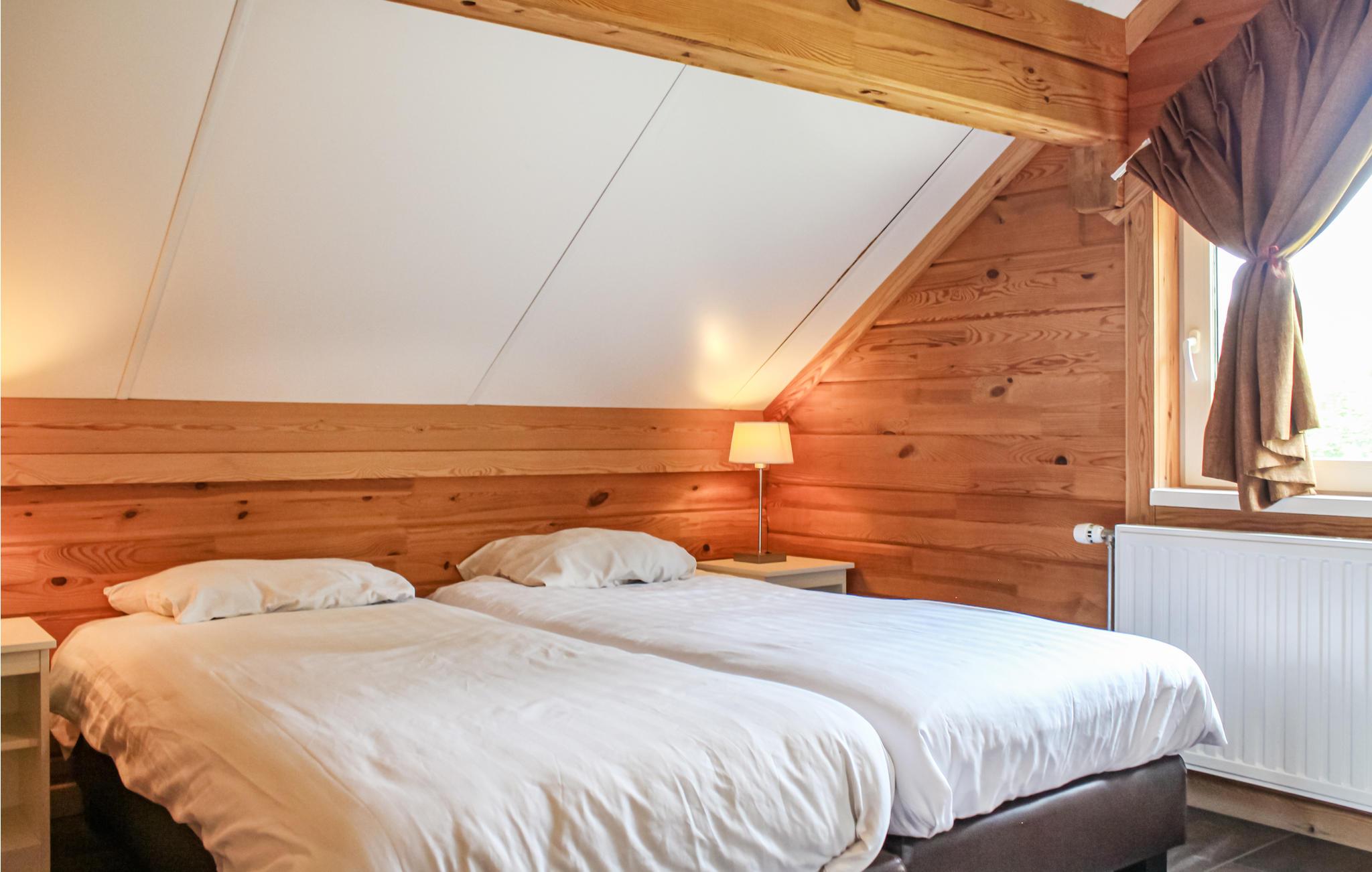 Denna rymliga villa för 6 personer i Heel ligger i en lugn, naturligt belägen park i centrala Limburg nära Roermond. Villan är byggd helt i trä och har en härlig terrass med utsikt över vattnet och sandstranden. På bottenvåningen finns vardagsrummet med rymligt kök i öppen planlösning med högt i tak och mycket ljus. Köket är fullt utrustat. Du hittar också 2 sovrum med 2 enkla boxspringbäddar på bottenvåningen och ett lyxigt badrum med badkar och handdusch och en separat dusch. Det finns en separat toalett och ett förråd i korridoren. På övervåningen finns det andra sovrummet med 2 boxspring-sängar för 1 person, en andra toalett och ytterligare förvaringsutrymme.