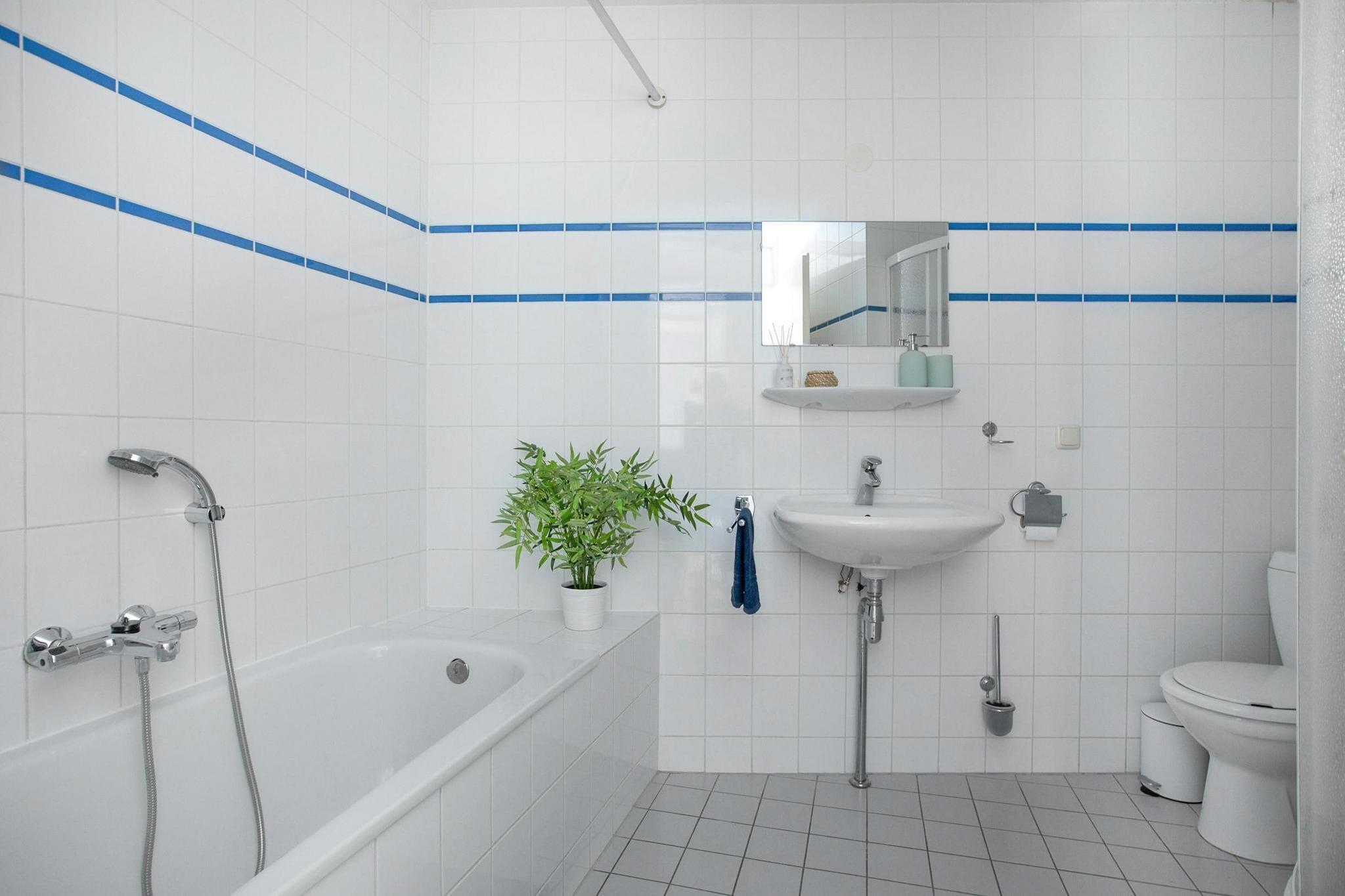 På våning 1: (Vardagsrum(TV(platt-tv), sitthörna), öppet kök(matbord, Kokplattor(Spis med 4 kokplattor, gas), vattenkokare, brödrost, Fläkt, kaffebryggare(kaffetratt, kaffekapslar), kombi ugn/mikro, diskmaskin, kyl och frys, , ), sovrum(dubbelsäng), sovrum(enkelsäng, enkelsäng), badrum(dusch, handfat, toalett )) Tillgång till Internet, torktumlare, tvättmaskin, balkong, värme(central), terrass, trädgårdsmöbler, parkering